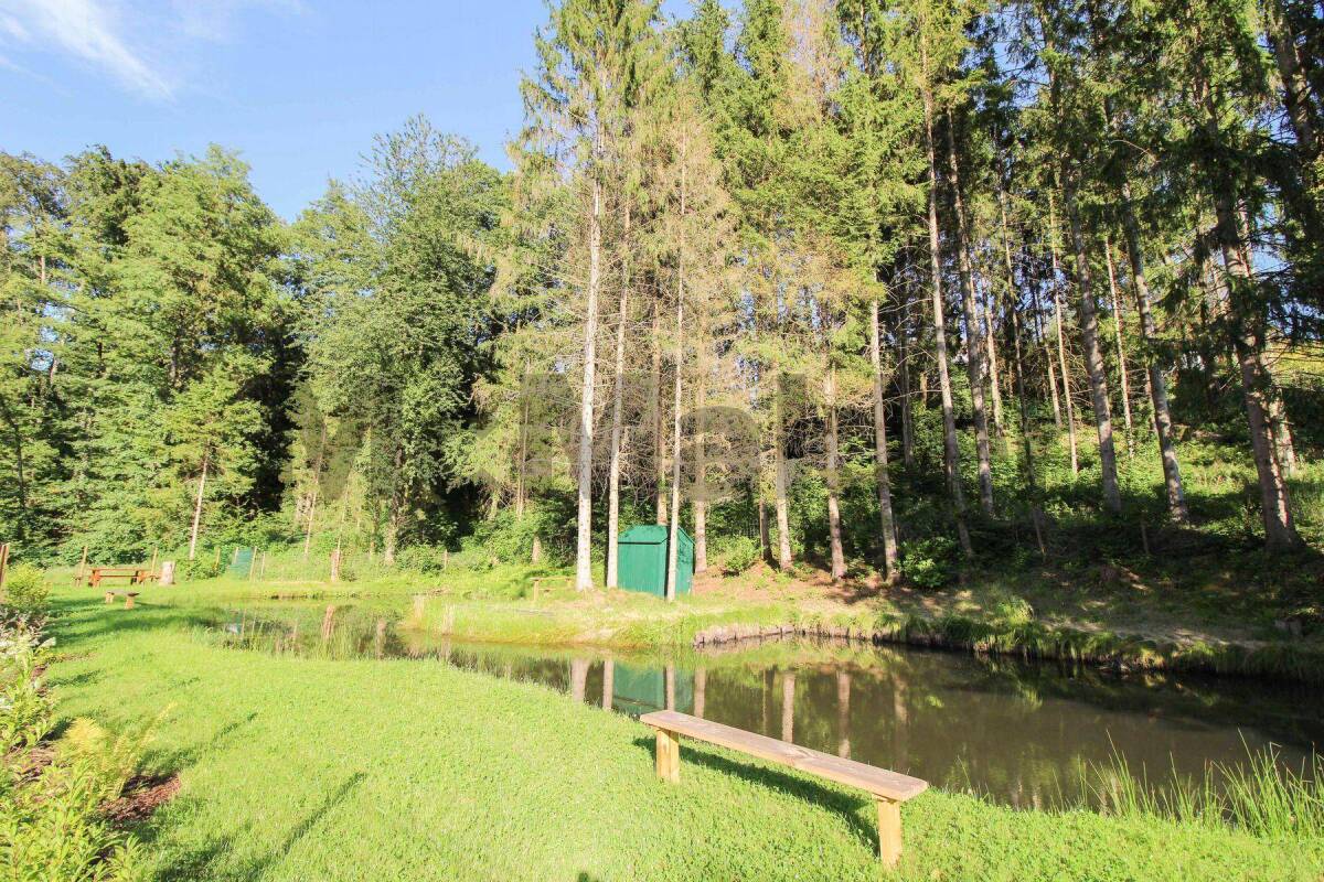 Weitläufiges Idyll bei Graz: Freiland mit Wald- und Wiesenflächen sowie großem Teich