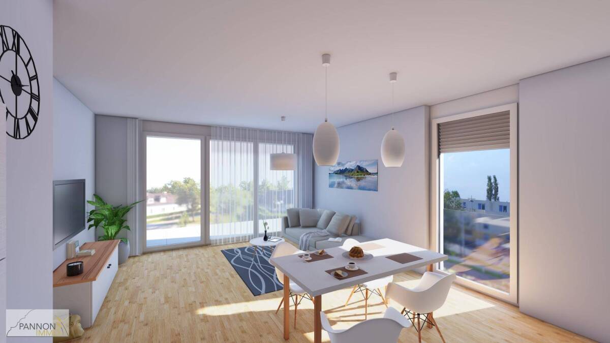 Top ausgestattete Neubau Wohnung in Seenähe umgeben von schöner Natur!!! BAUBEGINN MÄRZ 2020 - BEZUGSFERTIG MAI 2021!!4 Wohnungen bereits verkauft!!In sehr guter Lage, unweit des Strandbades Neusiedl am See, entsteht eine Wohnhausanlage in Niedrigenergiebauweise mit insgesamt 7 Wohneinheiten. Angeboten werden 5 Zwei-Zimmer bzw. 2 Drei-Zimmer-Wohnungen auf 2 Etagen, mit Nutzflächen zwischen ca. 52 und 79 m². Das übersichtliche Foyer des Hauses ist vom Gehsteig aus ebenerdig erreichbar und über ein Stiegenhaus gelangen Sie in die einzige Etage.Die Grundrisse sämtlicher Wohnungen sind klar gegliedert, auf gute Funktionalität und Wirtschaftlichkeit wurde viel Wert gelegt. Die Trennwände innerhalb der Wohnungen sind nicht tragend und können, mit Ausnahme der Schächte und der statisch relevanten Bauteile, bei Bedarf nachträglich verändert werden.Die Wohneinheit TOP 7 ist folgendermaßen aufgeteilt:großer Wohn/Essbereich mit offener Küche, 1 Schlafzimmer, Bad, WC, Vorraum, Balkon mit FernblickWichtige Details:Fahrrad- und KinderwagenraumAutoabstellplätzeEinlagerungsraumFenster & Fenstertüren: Kunststofffenster mit 3 Scheiben Isolierverglasung, außen Aludeckschale, Insektenschutzgitter, Zuluftelemente hygrostatgesteuert in SZ und WZ, Hebeschiebetür im WZ, elektrisch betriebene RolllädenBeheizung: Warmwasserbereitung und Beheizung mittels einer zentralen Luft/Wasser Wärmepumpe, die Wärmeverteilung erfolgt über FußbodenheizungKühlung: die Wohungen werden mit einer Deckenkühlung ausgestattetDie besondere Lage am Rande des Schilfgürtels und die Nähe zu Kindergarten und Volksschule sowie zum Stadtzentrum machen die Wohnhausanlage insbesondere für junge Familien mit einem Kind interessant.Die 2 Zimmer Wohnungen sind für Singles oder Paare geeignet, welche die Nähe zur Natur bevorzugen, um sich von den Anstrengungen des Alltages zu erholen.Der Bahnhof in Neusiedl am See mit Anbindung nach Wien Hauptbahnhof ist in 10 Gehminuten erreichbar. Weiteres benötigen Sie nur 5 Fahrminuten zum Outlet Center Parndorf sowie zur Autobahnanbindung A4. Weitere wichtige Entfernungen wären Bratislava (25 Minuten) sowie der Flughafen Schwechat (20 Minuten) oder Wien (30 Minuten).Die familiäre Atmosphäre in Neusiedl am See, die Sport- und Freizeitmöglichkeiten am Neusiedler See, sowie die einzigartige Natur mit pannonischem Klima garantieren eine hohe Lebensqualität.Zur Lage:10 Gehminuten zu Kindergarten und Volksschule10 Gehminuten ins Ortszentrum mit gesamter städtischer Infrastruktur2 min mit dem Fahrrad zum Seebad Neusiedl am SeeKinderfreundlich und NaturnahKulinarische Genüsse (Heurigenkultur, Restaurantvielfalt)Wunderbare Natur (Seebad, Schilfgürtel)Rad- und Wanderwege vor der HaustürEnergieausweis: B; HWB: 46 kWh/m2aGrundrisse, Lagepläne sowie eine ausführliche Bau- und Ausstattungsbeschreibung werden auf Anfrage zugesandt.Weitere Fotos finden Sie auf unserer Website www.pannon.atInfrastruktur / EntfernungenGesundheit Arzt <500m Apotheke <1.500m Kinder & Schulen Schule <500m Kindergarten <1.500m Nahversorgung Supermarkt <500m Bäckerei <1.500m Einkaufszentrum <4.000m Sonstige Bank <1.000m Geldautomat <1.000m Post <1.000m Polizei <4.500m Verkehr Bus <500m Autobahnanschluss <4.500m Bahnhof <1.000m Angaben Entfernung Luftlinie / Quelle: OpenStreetMap