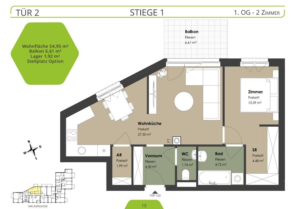 Bauträger Projekt ALETHEIA in bester LAGE ** PROVISIONSFREI für den Käufer ** Die Rohbauarbeiten sind bereits fertiggestellt und die schlüsselfertige Übergabe ist mit JUNI 2021 geplant. Stiege 1 Top 2 - 1.Obergeschoss: Verkauft wird eine einzigartige und moderne 2-Zimmer Wohnung in schlüsselfertiger Ausführung. Die Wohnung mit einer Wohnnutzfläche von ca. 54,95 m² zzgl. einem Balkon von ca. 6,61 m² verfügt über einen Vorraum, eine Wohnküche, 1 Schlafzimmer mit einem Schrankraum, ein Badezimmer mit einer Badewanne, einem Abstellraum sowie einer getrennten Toilette. Das zugehörige Lagerabteil der Wohnung befindet sich ebenfalls im selben Stockwerk - nur wenige Schritte von der Wohnung entfernt. KAUFPREIS: Der Eigennutzer-Kaufpreis beläuft sich auf EUR 211.810.- Der Anleger-Kaufpreis beläuft sich auf EUR 190.700.- zzgl. 20% Ust. Bei Anfrage erhalten Sie eine detaillierte Projektmappe mit allen Details sowie die Bau- und Ausstattungsbeschreibung. In bester Lage von Traiskirchen, entstehen 17 freifinanzierte hochwertige Eigentumswohnungen in der Größe zwischen 50 m² und 125 m². Perfekt durchdachte Grundrisse und Vorzüge wie Balkone, Loggien und Terrassen machen Ihr Heim zu einer Wohlfühloase. Durch die zentrumsnahe Lage eignen sich die Wohnungen nicht nur als privates Wohnungseigentum, sondern machen sich ebenfalls als Vorsorgeobjekte hervorragend. INFORMATIONEN: * MASSIVBAUWEISE * alle Wohnungen werden schlüsselfertig übergeben * freie Wahl von vorhandenen Fliesen & Parkettböden * Kunststoff-Alufenster in Dreh/Kipp- Ausführung - 3 Scheiben-Wärmeschutzverglasung * Fußbodenheizung in allen Wohnungen, zentrale Gaskesselanlage im Heizhaus * insgesamt sind 34 PKW-Stellplätze vorhanden * grundbücherliche-treuhändische Abwicklung über renommierten Rechtsanwalt aus Mödling HIGHLIGHTS: * jede Wohnung verfügt zusätzlich über ein Lagerabteil im jeweiligen Geschoss * eine Paketschließfachanlage steht ebenfalls im Haus zur Verfügung * individuelle Wohnraumgestaltung nach technischen und statischen Möglichkeiten noch gegeben LAGE des Projektes ALETHEIA: A-2514 Traiskirchen, Melkergasse 3 liegt etwa 20 km südlich von Wien und ist mit der Abfahrt Traiskirchen an der Südautobahn A2 gelegen. Verkehrstechnisch ist Traiskirchen bestens angebunden. In nur wenigen Minuten ist man zu Fuß bei der Badner-Bahn die im 15- Minuten- Takt verkehrt. Von dort aus sind es nur 20 Minuten nach Wien. Es gibt außerdem mehrere Busse, die Traiskirchen mit den umliegenden Katastralgemeinden verbinden. Die Stadtgemeinde Traiskirchen gehört zum Bezirk Baden und ist bekannt für zahlreiche Weingärten und Heurigenlokale. Einer der größten Vorzüge ist die Wohnqualität und der hohe Grünanteil. Kindergärten, Schulen, Ärzte, Restaurants und diverse Einkaufsmöglichkeiten wie z.B.: HOFER, BILLA, BIPA, uvm.... sind fußläufig vom Wohnprojekt erreichbar. Das nächste große Einkaufzentrum, die SCS, ist nur 11 Minuten mit dem Auto entfernt. Nebenkosten Grunderwerbssteuer: 3,5% vom Kaufpreis Grundbucheintragungsgebühren: 1,1% vom Kaufpreis Kosten der Vertragserrichtung: 1,75% vom Kaufpreis + Ust. + Barauslage PROVISIONSFREI Kontaktdaten: office@ps-immo.co.at www.ps-immo.co.at +43 699 17 27 88 89 Die Angaben erfolgen aufgrund von Informationen und Unterlagen, die uns vom Bauträger zur Verfügung gestellt wurden und sind ohne Gewähr. Irrtum vorbehalten. FAGG-Hinweis: Wir bitten Sie um Verständnis, dass wir aufgrund der Nachweispflicht gegenüber dem Eigentümer nur Anfragen mit vollständiger Angabe der Anschrift bearbeiten können. Der Interessent wird auf die erweiterten Richtlinien des Konsumentenschutzes im Sinne des FAGG hingewiesen. Der Makler hat auf Grund der Projektgröße ein wirtschaftliches Naheverhältnis zum Auftraggeber. Es gelten die AGBs der Immobilienwirtschaft. Weiters möchte ich Sie auf meine Doppelmaklertätigkeit aufmerksam machen. Rechtlicher Hinweis: Gemäß § 5 Maklergesetz weisen wir darauf hin, dass wir als Doppelmakler tätig sind, d.h. wir bedienen sowohl die Abgeber- als auch Käuferseite. Wir weisen darauf hin, dass zur Seite des Abgebers ein wirtschaftliches Naheverhältnis besteht!