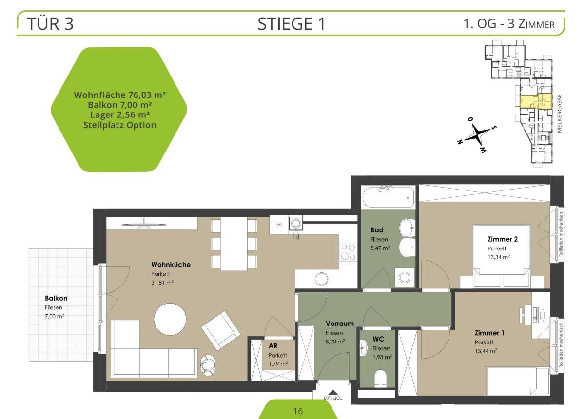 Bauträger Projekt ALETHEIA in bester LAGE ** PROVISIONSFREI für den Käufer ** Die Rohbauarbeiten sind bereits fertiggestellt und die schlüsselfertige Übergabe ist mit JUNI 2021 geplant. Stiege 1 Top 3 - 1.Obergeschoss: Verkauft wird eine einzigartige und moderne 3-Zimmer Wohnung in schlüsselfertiger Ausführung. Die Wohnung mit einer Wohnnutzfläche von ca. 76,03 m² zzgl. einem Balkon von ca. 7,00 m² verfügt über einen Vorraum, eine Wohnküche, 2 Schlafzimmer, ein Badezimmer mit einer Badewanne, einem Abstellraum sowie einer getrennten Toilette. Das zugehörige Lagerabteil der Wohnung befindet sich ebenfalls im selben Stockwerk - nur wenige Schritte von der Wohnung entfernt. KAUFPREIS: Der Eigennutzer-Kaufpreis beläuft sich auf EUR 281.880.- Der Anleger-Kaufpreis beläuft sich auf EUR 253.700.- zzgl. 20% Ust. Bei Anfrage erhalten Sie eine detaillierte Projektmappe mit allen Details sowie die Bau- und Ausstattungsbeschreibung. In bester Lage von Traiskirchen, entstehen 17 freifinanzierte hochwertige Eigentumswohnungen in der Größe zwischen 50 m² und 125 m². Perfekt durchdachte Grundrisse und Vorzüge wie Balkone, Loggien und Terrassen machen Ihr Heim zu einer Wohlfühloase. Durch die zentrumsnahe Lage eignen sich die Wohnungen nicht nur als privates Wohnungseigentum, sondern machen sich ebenfalls als Vorsorgeobjekte hervorragend. INFORMATIONEN: * MASSIVBAUWEISE * alle Wohnungen werden schlüsselfertig übergeben * freie Wahl von vorhandenen Fliesen & Parkettböden * Kunststoff-Alufenster in Dreh/Kipp- Ausführung - 3 Scheiben-Wärmeschutzverglasung * Fußbodenheizung in allen Wohnungen, zentrale Gaskesselanlage im Heizhaus * insgesamt sind 34 PKW-Stellplätze vorhanden * grundbücherliche-treuhändische Abwicklung über renommierten Rechtsanwalt aus Mödling HIGHLIGHTS: * jede Wohnung verfügt zusätzlich über ein Lagerabteil im jeweiligen Geschoss * eine Paketschließfachanlage steht ebenfalls im Haus zur Verfügung * individuelle Wohnraumgestaltung nach technischen und statischen Möglichkeiten noch gegeben LAGE des Projektes ALETHEIA: A-2514 Traiskirchen, Melkergasse 3 liegt etwa 20 km südlich von Wien und ist mit der Abfahrt Traiskirchen an der Südautobahn A2 gelegen. Verkehrstechnisch ist Traiskirchen bestens angebunden. In nur wenigen Minuten ist man zu Fuß bei der Badner-Bahn die im 15- Minuten- Takt verkehrt. Von dort aus sind es nur 20 Minuten nach Wien. Es gibt außerdem mehrere Busse, die Traiskirchen mit den umliegenden Katastralgemeinden verbinden. Die Stadtgemeinde Traiskirchen gehört zum Bezirk Baden und ist bekannt für zahlreiche Weingärten und Heurigenlokale. Einer der größten Vorzüge ist die Wohnqualität und der hohe Grünanteil. Kindergärten, Schulen, Ärzte, Restaurants und diverse Einkaufsmöglichkeiten wie z.B.: HOFER, BILLA, BIPA, uvm.... sind fußläufig vom Wohnprojekt erreichbar. Das nächste große Einkaufzentrum, die SCS, ist nur 11 Minuten mit dem Auto entfernt. Nebenkosten Grunderwerbssteuer: 3,5% vom Kaufpreis Grundbucheintragungsgebühren: 1,1% vom Kaufpreis Kosten der Vertragserrichtung: 1,75% vom Kaufpreis + Ust. + Barauslage PROVISIONSFREI Kontaktdaten: office@ps-immo.co.at www.ps-immo.co.at +43 699 17 27 88 89 Die Angaben erfolgen aufgrund von Informationen und Unterlagen, die uns vom Bauträger zur Verfügung gestellt wurden und sind ohne Gewähr. Irrtum vorbehalten. FAGG-Hinweis: Wir bitten Sie um Verständnis, dass wir aufgrund der Nachweispflicht gegenüber dem Eigentümer nur Anfragen mit vollständiger Angabe der Anschrift bearbeiten können. Der Interessent wird auf die erweiterten Richtlinien des Konsumentenschutzes im Sinne des FAGG hingewiesen. Der Makler hat auf Grund der Projektgröße ein wirtschaftliches Naheverhältnis zum Auftraggeber. Es gelten die AGBs der Immobilienwirtschaft. Weiters möchte ich Sie auf meine Doppelmaklertätigkeit aufmerksam machen. Rechtlicher Hinweis: Gemäß § 5 Maklergesetz weisen wir darauf hin, dass wir als Doppelmakler tätig sind, d.h. wir bedienen sowohl die Abgeber- als auch Käuferseite. Wir weisen darauf hin, dass zur Seite des Abgebers ein wirtschaftliches Naheverhältnis besteht!