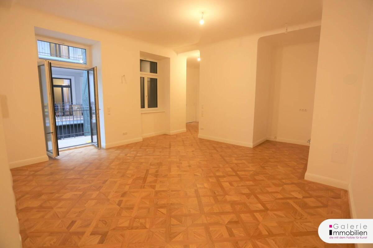 Erstbezug nach Sanierung - Innenhoflage - absolut ruhig - barrierefrei Hohe Bau- und Ausstattungsqualität!Dieses Gustostückerl mit U-förmigem Innenhof wird in behutsamer Weise revitalisiert und die historisch interessante und erhaltenswerte Bausubstanz zu einem modern und zeitgemäß ausgestatteten Wohnidyll erweitert. Die wunderschöne Fassade aus der 2. Hälfte des 19. Jahrhunderts mit ihren historischen Dekorelementen, Segmentgiebelverdachungen mit eingestellten Frauenbüsten sowie reich dekorierten Konsolen wird ebenso erhalten wie Balkone und Terrassen im ehemaligen Pawlatschen-Innenhof wiederbelebt werden. Die hofseitige Fassade wird mit Mixfix Dämmplatten gedämmt. Diese sind hochwärmedämmend, duffusionsoffen und frei von FCKW. Die Einfahrt verfügt über ein Platzgewölbe, das neu gestaltet wird und mit 2 neuen Hauseingangstüren aus Metall und Glas versehen wird. Die Hofpflasterung wird als befahrbare Begrünung gestaltet. Im hinteren Teil des Innenhofes werden 2 Doppelparker-Plätze für 4 Autos mit fernsteuerbarem Garagentor und E-Ladestation errichtet.Das Stiegenhaus wird weiß ausgemalt, der Boden mit großen Zementfliesen neu belegt. Die historischen Geländer und Handläufe werden saniert und somit erhalten. Im Haus wird eine Zentralschließanlage mit je 3 Schlüsseln zu jeder Wohnung installiert. Es werden neue Steigleitungen wie auch eine neue Blitzschutzanlage hergestellt.Die Lage des Hauses im Vierten, das von Anton Hoppe erbaut wurde und komplett unterkellert ist, kann als außergewöhnlich bezeichnet werden. In unmittelbarer Nähe zu Nasch- und Flohmarkt, zur U4 Station Kettenbrückengasse und den Buslinien 13A und 59A liegt es doch eingebettet in die ruhige und fast durchgehend biedermeierlich und nur 3-4-geschoßig verbaute Kettenbrückengasse. Die Nahversorgung bis hin zu entzückenden kleinen Designer- und Antiquitätenläden ist perfekt. Im aufstrebenden Viertel zwischen Margaretenstraße und Wienzeile erreicht man alles, was man braucht, zu Fuß und in kürzester Zeit.Insgesamt werden 10 Wohnungen im Altbau zwischen 48m² und 106m² Wohnfläche komplett saniert und inklusive Nassräumen modernst ausgestattet vergeben. Im Dachgeschoß entstehen 3 Maisonetten zwischen 111m² und 173m². Im Kellergeschoß werden Räume zur Einlagerung für alle Wohnungen sowie ein Fahrradraum geschaffen. Der Personenlift mit maschinenraumlosem Seilaufzug und Teleskopschiebetür fährt vom Kellergeschoß bis ins Dachgeschoß. BK netto: ca. EUR 2,-/m²Die TOP 10 im 1. Stock ist komplett innenhofseitig und daher absolut ruhig gelegen. Sie bietet einen geräumigen Vorraum, einen praktischen Abstellraum, Badezimmer, separates WC mit Waschbecken und 3 zentral begehbare Schlafzimmer, wobei eines davon Ausgang auf den knapp 8m² großen SO-seitigen Balkon hat. Der Balkon wird mit Holzdielen belegt, und es werden Wandeinbau-Lichtkörper mit LED Leuchten wie auch frostsichere Armaturen montiert. Die Geländer bestehen aus sandgestrahltem und lackiertem Vierkantstahl. Die ca. 30m² große Wohnküche mit Terrassentür und großzügigen Glasflächen bildet das Herzstück dieser wunderbaren 4-Zimmer-Wohnung. Das Badezimmer wird ausgestattet mit Badewanne, Dusche mit Hartglas-Türen und verchromten Rahmenprofilen, Doppelwaschbecken, Waschmaschinenanschluss und elektrischem Handtuchtrockner. Der Boden wird mit Feinsteinzeug belegt.In allen Wohnräumen wird ein außergewöhnlicher Eiche-Parkettboden geölt verlegt. Die Niedrigtemperatur-Fußbodenheizung wird gespeist von einem Vaillant Brennwertgerät, das sich im Bad befindet. Es werden neue Holz-Alu-Fenster mit Dreifachverglasung eingebaut. Die Innentüren sind hochglänzend lackierte MDF-Türen mit Edelstahl Beschlag oder vernickeltem Beschlag. Die angenehme Raumhöhe von 3m trägt zum unglaublich schönen Ambiente dieser Wohnung bei. Eine Gegensprechanlage ist selbstverständlich vorhanden. Die Designer- Eingangstür hat außen Griff in Edelstahl. In den Wohn- und Schlafräumen werden Verkabelung für UPC und Satellitenantenne errichtet. Zwischen den Wohn- und Schlafräumen wird eine Leerverrohrung zur möglichen internen Verkabelung der Wohnung mit Computern geschaffen. Alle Wohnungen werden mit einem Schlüsselhauptschalter versehen, mit dem man in der gesamten Wohnung den Strom abschalten kann. Ein trockenes Kellerabteil steht dem künftigen Eigentümer zur Verfügung.Gerne schicke ich Ihnen bei Interesse eine ausführliche Bau- und Ausstattungsbeschreibung und Pläne der verfügbaren Wohnungen. Für Fragen und Besichtigungswünsche steht Ihnen gerne Frau Mag. Christa Preisl zur Verfügung: 0664/88512525Wir weisen darauf hin, dass die Firma Galerie Immobilien GmbH in einem wirtschaftlichen Naheverhältnis zum Abgeber steht. Unsere gesetzlichen Pflichten als Doppelmakler werden dadurch jedoch nicht beeinträchtigt. Die Errichtung des Kaufvertrages samt Treuhandschaft und die grundbücherliche Durchführung sind an RA Mag. Michael Gruner, 1070 Wien, Kirchengasse 19 gebunden.Bei Abschluss eines Kaufvertrages über die hier angebotene Immobilie zwischen Ihnen und dem Verkäufer ist von Ihnen als Käufer die gesetzliche Vermittlungsprovision gemäß Maklerverordnung zzgl. 20% Umsatzsteuer an uns zu entrichten. Alle Angaben wurden uns vom Verkäufer mitgeteilt, wir übernehmen für diese keinerlei Gewähr oder Haftung. Der Verkäufer wurde über die Pflichten gemäß Energieausweis-Vorlage-Gesetz 2012 aufgeklärt. Wir übernehmen keinerlei Gewähr oder Haftung für die tatsächliche Energieeffizienz des Gebäudes bzw. der Wohnung. Es gelten unsere Allgemeinen Geschäftsbedingungen. Gerichtsstand und Erfüllungsort ist Wien. Wir verweisen auf die Nebenkostenübersicht – welche die Belehrung über das Widerrufsrecht beinhalten – auf unserer Homepage. Datenschutzhinweis: Galerie Immobilien GmbH verarbeitet personenbezogene Daten nach den datenschutzrechtlichen Bestimmungen. Weitergehende Informationen finden Sie auf unserer Homepage unter 