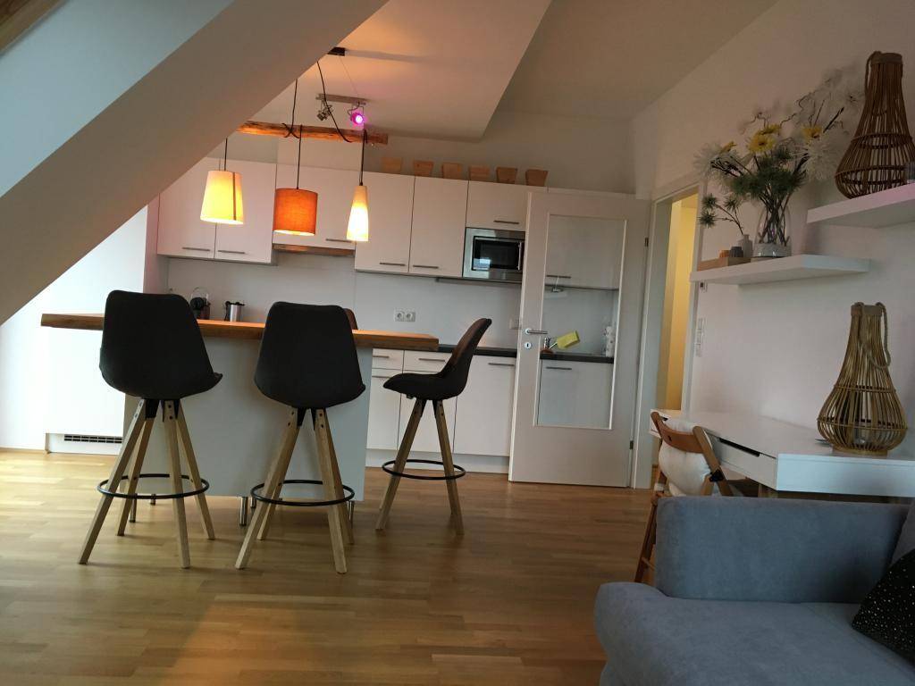 Wohnung für zwei - Dachgeschoss in schöner Anlage. Top 21 Wohnfläche: 61m² + 8m² Terrasse Raumaufteilung: Grosse Wohnküche, Schlafzimmer, Bad/WC, Abstellraum, Vorraum. Ausstattung: Komplettküche, Parkett, Thermoverbundfenster, elektr. Aussenjalousie, Bad mit Wanne, WaMa-Anschluss, Zentralheizung (separate Abrechnung) Unmöbliert, aber auch (teil-)möbliert möglich BMM: € 950,-- Mietdauer 3 Jahre, Verlängerung gerne möglich Mietbeginn: ab sofort möglich oder 01.03.2021 Kaution: 3 BMM Provision: 1 BMM Haus: Baujahr 2018 Garagenplatz im Haus verfügbar: € 60,-- Fahrradkeller, Kinderwagenabstellplatz, Gemeinschaftsgarten Nähe Stammersdorf, Linie 31, 30, 30A Beim Naherholungsgebiet Marchfeldkanal Für weitere Informationen/Besichtigungstermine: Mob 0664 184 13 29 oder pasterk@immoservice.or.atAngaben gemäß gesetzlichem Erfordernis: Miete € 757,43 zzgl 10% USt. Betriebskosten € 106,21 zzgl 10% USt. Umsatzsteuer € 86,36 ------------------------------------------------------------------ Gesamtbetrag € 950 ------------------------------------------------------------------ Heizwärmebedarf: 35.0 kWh/(m²a) Klasse Heizwärmebedarf: B