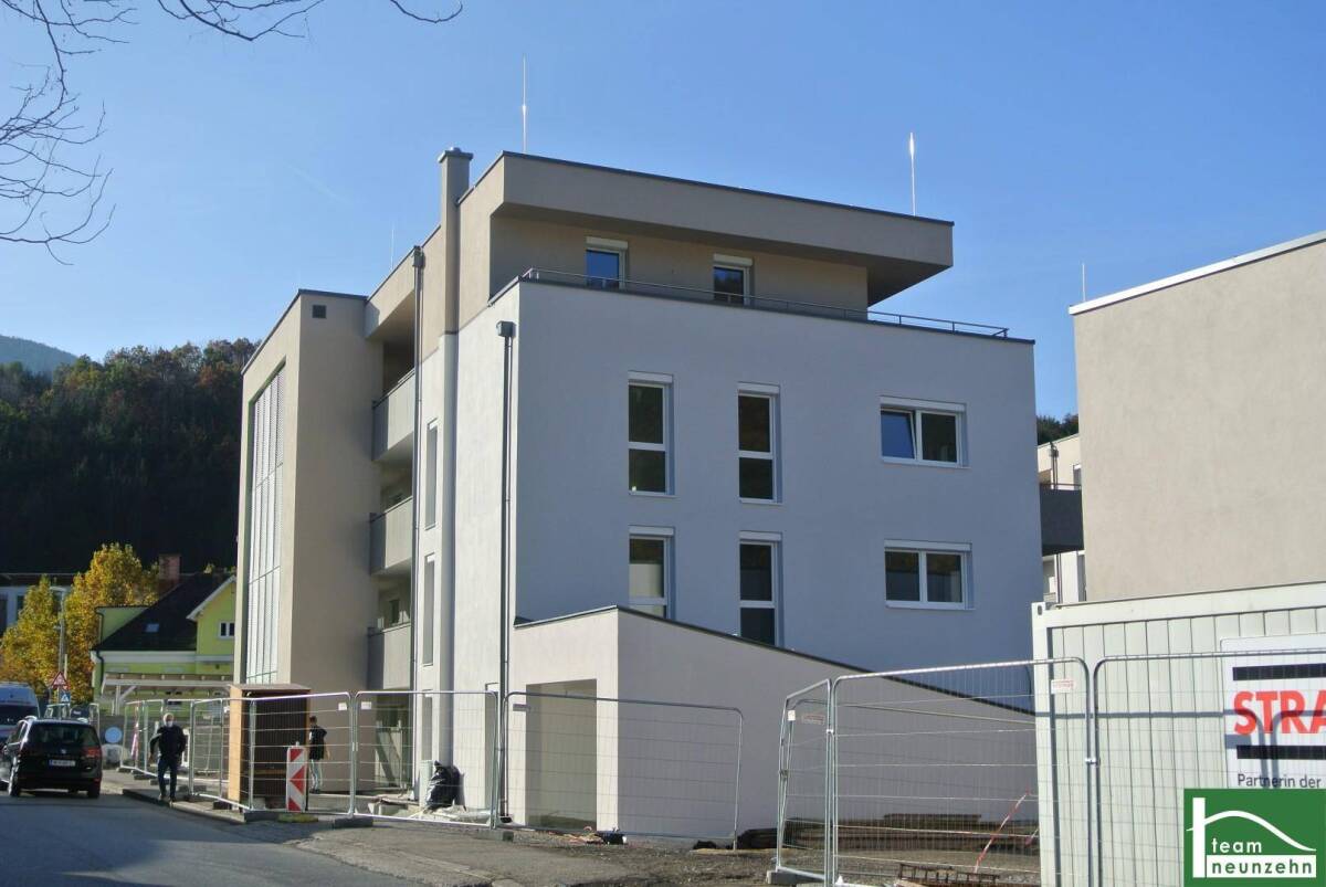 Wohnen im Park – WOHNPARK GLOGGNITZDie 6 Reihenhäuser werden mit 2 Geschossen errichtet. Jedes Reihenhaus verfügt über einen Eigengarten sowie direkten Zugang zur allgemeinen Parkanlage. Vor jedem Reihenhaus befinden sich 2 Stellplätze, davon ist 1 Stellplatz mit einem Carport überdacht.Die 2 Wohnhausanlagen mit je 4 Geschossen und je 17 Wohneinheiten verfügen alle über eine Terrasse, einen Balkon oder einen Eigengarten. Allen Eigentümern ist die Benützung der Parkanlage erlaubt.Im Kellergeschoss der Wohnhausanlage ist eine Tiefgarage (34 PKW-Stellplätze) gebaut worden. Weiters befinden sich Technik- und Einlagerungsräume sowie Fahrradabstellplätze und Kinderwagenabstellraum im Kellergeschoss der Wohnhausanlage.Der von außen zugängliche Müllraum ist im Erdgeschoss situiert.Die Fertigstellung des Projektes ist bereits erfolgt.Die Ausstattungshighlights für Sie kurz zusammengefasst: • ) Fußbodenheizung• ) Nahwärmeversorgung (Fernwärmeanschluss) • ) 3-Fach isolierverglaste Kunststofffenster • ) Eichenparkettboden • ) elektrische Außenrollos• ) hochwertige Sanitäreinrichtung • ) Sicherheitseingangstüre WK1 mit 3KS Mehrfachverriegelung • ) Kinderwagen und Fahrradabstellraum in den AllgemeinbereichenWohnung Top 15Die 3-Zimmer-Wohnung mit knapp 89 m² Wohnfläche zzgl. 45 m² Terrasse befindet sich im 3. Obergeschoss (Dachgeschoss) und gliedert sich in folgende Raumaufteilung:Eingangsbereich / VorraumWohnküche mit angrenzendem Essbereich und Terrassenzugang Badezimmer mit BadewanneSeparates WCAbstellraumSchlafzimmer 1Schlafzimmer 2Kaufpreis:Der Kaufpreis beläuft sich auf 298.000,-- €.Stellplatz: Der Kaufpreis beläuft sich auf 6.900,-- €.Carport:Der Kaufpreis beläuft sich auf 8.900,-- €.Der Verkauf erfolgt PROVISIONSFREI für den Käufer!Die Verkehrsanbindung glieder sich wie folgt:Sie erreichen in 400m / 5 Gehminuten mehrere Einkaufsmöglichkeiten, Ärtze, Kindergärten, Gaststätten und Kaffeehäuser. Das Landespflegeheim liegt direkt vis-a-vis ebenfalls an der Wiener Straße.Das neue Schulzentrum (Volksschule – Neue Mittelschule – Musikschule), welches 2019 fertiggestellt wurde, ist 1,0km entfernt.Ein großzügiger öffentlicher Kinderspielplatz liegt 400m entfernt.In unmittelbarer Nähe befinden sich mehrere Ausflugsziele wie Rax- Schneeberggebiet, Semmering, Schwimmbad Gloggnitz mit Schwimmteich, Schloss Gloggnitz, diverse Wander- und Spazierwege sowie Skigebiete.Bahnhof Gloggnitz – 450 mBuslinie 1734 – 450 mEnergieausweis:Der Heizwärmebedarf 33,7 kWh/m2a entspricht der Klasse BGerne steht Ihnen Herr Wolfgang Kucharik für weitere Fragen bzw. Besichtigungen unter 0699 143 243 33 zur Verfügung."Leben braucht Raum" teamneunzehn.at Immobilienmanagement GmbH & Co KG www.teamneunzehn.atWir weisen ausdrücklich auf unser wirtschaftliches Naheverhältnis mit dem Abgeber/der Abgeberin hin! Irrtum und Änderungen vorbehalten! Die angeführten Bilder sind Visualisierungen. Abänderungen zur tatsächlichen Ausführung können resultieren. Die auf den Bildern ersichtlichen Einrichtungsgegenstände und Accessoires werden nicht mitverkauft.SuchkundenbetreuungWir wissen, dass die Suche nach der perfekten Immobilie manchmal eine etwas Längere sein kann. Durch unsere professionelle und persönliche Suchkundebetreuung gelangen Sie schneller und bequemer ans Ziel.Sorgenfrei vermieten – Rundum-Servicepakete für AnlegerSie möchten nach Erwerb der Immobilie mit der Vermietung sowie den Mietabrechnungen und eventuellen Fragen während des Mietverhältnisses nicht beschäftigt sein? Wir bieten verschiedene und maßgeschneiderte Konzepte rund um unser Dienstleistungsprogramm »sorgenfrei vermieten«.Finanzierungsservice – Ihre Wunschimmobilie optimal finanziertUm Ihnen bei der Finanzierung Ihrer neuen Wohnung Zeit und Geld zu sparen, stehen Ihnen unsere Finanzierungsprofis mit Rat und Tat zur Seite. Wir führen für Sie unverbindlich und kostenlos einen unabhängigen Vergleich der unterschiedlichen Kreditkonditionen durch und verhelfen Ihnen zum optimalen Angebot.Maßgefertigte Tischlerküchen zum fairen PreisVollkommen transparent mit Fingerspitzengefühl und individuell sorgen wir für die Verwirklichung der auf Ihre Immobilie und Wünsche zugeschnittenen Maßküchen- und Möbel, welche insbesondere durch attraktive Preise bei höchster Qualität punkten können.Wohnen im Park – WOHNPARK GLOGGNITZ!Infrastruktur / EntfernungenGesundheit Arzt <500m Apotheke <1.000m Kinder & Schulen Schule <1.000m Kindergarten <1.000m Nahversorgung Supermarkt <500m Bäckerei <500m Einkaufszentrum <500m Sonstige Bank <500m Geldautomat <500m Post <1.000m Polizei <500m Verkehr Bus <500m Bahnhof <500m Autobahnanschluss <1.500m Angaben Entfernung Luftlinie / Quelle: OpenStreetMap