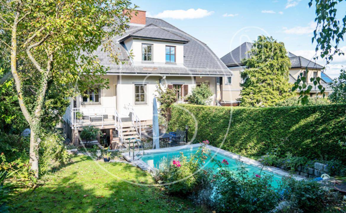 Zum Verkauf kommt eine sehr familienfreundliche Immobilie in ausgezeichneter Grünruhelage von Maria Enzersdorf. Die Marktgemeinde Maria Enzersdorf mit ihren ca. 8.600 Einwohnern liegt am südlichen Stadtrand von Wien, eingebettet in eine wunderbar hügelige Landschaft von Wald und Weinbergen. Der Ort verfügt über eine sehr gute Infrastruktur, inklusive hervorragender Kindergärten und Schulen. Nach Wien sind es sowohl mit öffentlichen Verkehrsmitteln, als auch mit dem Pkw, nur wenige Fahrminuten. Die im Jahr 1986 in Ziegelmassivbauweise errichtete Doppelhaushälfte ist Teil einer mehrere Doppelhäuser umfassenden Wohnungseigentümergemeinschaft. Zu der Liegenschaft gehört eine Grundfläche von insgesamt ca. 354 m², wobei davon ca. 76 m² mit dem Doppelhaus verbaute Fläche sind. Im rückwertigen südlichen Teil des Grundes befindet sich ein überaus charmanter Garten mit Pool (6m x 4m, Gegenstromanlage, Baujahr 1994). Das Haus wurde leicht in einen sanften Hang hineingebaut und wird nordseitig durch ein Erdgeschoss betreten, welches durch die teilweise Hanglage gleichzeitig auch partiell ein Kellergeschoss ist. In dieser Ebene befinden sich u.a. eine Garage und eine Sauna. Darüber hinaus gibt es ein Zimmer mit ca. 12 m², welches wegen etwas eingeschränkter Raumhöhe und natürlicher Belichtung zwar keine vollwertige Wohnnutzfläche bietet (und zu dieser auch nicht hinzugezählt wurde), jedoch z.B. als Homeoffice, Gästezimmer oder Fitnessraum genutzt werden könnte. Im Ober- und Dachgeschoss stehen eine Wohnutzfläche von ca. 130 m² zur Verfügung. Der nordseitige ca. 22 m² Küchen- und Essbereich im Obergeschoss mit Ausgang auf einen ca. 4 m² Balkon ist eine Augenweide. Direkt gegenüber liegend, nur durch das Stiegenhaus getrennt, befindet sich das südseitige ca. 26 m² Wohnzimmer mit Ausgang auf die ca. 10 m² Südterrasse. Von dieser gelangt man über ein paar Stufen direkt in den Garten mit seinem wunderbaren Altbaumbestand, Pool und Grillplatz. Unterhalb der Terrasse befindet sich ein gartenseitig zugänglicher ca. 9 m² Abstellraum. Der Garten ist im Frühjahr und Sommer von außen fast uneinsichtig und bietet somit viel Privatsphäre. Im Dachgeschoss sind vier Schlafzimmer und ein Badezimmer situiert. Die genaue Raumaufteilung kann den beigelegten Grundrissplänen entnommen werden. Die Doppelhaushälfte wurde im Laufe der Jahre immer wieder renoviert, sodass sie sich heute in einem sehr gepflegten Zustand präsentiert. Im Jahr 2014 wurde beispielsweise die Gastherme, welche Heizung und Warmwasser bereitstellt, erneuert. Die moderne Küche ist aus dem Jahr 2015 und 2017 wurden neue Holz-Alu-Fenster im ganzen Haus installiert. Von der Hausverwaltung werden aktuell monatliche Betriebskosten in Höhe von € 97,34 vorgeschrieben, die auch bereits Beiträge zur Reparaturrücklage und Mehrwertsteuer enthalten. Ein Sofortbezug dieser attraktiven Immobilie wäre möglich. Der Heizwärmebedarf aus dem Energieausweis vom 31.10.2020 beträgt 106 kWh/m²a. Der Gesamtenergieeffizienz-Faktor ist 1,39.