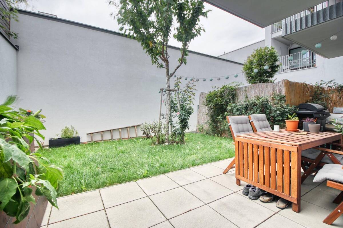 Wir möchten Ihnen heute ein Zuhause vorstellen, das Jung und Alt ein wahrlich komfortables Wohnen garantiert. Willkommen in Ihrer persönlichen Oase der Ruhe. Gönnen Sie sich täglich Entspannung vom stressigen Alltag, Dank der großen Terrasse und Ihrem privaten Garten. Sie erreichen das Donauspital in 5 min mit dem Rad.In einem 2017 erbauten, modernen Haus, spielt Ihr neues Leben alle Stücke. Ihr neuer Lebensraum liegt im Erdgeschoss und bietet auf 68m² und mit 3 Zimmern, Ihnen und Ihrer Familie tollen Wohnraum. Das Wohnzimmer besticht durch seine Höhe von 3.15m und seine großzügigen Fenster mit reichlich Tageslicht, das sich im Parkettboden spiegelt. Zudem bietet es genügend Platz für eine große, gemütliche Sofaecke, sowie einen direkten Zugang zum ca. 50m² großen, südseitigen Garten-Terrassenbereich. Genießen Sie die frühe Abendsonne und die ruhige Umgebung. Die offene Küche Ihrer Träume von EWE ist schon da und besticht mit hochwertigen Siemens und Bosch Geräten. Zum Wachwerden haben Sie eine Dusche im weißen Badezimmer, für den entspannten Abend eine Badewanne. Zusätzlich gibt es ein praktisches, kleines Gäste-WC. Ihr Auto findet in der Tiefgarage Platz. Der Stellplatz kann bei Interesse angemietet werden. Wir laden Sie ein, diese Wohnung bei einer privaten Besichtigung zu erleben!