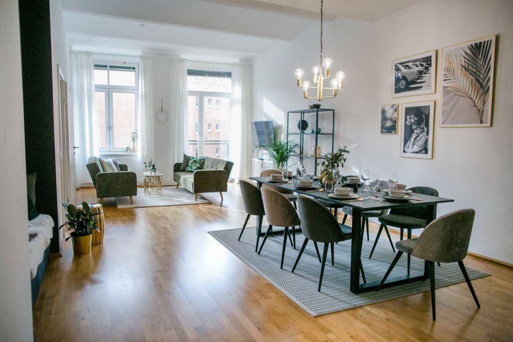 Neu eingerichtetes, stylisches & komfortables ruhiges! Designapartment für bis zu 5 Personen mit WLAN. Auf 95 qm wohnt ihr direkt am Hauptplatz. Der offene Wohnraum ist mit Balkon und Smart TV ausgestattet, die Küche verfügt über Spülmaschine, Wasserkocher und Kaffeemaschine. Das Badezimmer hat Badewanne, Fön und WC. Zudem gibt es ein weiteres separates WC. (2 WCs)Das Apartment direkt am Hautplatz (Blick nicht auf den Hauptplatz sondern nach hinten und daher sehr ruhig) ist komplett neu und modern ausgestattet und bietet alles was ihr zum Wohnen braucht. Ob auf der Durchreise oder für einen längeren Aufenthalt, ob touristisch oder geschäftlich, es fehlt an Nichts. Die Küche bietet alles was ihr für einen gemütlichen Kochabend braucht. Vom Elektroherd, über Töpfe, goldenem Besteck, einem stylischen Service bis zur Spülmaschine, alles ist vorhanden. Ebenso gibt es eine Waschmaschine. WLAN natürlich auch! Fahrräder könnt ihr sicher im Fahrradraum verschließen.Wie ihr sehen werdet, lieben wir Deko und sind uns sicher, dass ihr euch damit sehr wohl fühlen werdet.Schlafsitation:SZ1 für 2 Personen: Doppelbett 180cmSZ2 für 1 Person: 1 Einzelbett 90cm - ist eine Schlafnische und hinter Wandvorsprung mit Vorhang vom SZ1 getrenntSZ3 für 3 Personen: 1 Doppelbett 180cm und SchlafsofaDas Badezimmer mit Badewanne und WC ist mit Fön, Handtüchern, Seife, Duschgel, Shampoo und Spülung ausgestattet. Es gibt ein weiteres separates WC. Energieausweis Dieses Gebäude unterliegt nicht den Anforderungen der EnEV.