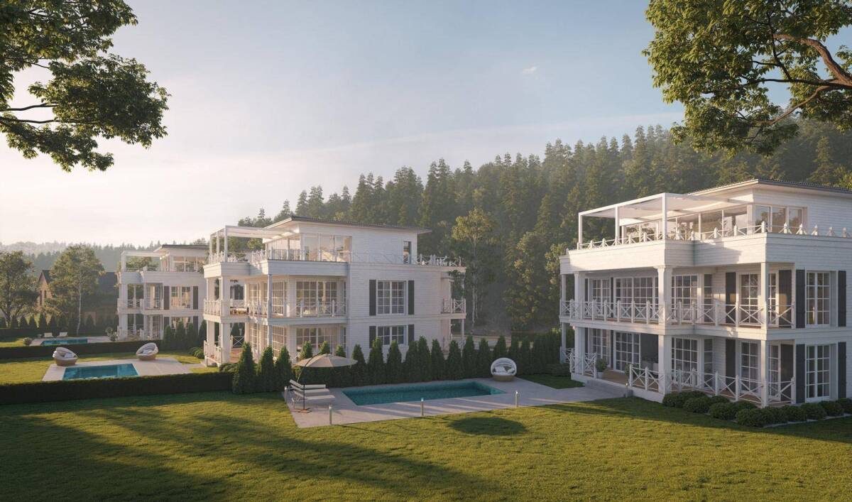 Die Villa „East Hampton“ liegt östlich neben zwei weiteren Villen auf einem parkähnlichen Areal und fasziniert mit einem einzigartigen Panorama-Blick auf den türkisfarbenen Wörthersee und die umliegende Naturlandschaft. Ein angrenzendes Wäldchen und gepflegte Hecken schützen die Villa vor fremden Einblicken und bieten absolute Privatsphäre. Helle Farbtöne wie Weiß, Sand, Beige und warmes Grau sowie große Fenstertüren mit überdachten Terrassen dominieren den Look dieser exzellenten Architektur.