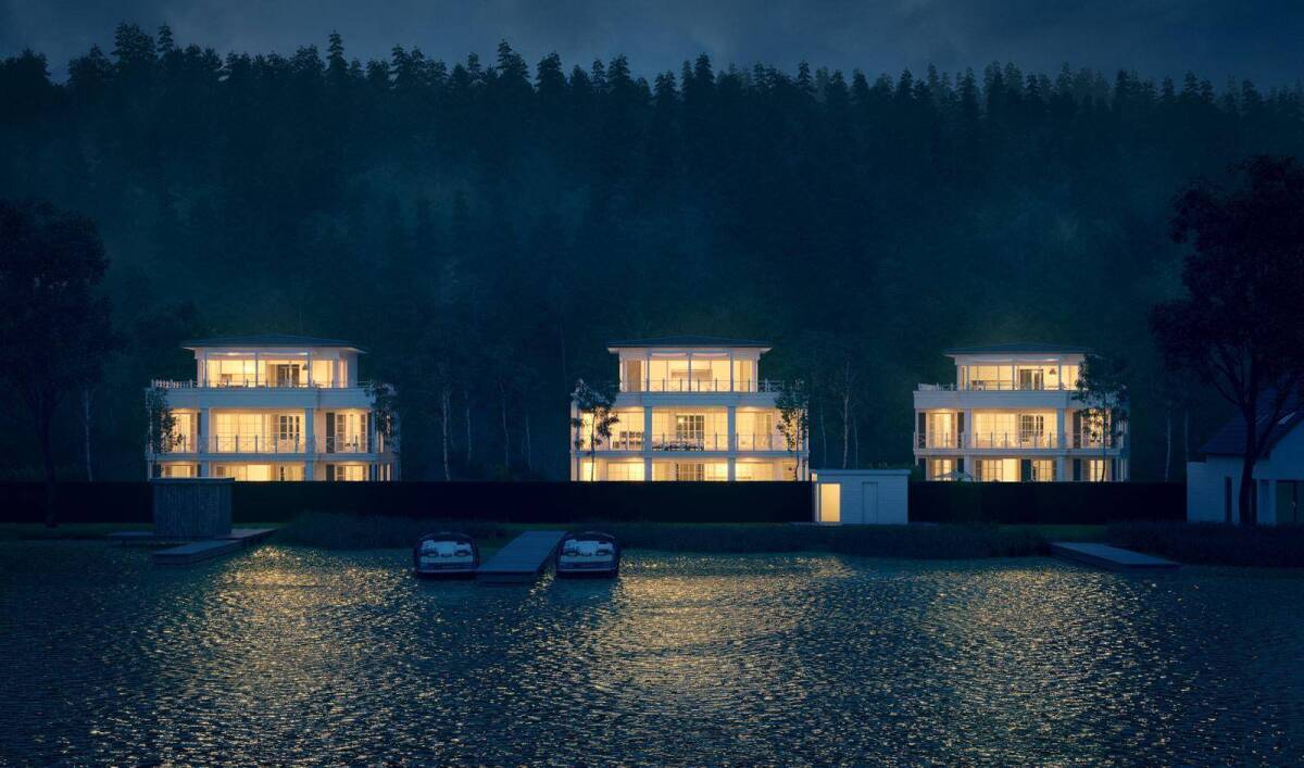 Die Villa „Southampton“ liegt zwischen zwei weiteren Villen auf einem parkähnlichen Areal und fasziniert mit einem einzigartigen Panorama-Blick auf den türkisfarbenen Wörthersee und die umliegende Naturlandschaft. Ein angrenzendes Wäldchen und gepflegte Hecken schützen die Villa vor fremden Einblicken und bieten absolute Privatsphäre. Helle Farbtöne wie Weiß, Sand, Beige und warmes Grau sowie große Fenstertüren mit überdachten Terrassen dominieren den Look dieser exzellenten Architektur.