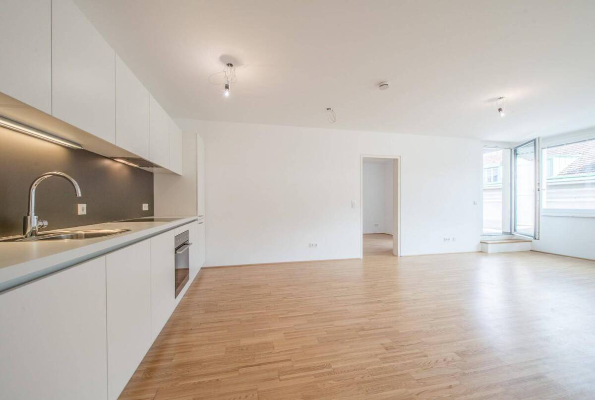Geschätzte InteressentInnen!Die derzeitige Situation zwingt auch die Immobilienwirtschaft zum Umdenken. Wir möchten Sie auch in diesen Zeiten bei der Suche begleiten und Ihnen weiterhin Möglichkeiten zur Besichtigung anbieten. Diese Termine finden unter Wahrung des notwendigen Sicherheitsabstandes statt.Herzlichen Dank!****************************************************************************************************************************************Unter folgendem Link können Sie vorab eine Videobesichtigung durchführen (https://files.justimmo.at/public/video/orig/AvetglBFGY.asf).HINWEIS: Die Fotos stammen aus der Erstvermarktung!****************************************************************************************************************************************Die Liegenschaft.Bei dem gegenständlichen Projekt handelt es sich um ein in 2016 fertiggestelltes Gebäude, in welchem 63 neue Wohneinheiten geschaffen wurden!Die Wohnungen wurden unter Zuhilfenahme hochwertigster Materialien technisch wie optisch komplett neu hergestellt! Sämtliche verwendeten Materialien und Produkte werden auch höchsten Ansprüchen gerecht. Geheizt werden alle Wohneinheiten über eine neu verbaute Fußbodenheizung, welche über eine Hauszentralheizung gespeist wird.Selbstverständlich ist jeder Wohnung ein Kellerabteil zugeordnet - ein großer Fahrradraum, sowie eine Waschküche stehen allen Mietern zur Verfügung. Weiters sind Garagenparkplätze im Haus verfügbar und können separat angemietet werden.Die Wohnung.Diese perfekt aufgeteilte 2-Zimmer-Wohnung bietet auf insgesamt rund 60m2 Wohnfläche alles was das Herz begehrt. Der gute Zustand derWohnung und der gesamten Anlage bieten gleichwohl ein charmantes und wohnliches, als auch äußerst vornehmes Ambiente!Die Wohnung besteht aus einem großen Vorraum der genügend Platz für Schrank und Kommode bietet, einer offenen Wohn-Küche mit hochwertigen Miele-Geräten, einer offenen Loggia, ein Schlafzimmer mit verbauter Nische für einen offenen Kleiderschrank, ein Badezimmer mit Wanne und zwei Waschbecken!Sowohl das erste Schlafzimmer als auch das sehr offen gestaltete Wohn- und Esszimmer mit Ausgang auf die 18m2 große Terrasse ist sehr freundlich und lichtdurchflutet.Das Badezimmer wird mit den hochwertigen Materialien auch höchsten Ansprüchen gerecht. Das separate WC erreichen Sie vom zentralen Vorraum aus.****************************************************************************************************************************************Sollten Sie Fragen haben oder eine Besichtigung wünschen, freuen wir uns sehr über Ihre Kontaktaufnahme unter sp@sulek.immobilien oder unter +43 676 643 31 24Infrastruktur / EntfernungenGesundheit Arzt <250m Apotheke <500m Krankenhaus <1.000m Klinik <1.500m Kinder & Schulen Schule <500m Kindergarten <250m Universität <750m Höhere Schule <750m Nahversorgung Supermarkt <250m Bäckerei <500m Einkaufszentrum <1.000m Sonstige Bank <500m Geldautomat <500m Post <250m Polizei <500m Verkehr Bus <250m Straßenbahn <500m U-Bahn <500m Bahnhof <500m Autobahnanschluss <3.500m Angaben Entfernung Luftlinie / Quelle: OpenStreetMap