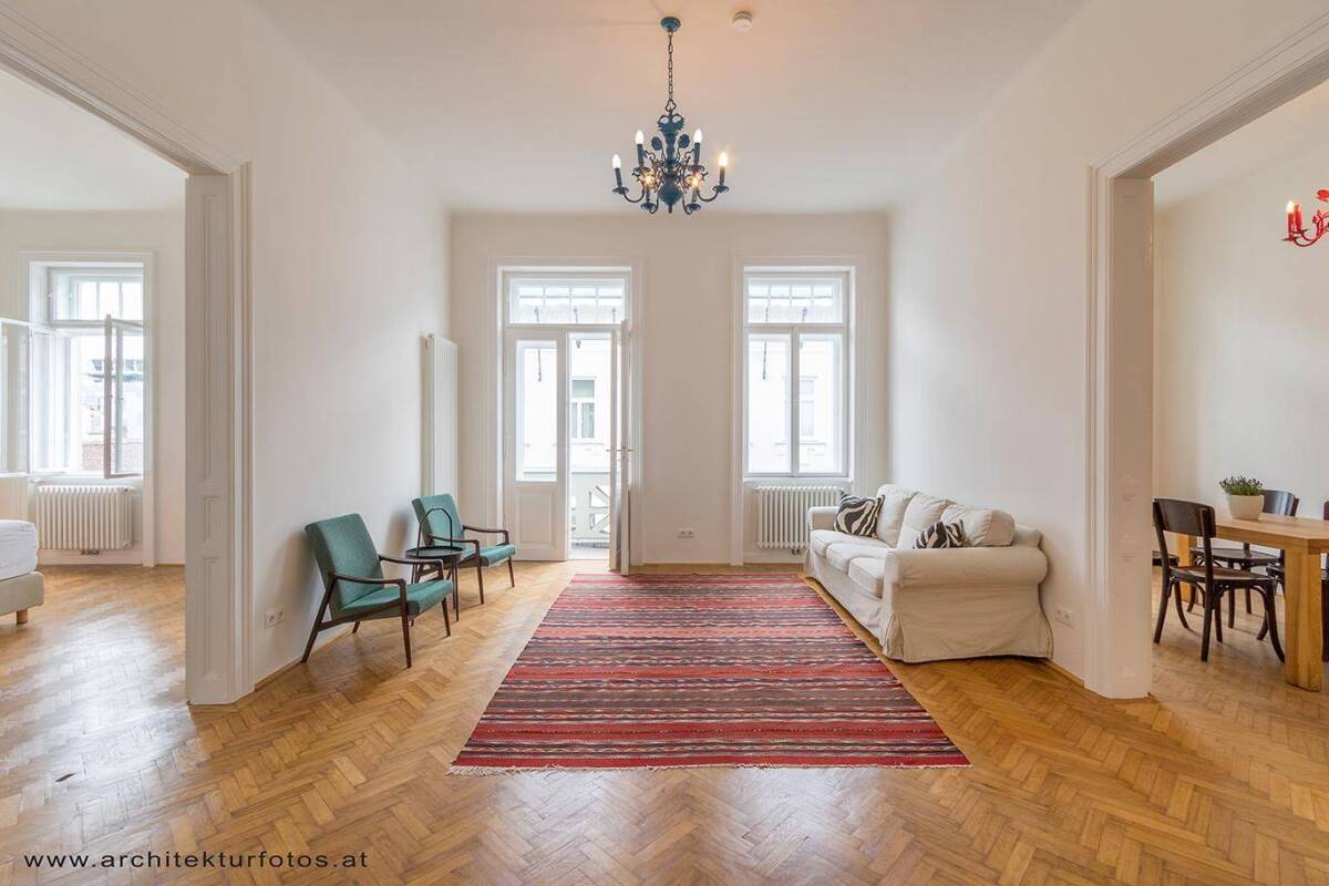 90 m2 flat in the classic Viennese “Altbau” style, fully furnished, Gentzgasse, centrally located near Volksoper, 10 min from City Center /Schottentor, newly renovated. EUR 1.850.- per month, including operating costs, tax, heating, electricity and wifi. Maximum rent 6 months. Minimum rent 6 months. Payable in advance. Sunny flat with sunny balcony, 3. Stock (= U.S. 4th floor) with elevator, spacious living room, modern kitchen w/new appliances, bedroom with large built-in closet, queen size bed and air condition, dining room or office, bathroom, separate WC, storage room. Cement tile floors in the kitchen, bathroom and WC, original wooden parquet floors in all other rooms. Sheets & towels provided. Building from about 1900, typical “Gründerzeit” style, charming location near Kutschkermarkt with excellent shopping and dining. Popular neighbourhood near the Volksoper with excellent connections to public transport.
