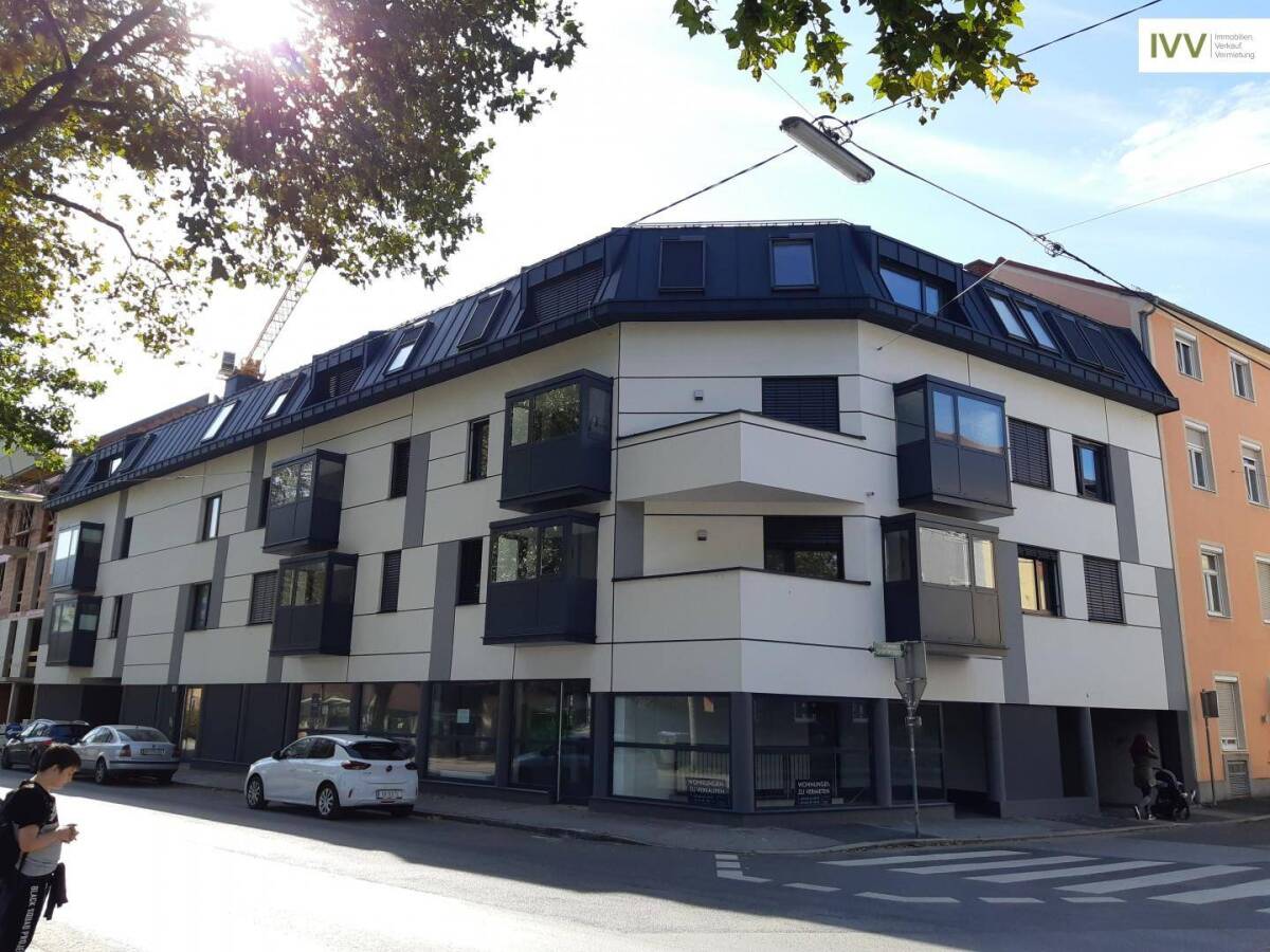 Diese Neubauwohnung befindet sich in guter Wohnlage im Bezirk Eggenberg und hat eine sehr gute und gelungene Raumaufteilung (siehe Planskizze). Die Wohnung ist mit einem Parkettboden und elektrischen Jalousien ausgestattet. Ein Highlight ist sicherlich der große Balkon mit fast 15 m² Nutzfläche.Das neue Bad ist mit einer Dusche ausgestattet und die Küche neu möbliert und komplett eingerichtet. Das Schlafzimmer ist direkt begehbar vom Wohn-Esszimmer mit Zugang zur großen Balkonterrasse bzw. Loggia.Hofer, Billa und DM sowie öffentliche Verkehrsmittel sind in unmittelbarer Nähe. Ein Parkplatz kann um € 60,-- inkl. MWSt. pro Monat angemietet werden.