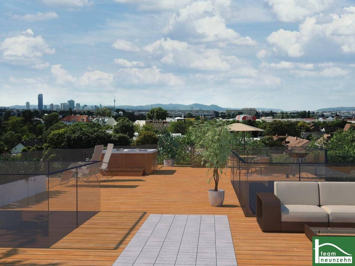 WOHNLANDSCHAFT KRAUTGARTEN.Luxury Living! Glasfronten! Dachgärten! absolut ruhig, aber dennoch zentral!Vorsorgewohnung!In idyllischer Ruhelage gelangen 40 Neubauwohnungen, 7 Dachgärten und 21 Garagenplätze zum Verkauf.Die Wohnungsgrößen bewegen sich zwischen 30qm und 94qm, alle Wohneinheiten verfügen über Gärten, Balkone und/oder Terrassen. Ein besonderes Highlight bieten die 7 Dachgärten, welche optional erworben werden können. Die Wohnhausanlage verfügt über einen Fahrradabstell- und Kinderwagenraum und für jede Wohneinheit steht ein Einlagerungsraum im Keller zur Verfügung. In der hauseigenen Tiefgarage können PKW-Stellplätze erworben werden.Bei den Wohnungen wurde sowohl auf die Architektur, als auch auf die Grundrisse im Zuge der Planung sehr viel wert gelegt. So stehen den neuen Eigentümern des Gebäudes moderne und gut geschnittene Wohnungen zur Verfügung. Selbstredend wird auch auf eine hochwertige Ausstattung geachtet.Auf eine hochwertige Ausstattung wurde sehr viel Wert gelegt: • ) INKU Echtholzparkettböden – für ein angenehmes Raumgefühl • ) dreifach isolierverglaste Fenster – für ein effizientes Heizen • ) elektrische Außenrollos – zur optimalen Beschattung, mit optionalen Insektenschutz • ) Laufen PRO Sanitärausstattung und Grohe Armaturen – für eine langlebige Verwendung • ) 3-fach verriegelte Sicherheitseingangstüre – für die optimale Sicherheit • ) RAK Ceramics Feinsteinzeug in den Nassräumen • ) Fußbodenheizung – für ein gleichmäßig, warmes Raumklima • ) Vollwärmeschutzfassade – um die Heizkosten niedrig zu haltenFür Kunden die einen besonderen Wert auf eine luxuriöse Ausstattung legen gibt es ein PREMIUM Paket, welches optional erworben werden kann. Dieses Paket beinhaltet unter anderem eine INKU Landhausdiele aus Eiche und Marazzi Fliesen mit Marmorierung. In der Sonderausstattungsliste finden Sie eine Nolte Küche mit verschiedenen Konfigurationsmöglichkeiten, einen WPC Terrassenbelag für Ihre Freifläche und andere Ausstattungshighlights.Bezugsfertig: Die Fertigstellung erfolgt voraussichtlich im Dezember 2022.Wohnung Top 19: Die 2-Zimmer Wohnung mit ca. 54 m² Wohnfläche mit einem ca. 13 m² Balkon liegt im 2. Liftstock und gliedert sich in folgende Räume:Vorraum ca. 3 m²Wohnküche ca. 23 m²Zimmer ca. 15 m²Schrankraum ca. 5 m²Badezimmer ca. 6 m²separate Toilette ca. 1 m²Abstellraum ca. 1 m² Kaufpreis: Der Kaufpreis beträgt 289.900,-- €. Der Kaufpreis für Anleger beträgt 260.910,-- € zzgl. 20% USt.Kosten PKW-Garagenplatz: Der Kaufpreis beträgt 22.000 €. Der Kaufpreis für Anleger beträgt 19.800€ zzgl. 20% USt.Bei erfolgreichem Abschluss wird eine Maklerprovision in der Höhe von 3% des Kaufpreises zzgl. 20% USt. fällig.Energieausweis: Der Heizwärmebedarf beträgt 30,7 kWh/m²a, welcher der Klasse B entspricht.Dienstleistung der teamneunzehn – Gruppe für Anleger: Sie möchten nach Erwerb der Immobilie mit der Vermietung sowie den Mietabrechnungen und eventuellen Fragen während des Mietverhältnisses nicht beschäftigt sein? So steht Ihnen unser Team mit einem tollen Dienstleistungskonzept für Anleger zur Verfügung. Gerne übermitteln wir Ihnen bei Bedarf die Unterlagen hierfür.Sie suchen nach einer passenden Finanzierung für dieses Objekt? Um Ihnen auch hier Zeit und Geld zu sparen, stehen wir Ihnen mit unserem hausinternen Finanzierungsservice zur Seite! Nehmen Sie Kontakt mit unseren Finanzierungsprofis auf, um sich einen Termin für ein unverbindliches und kostenloses Beratungsgespräch zu vereinbaren. Unsere Berater werden sich Ihrem Anliegen verlässlich und professionell annehmen und den Markt für Sie sondieren, sodass Sie direkt zum optimalen Kreditangebot gelangen ohne kostbare Zeit und Mühen für unzählige Banktermine aufwenden zu müssen.Bei Fragen bzw. Besichtigungen steht Ihnen Herr Kevin Matyas gerne unter 0664 18 146 55 bzw. per Mail unter kevin.matyas@teamneunzehn.at zur Verfügung.„Leben braucht Raum“ – teamneunzehn.at Immobilienmanagement GmbH & Co. KG www.teamneunzehn.at Die angeführten Fotos sind Beispielbilder. Abänderungen zur tatsächlichen Ausführung können resultieren. Die auf den Bildern ersichtlichen Einrichtungsgegenstände, Accessoires u.dgl. sind nicht Bestandteil des Kaufpreises. Wir weisen ausdrücklich auf unser wirtschaftliches und familiäres Naheverhältnis mit dem Abgeber/der Abgeberin hin! Irrtümer und Änderungen vorbehalten!Einzigartiger Ausblick über Wien vom Dachgarten! Erstbezug! Glasfronten! Garage! Elektr. Außenrollos!Infrastruktur / EntfernungenGesundheit Arzt <1.000m Apotheke <1.000m Klinik <5.500m Krankenhaus <2.000m Kinder & Schulen Schule <1.000m Kindergarten <1.000m Universität <3.500m Höhere Schule <2.500m Nahversorgung Supermarkt <500m Bäckerei <1.000m Einkaufszentrum <1.500m Sonstige Bank <1.500m Geldautomat <1.500m Post <1.500m Polizei <500m Verkehr Bus <500m Straßenbahn <1.000m U-Bahn <1.500m Bahnhof <500m Autobahnanschluss <1.000m Angaben Entfernung Luftlinie / Quelle: OpenStreetMap