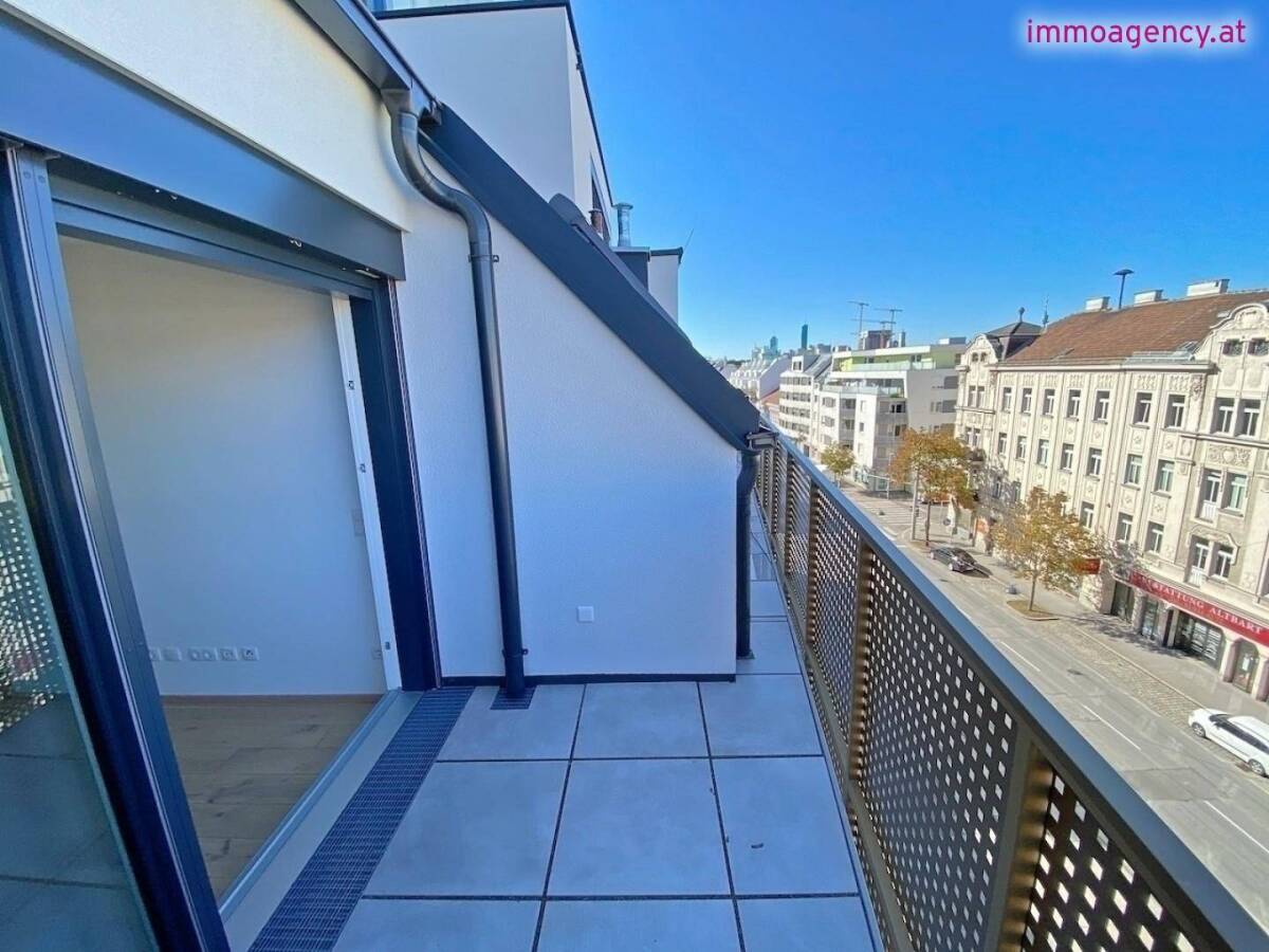 EXKLUSIV und MODERN, Dachgeschoss Wohnung mit Terrasse Nähe U1-Kagraner Platz!Zur Vermietung gelangt in einem neu errichteten Wohnhaus entlang der Wagramer Straße die 50,90m2 Wohnung + 5,46m2 Terrasse, befindet sich im 1. Dachgeschoss mit Lift und wird ab sofort - befristet auf 5 Jahre vermietet. Die Wohneinheit besticht durch Ihren Grundriss und besitzt ein Wohnzimmer mit offener Küche, ein Schlafzimmer, ein Badezimmer mit Dusche und ein WC, sowie Vorraum. Der Außenbereich ist Nord-Westseitig Ausgerichtet und lädt zum Verweilen am Nachmittag ein.Zur Wohnung gehört ein Kellerabteil, ebenfalls steht ein Fahrradraum sowie ein Kinderwagenabstellraum zur Verfügung.Highlight:Einbauküche mit MarkengerätenKlimaanlageFussbodenheizung3-fach Verglasung und elektrische AußenjalousienRaumaufteilung:25,67m2 Wohnküche13,26m2 Zimmer 4,95m2 Vorraum 5,81m2 Bad+WC 1,21m2 Abstellbereich 5,46m2 TerrasseDas Objekt liegt im Herzen von Kagran. Hier, wo zwischen Donauzentrum und Kagraner Platz ein Stadtteil seine moderne Wiederauferstehung erlebt. Die Einkaufsmöglichkeiten sind fantastisch, die U-Bahn erreicht man nach wenigen Schritten, das legendäre Cafe Falk lädt zum Studium des Lokalkolorits ein und die Alte Donau ist zu Fuß in 15 Minuten erreichbar - und damit ein Eldorado an Freizeitmöglichkeiten.Hier können Sportbegeisterte alle Wünsche ausleben. Schöne Spazierwege laden zum Durchatmen ein und ein breites Angebot an kulinarischem Entertainment, direkt am Wasser, bietet für jeden Geschmack das Richtige.EUR 870,- Gesamtmiete inkl. BK und USt. + Warmwasser und Heizung sowie KaltwasserEUR 3.500,- Kaution2BMM ProvisionBefristet auf 5 Jahre mit VerlängerungsoptionZur Beantwortung Ihrer Fragen und Vereinbarung eines Besichtigungstermins stehe ich Ihnen gerne unter 0699 19293025 und mirzaei@immoagency.at zur Verfügung.