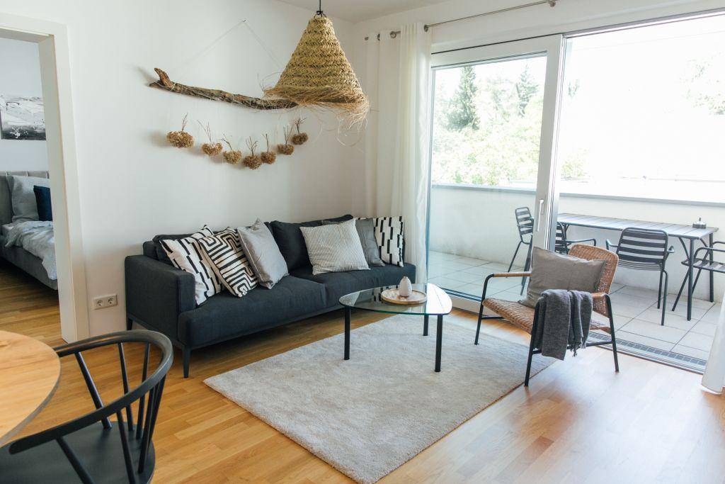 Neu eingerichtetes, stylisches & komfortables Designapartment für 2 Personen. Auf 54 qm wohnt man im Neubau, super zentral. Der 15 qm Balkon mit Esstisch und einer Hängematte laden zum Entspannen ein. Das Sofa im gemütlichen Wohnzimmer-Esszimmer bietet als Sofabett Platz für 2 weitere Personen. Die Küche ist komplett ausgestattet mit Spülmaschine, Wasserkocher und Kaffeemaschine. Waschmaschine in praktischer Abstellkammer ist vorhandenDie Wohnung ist löffelfertig ausgestattet. Energieausweis Dieses Gebäude unterliegt nicht den Anforderungen der EnEV.