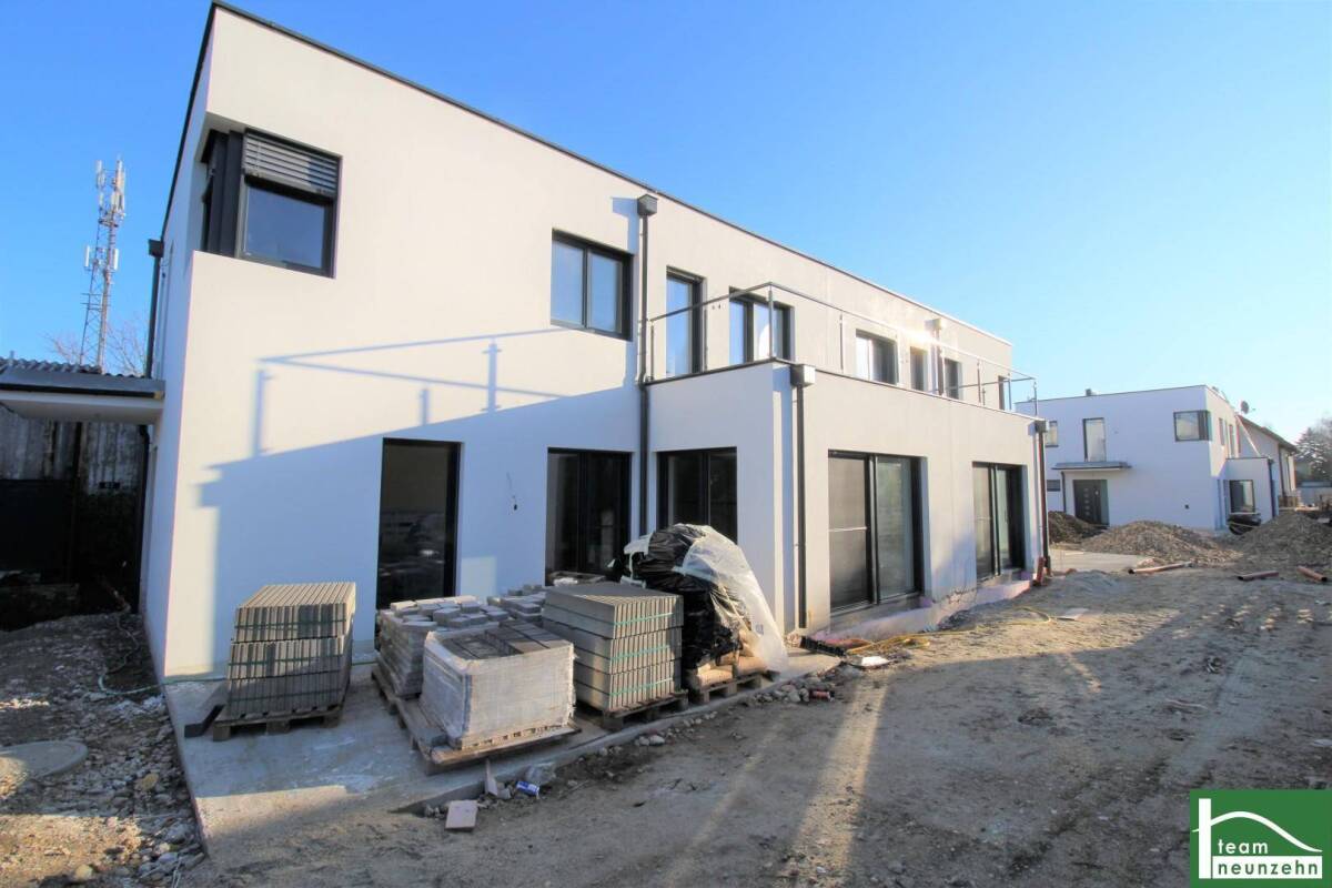 WOHNEN IM GRÜNEN - EXQUISITE MASSIVHÄUSER MIT TRAUMHAFTEN AUßENFLÄCHEN – PLATZ FÜR DIE GANZE FAMILIEKLARE LINIEN.Moderne Architektur, durchdachte Planung und Platz für die ganze Familie. Ein Fundament für Jahrzehnte, das Ihrem Lebensmittelpunkt eine Basis gibt. Genießen Sie solides Wohnen und einen nachhaltigen Lebensstil.Sie können sich Ihr Traum-Haus noch auswählen!Insgesamt entstehen hier 2 Doppelhäuser und 1 Einfamilienhaus in traumhaft schöner Lage. Alle Häuser werden energiesparend (Klasse A), mit Luft/Wärmepumpen ausgestattet errichtet. Sie verfügen über einen wunderschönen Eigengarten, außerdem hat jedes Schlafzimmer eine Freifläche.Die Häuser werden Belagsfertig hergestellt, jedes Haus besitzt 2 eigene Parkplätze und 1 Vorbereitung für eine E-Ladestation.Die Übergabe im belagsfertigen Zustand ermöglicht Ihnen die Ausstattung individuell nach Ihren Wünschen zu gestalten. Ein Schlüsselfertigpaket können wir über eines unserer Partnerunternehmen auf Anfrage gerne anbieten! Gerne bieten wir Ihnen auch eine Lösung für ihre Traumküche an!Hausaufteilung:Im EG befindet sich ein Vorraum, WC, Technikraum, Büro, großzügiger Wohn- Essbereich mit offener Küche und den Ausgange in den sonnigen Eigengarten.Im OG erschlossen über eine wunderschöne Treppe befinden sich das Schlafzimmer 1 mit Badezimmer und Ausgang auf eine Terrasse, Schlafzimmer 2 mit Ausgang auf die Terrasse, Schlafzimmer 3 mit Ausgang auf den Balkon, Zweites Badezimmer.Die Häuser werden in Ziegelbauweise errichtet, Energieeffiziente Versorgung mittels Luftwärmepumpe und Fußbodenheizung.Die Fenster werden mit einer 3fach Kunststoff-Alu Verglasung (Marke Rekord) und elektrischen Rollläden versehen.Großzügige Garten- und Außenflächen (Terrasse, Balkon), die Autoabstellplätze befinden sich direkt am Grundstück.Die Wohnnutzfläche der Häuser beträgt je ca. 139 m², die Gartenflächen bewegen sich von ca. 75,70 m² bis 157,43 m².Die Fertigstellung ist bereits erfolgt. Die Häuser werde als Wohnungseigentum gewidmet.Das Projekt zeichnet sich vor allem durch folgende Attribute aus:-) Erstbezugs-Neubau-) tolles Preis-/Leistungsverhältnis-) schöner Eigengarten-) funktionale Raumaufteilung -) hochwertige Ziegelmassivbauweise -) Belagsfertig-) tolle Infrastruktur -) Freiflächen (Terrasse, Balkon, Garten) bei allen Häusern-) Pro Haus 2 Autoabstellplätze direkt am Grundstück-) Vorbereitung KlimaanlageAusstattungsstandard:Durchdachte Details für Ihr Wohlbefinden – Freuen Sie sich auf nachhaltige Extras. Bei der Realisierung des Neubaus wurde großen Wert auf eine hochwertige Ausstattung sowie langlebige Materialien gelegt:Vollwärmeschutzfassade (geringer Heizwärmebedarf = geringe Heizkosten)Luft/Wärmepumpe in Kombination mit einer Fußbodenheizung AutoabstellplatzFenster inkl. Rollläden3fach Verglasung Kunststoff-AluGroßzügige AußenflächenVorbereitung E-Ladestation (Stromanschluss)Uvm.Aufteilung Haus 2:Im EG befindet sich ein Vorraum, WC, Technikraum, Büro, großzügiger Wohn- Essbereich mit offener KücheIm OG erschlossen über eine wunderschöne Treppe befinden sich das Schlafzimmer 1 mit Badezimmer und Ausgang auf eine Terrasse, Schlafzimmer 2 mit Ausgang auf die Terrasse, Schlafzimmer 3 mit Ausgang auf den Balkon, Zweites Badezimmer, Aufgang auf die Dachterrasse.Das Haus wird in Ziegelbauweise errichtet, Energieeffiziente Versorgung mittels Luftwärmepumpe und Fußbodenheizung.Die Fenster werden mit einer 3fach Kunststoff-Alu Verglasung (Marke Rekord) und elektrischen Rollläden versehen.Großzügige Garten- und Außenfläche (Terrasse, Balkon), die Autoabstellplätze befinden sich direkt am Grundstück.Die Wohnnutzfläche des Hauses beträgt ca. 139 m², die Größe des Gartens beträgt 75,70 m².Die Fertigstellung erfolgt im August 2020. Die Widmung ist Wohnungseigentum!Infrastruktur:Das Haus befinden sich in unmittelbarer Umgebung zu einem Supermarkt (9 Minuten zu Fuß).Gute Verkehrsanbindung, Bus in 400m und eine Bahnhaltestelle mit P+R.Ein Kindergarten ist in 6 Min zu Fuß entfernt.Fordern sie das Lage Expose an um noch mehr Einblick zu erhalten.Energieausweis:Der Heizwärmebedarf 28,36 kWh/m2a entspricht der Klasse A.Kaufpreis:Der Kaufpreis beläuft sich auf 415.000,-- €.Provision: 3% des Kaufpreises zzgl. 20% USt.Sie suchen nach einer passenden Finanzierung für dieses Objekt?Um Ihnen auch hier Zeit und Geld zu sparen, stehen wir Ihnen mit unserem hausinternen Finanzierungsservice zur Seite! Nehmen Sie Kontakt mit unseren Finanzierungsprofis auf, um sich einen Termin für ein unverbindliches und kostenloses Beratungsgespräch zu vereinbaren. Unsere Berater werden sich Ihrem Anliegen verlässlich und professionell annehmen und den Markt für Sie sondieren, sodass Sie direkt zum optimalen Kreditangebot gelangen ohne kostbare Zeit und Mühen für unzählige Banktermine aufwenden zu müssen.Für Fragen bzw. Besichtigungen steht Ihnen Herr Kevin Gödel sehr gerne unter 0664 41 28 427 zur Verfügung."Leben braucht Raum" teamneunzehn.at Immobilienmanagement GmbH & Co KG www.teamneunzehn.atWir weisen ausdrücklich auf unser wirtschaftliches Naheverhältnis mit dem Abgeber/der Abgeberin hin! Irrtum und Änderungen vorbehalten! Die angeführten Bilder sind Visualisierungen. Abänderungen zur tatsächlichen Ausführung können resultieren. Die auf den Bildern ersichtlichen Einrichtungsgegenstände und Accessoires werden nicht mitverkauft.SuchkundenbetreuungWir wissen, dass die Suche nach der perfekten Immobilie manchmal eine etwas Längere sein kann. Durch unsere professionelle und persönliche Suchkundebetreuung gelangen Sie schneller und bequemer ans Ziel.Sorgenfrei vermieten – Rundum-Servicepakete für AnlegerSie möchten nach Erwerb der Immobilie mit der Vermietung sowie den Mietabrechnungen und eventuellen Fragen während des Mietverhältnisses nicht beschäftigt sein? Wir bieten verschiedene und maßgeschneiderte Konzepte rund um unser Dienstleistungsprogramm »s