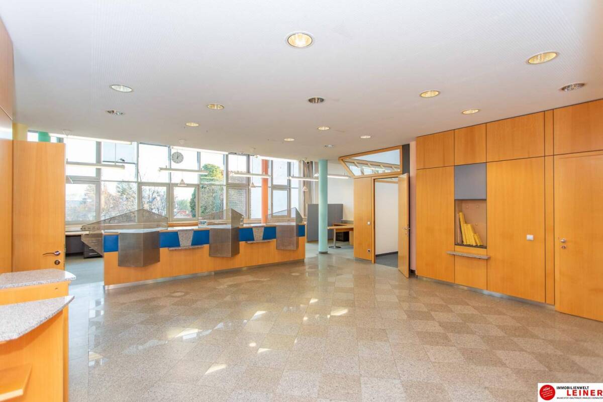 ca. 300 m² Bürofläche, Garagen, Archiv und Lagermöglichkeit - hier leben Sie Ihren Traum!HIER DER LINK ZUR VIDEOBESICHTIGUNG• Erdgeschoss: ca. 182 m² Bürofläche, barrierefrei begehbar • derzeit 3 Büroräume - 2 separate Räume und ein Großraumbüro - vielfältig nutzbar • großzügiger Eingangsbereich • Kellergeschoss: verfügt über einen Sozialraum, WC's, Archiv, Garderobe Damen, Garderobe Herren und einen Abstellraum • Tresorraum vorhanden • raumhohe Fenster - hier haben Sie ausreichend Tageslicht um Ihrer Tätigkeit nachzukommen • Sozialraum mit Küche und Sitzgelegenheit • derzeit befinden sich Schreibtische und Schränke im Gebäude - auf Wunsch können diese verbleiben • in jedem Geschoss befinden sich WC Anlagen - im KG befinden sich zusätzlich Duschanlagen • Gas Zentralheizung • 2 Garagenplätze in der Miete inkludiert • absolute Barrierefreiheit im Erdgeschoss • beste Lage in Ebergassing - alles zu Fuß erreichbar • beste Infrastruktur • optimale Verkehrsanbindung (Busanbindung zu U1, Bahn) • HWB 100,4 kWh/m²a • monatl. Miete Netto: € 1.800,00 Plan Erdgeschoss Plan KellergeschossRUFEN SIE AN! Ing. Stephanie Leiner - 0664 350 11 11Alleinbeauftragt Im Erfolgsfall beträgt unser Honorar 3 Bruttomonatsmieten (Gesamtzins ohne USt) zuzüglich 20% USt.Ihre Anfrage ist wichtig und wertvoll!In Entsprechung des FAGG (Fern- und Auswärtsgeschäfte-Gesetz) und des VRUG (Verbraucherrechte-Richtlinie-Umsetzungsgesetz) ist es uns leider nur mehr möglich Termine nach Erhalt einer schriftlichen Anfrage mit vollständigen Kontaktangaben (Name, Adresse, Telefon, Email) zu vereinbaren, dies gilt auch für die Weitergabe relevanter Informationen des Objektes.Wir bitten um Verständnis und freuen uns Sie bald als Kunde begrüßen zu dürfen.Infrastruktur / EntfernungenGesundheit Apotheke <500m Arzt <5.500m Krankenhaus <9.000m Kinder & Schulen Schule <500m Kindergarten <500m Nahversorgung Supermarkt <1.000m Bäckerei <3.500m Einkaufszentrum <6.500m Sonstige Bank <500m Post <500m Geldautomat <500m Polizei <3.000m Verkehr Bus <500m Bahnhof <2.500m Autobahnanschluss <9.500m Flughafen <7.500m Angaben Entfernung Luftlinie / Quelle: OpenStreetMap