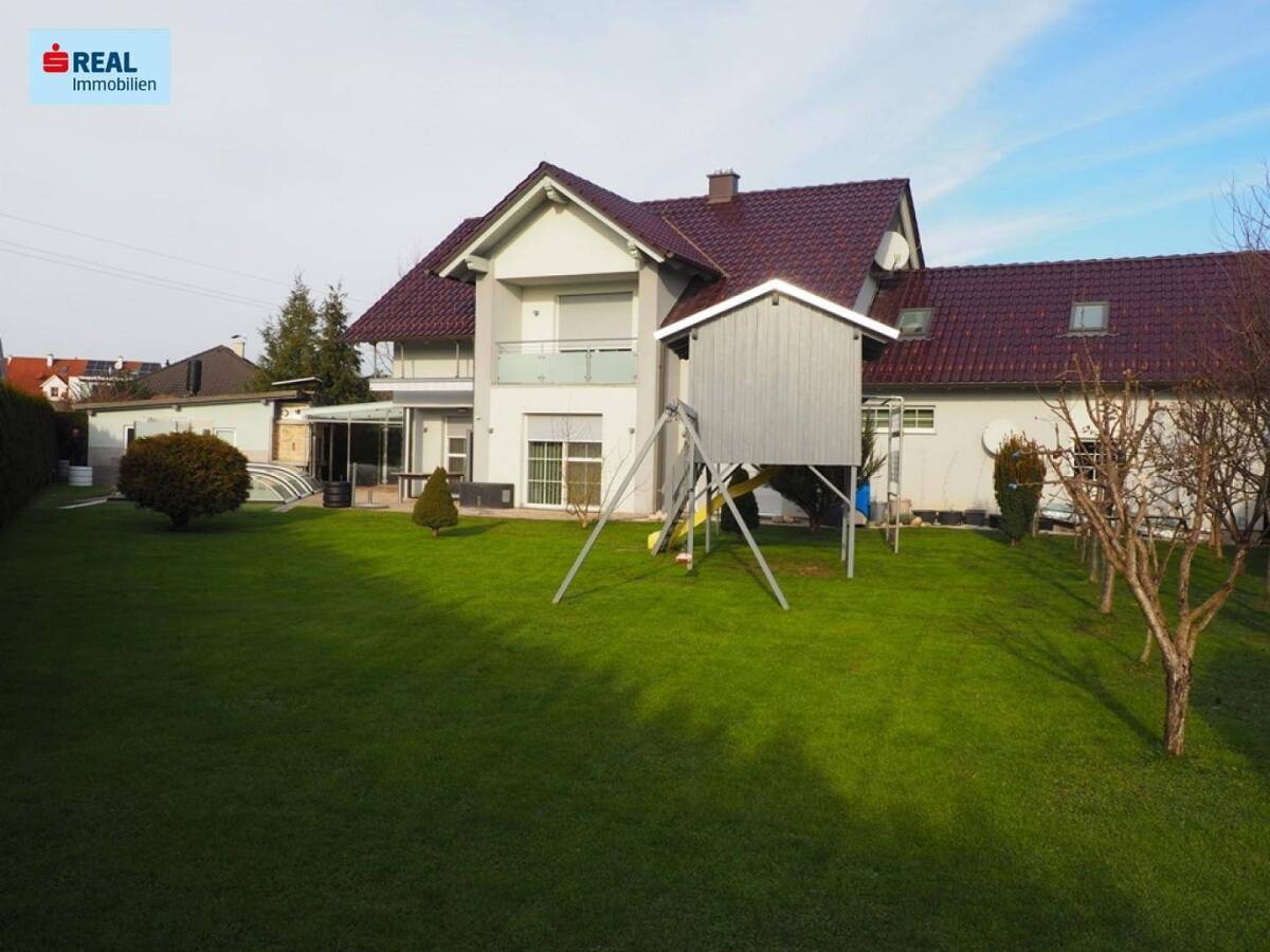 Dieses großzügige Haus befindet sich in Steyr, Nahe dem Autohaus Lietz. Zum Einkaufszentrum HEY! Steyr sind es ca. 2 km.Die Wohnfläche von ca. 217,53 m² teilt sich auf 2 Ebenen auf. Von der Doppelgarage gelangt man direkt in den großzügigen Wohnbereich.Erdgeschoss ca. 92,84 m²: • Windfang • Abstellraum • Technikraum • WC • Bad • Küche • Ess-/ Wohnzimmer mit Ausgang zur Terrasse • ZimmerDachgeschoss - ca. 124,69 m²: • Vorraum • Diele • Abstellraum • WC • Bad • 2 Zimmer mit Ausgang zum Balkon • Schlafzimmer mit Ausgang zur Loggia • ein weiteres Zimmer • der Dachbodenraum oberhalb der Garage wurde als Wohnraum ausgebaut - Büro mit ca. 35,40 m²Weitere Details: • Staubsaugeranlage • elektrische Rollos und Insektenschutz • Heizung: Erdwärme, Flächenkollektoren • überdachte Terrasse • beheizbarer Pool mit Gegenstromanlage, Überdachung, Überlauf, Heizung, Beleuchtung, Massagedüsen, automatische Dosierungsanlage für ph- und Chlorregulierung • eigener Brunnen (zusätzlich an das Ortswasser angeschlossen)Das ca. 1.100 m² große Grundstück wurde zur Gänze eingefriedet und ist vollkommen uneinsehbar. Hier befindet sich der Pool, ein Gartenhaus mit Außendusche, Grillstation und Pizzaofen, ein Kinderspielplatz und diverse Sträucher und Obstbäume. Der Rasen wird mit einem Mähroboter gemäht und mit einer automatischen Bewässerungsanlage gegossen.