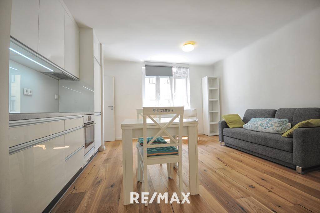 Hierbei handelt es sich um eine möblierte Wohnung im 3. Liftstock eines Neubaus. Sie ist vor 4 Jahren komplett saniert worden und befindet sich in bestem Zustand. Da dieses Schmuckstück komplett nach Süd-West ausgerichtet ist, ist sie sehr hell und sonnig. Ausstattung: + Komplett möbliert + Modernes Bad mit Dusche und Waschmaschine + Komplette Einbauküche + Außen Jalousien Weiters gibt es einen 5m² großen Keller mit einem Fenster. Verkehrsanbindungen: Straßenbahnen 1, 18 und 62.Angaben gemäß gesetzlichem Erfordernis: Miete € 522,33 Betriebskosten € 67,06 zzgl 10% USt. Umsatzsteuer € 6,71 ------------------------------------------------------------------ Gesamtbetrag € 596,1 Überlegen Sie den Verkauf Ihrer Wohnung, Ihres Grundstücks oder Ihres Hauses bzw. kennen Sie jemanden der eine Immobilie verkaufen möchte? Die Beratung ist unverbindlich und die Wertermittlung kostenlos! Wir bitten um Verständnis, dass auf Grund der Nachweispflicht gegenüber dem Eigentümer nur Anfragen mit vollständigen Kontaktdaten (Name, Adresse, Tel., Email) beantwortet werden können. Ordnungsgemäß verweisen wir auf unsere Funktion als Doppelmakler. Es gelten die Allgemeinen Bestimmungen des Maklergesetzes -> für Details siehe Nebenkostenübersicht. Für weitere Fragen bzw. zur Vereinbarung eines Besichtigungstermins steht Ihnen Stefan Besic unter 069915115108 bzw. sb@remax-4you.at zur Verfügung.