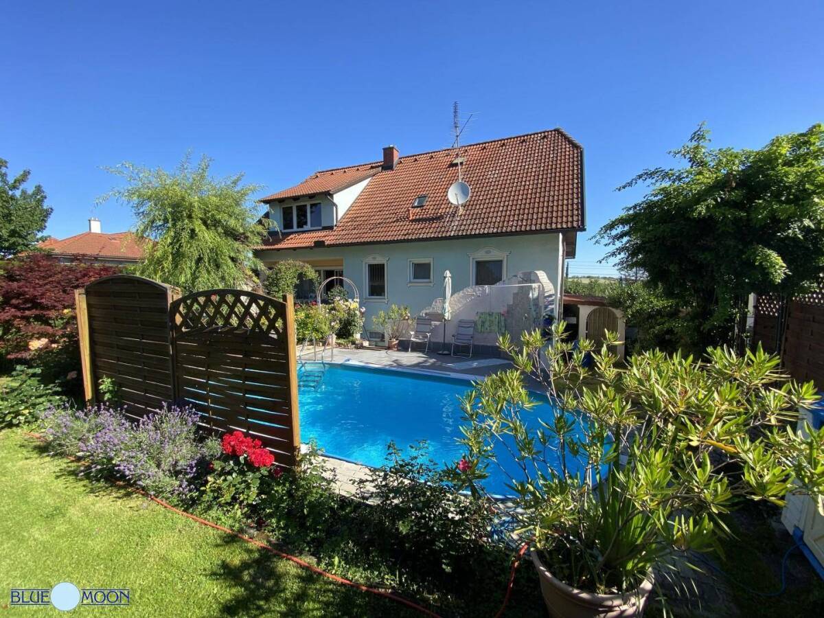 3721 Limberg, Nähe Maissau, Eggenburg, Ravelsbach, Ziersdorf, Etzmannsdorf Einfamilienhaus mit Garten, Terrasse, Pool, Biotop, Carport, GartenhausBaujahr: ~ 1989 und 1993 DGGrundstücksfläche: ~ 648m² Wohnfläche: ~ 183m² zuzüglich 93m² Kellerebene mit ebenerdigen Zugang! Gebäudefläche: EG ~ 92m², OG ~ 91m², Keller ~ 93 + Terrasse ~ 58m² Übernahme: Nach Vereinbarung ca. 2 bis 4 Monate nach KaufvertragsunterzeichnungRäumlichkeiten: 6 Zimmer, 3 WC, 2 Badezimmer + NebenräumeEG: ~ 92m² Vorraum 9,5m², Bad + WC 5,6m², Wohnesszimmer 30m², Küche 7,3m², 2 Zimmer mit 15m² + 18m²OG: ~ 91m² zwei Zimmer mit ~ 15,91m², Zimmer ~ 42,13m², Bad ~ 9m², WC, Galerie ~ 14m²Keller: ~ 93m² Vorraum 13m², Raum 16m², Raum 18m², Raum 14m², Lager 9m², Heizraum 7m², Raum 3,4m²Beschreibung: ………… mein Gartenparadies mit Terrasse, Pool, Biotop und noch viel mehr!Dieses einzigartige, perfekte und gemütliche Eigenheim befindet sich im schönen Ort Limberg, Nahe Maissau, Eggenburg, Ravelsbach, Ziersdorf und Etzmannsdorf. Die Liegenschaft bietet folgendes: herrliche Grünruhelage, große sonnige Terrasse mit Poolzugang, romantische Gartenlandschaft, Biotop, Swimmingpool, Gartenhaus und ein Carport mit Zusatzstellplatz. Die geräumige Einbauküche mit Geräten und Gasherd im großen offenen Wohnesszimmer bleibt bestehen und ist im Kaufpreis inkludiert. Die Bäder, Toiletten sind im Erdgeschoß und im Dachgeschoß vorhanden und vollwertig ausgestattet. Ein Bad und die Toilette im Obergeschoß benötigt noch eine Fliesenfertigstellung, ist aber installiert und Gebrauchs-Funktionstüchtig. Die Bauweise ist Massiv (38 Lekaton Steinen), Fassaden Wärmeschutzdämmung mit 10 cm, Ziegeldach mit vier Gaupen, die Kellerebene ist Ebenerdig vom Straßeneingang zu begehen. Im Obergeschoß befindest sich eine Galerie, die noch zusätzlich viel Stauraum oder Platz für ein kleines Hobbyzimmer bietet. Heizung: HOVAL Fußbodenheizung mit zusätzlichen Wandheizkörpern, kann auf Feste Brennstoffe umgestellt werden. Innentüren: braune Holztüren, Holztreppe: zur ersten Ebenen und zum Obergeschoß. Viel frische Luft und Licht strömt durch weiße PVC Fenster. Der Hauseingang ist Nordseitig und der Gartenseitige Teil mit Pool und Biotop ist südseitig orientiert. Parkmöglichkeiten vor dem Haus gibt es ausreichend, am Grundstück ist Platz für ca. zwei Pkw´s, Carport überdacht. Es sind geringe Fertigstellungs und Auffrischungsarbeiten am Haus notwendig wie z.B. Verfliesung vom Bad und WC im Obergeschoß, Zaun Straßenseitig und eventuell ein Innenwandverputz von Kellerräumen.Infrastruktur: Bahnhof in nur wenigen Fußminuten erreichbar (Zugfahrt ca. 45min. nach Wien Franz Josefs Bahnhof), Supermärkte in Maissau ca. 3 Fahrminuten, weitere Geschäfte in Ravelsbach, Eggenburg, Ziersdorf in ca. 10 Fahrminuten erreichbar. Ausflüge z.B. Amethyst Welt Maissau, Schule, Kindergarten, in den Umliegenden Orten vorhanden.Es bieten sich nur sehr wenige Chancen im Leben, diese sollten sie ergreifen, sie werden dadurch viel Lebensfreude erlangen!Kaufpreis: € 339.000,-- lastenfrei und ausbezahltBetriebskosten: ~ € 292,-- /Quartal, inkl. Gemeindegrundsteuer, Wasser, Kanal Energieausweis: in Vorbereitung HWB 97,8 kWh/m²a fGEE 1,48 Erfolgshonorar: 3 % des Kaufpreises zuzüglich 20 % Mwst.Für nähere Informationen sowie die Vereinbarung von Besichtigungsterminen stehen wir selbstverständlich gerne unter 01/ 218 33 00 zu Ihrer Verfügung. Alles über Firmenphilosophie und Arbeitsweise von BLUE MOON Immobilien erfahren Sie auf unserer Homepagewww.bluemoon-immobilien.atInfrastruktur / EntfernungenGesundheit Apotheke <4.750m Arzt <4.750m Klinik <7.000m Kinder & Schulen Kindergarten <1.750m Schule <3.750m Nahversorgung Supermarkt <4.750m Bäckerei <3.500m Sonstige Bank <2.250m Geldautomat <3.250m Polizei <4.500m Post <4.750m Verkehr Bus <250m Bahnhof <250m Angaben Entfernung Luftlinie / Quelle: OpenStreetMap