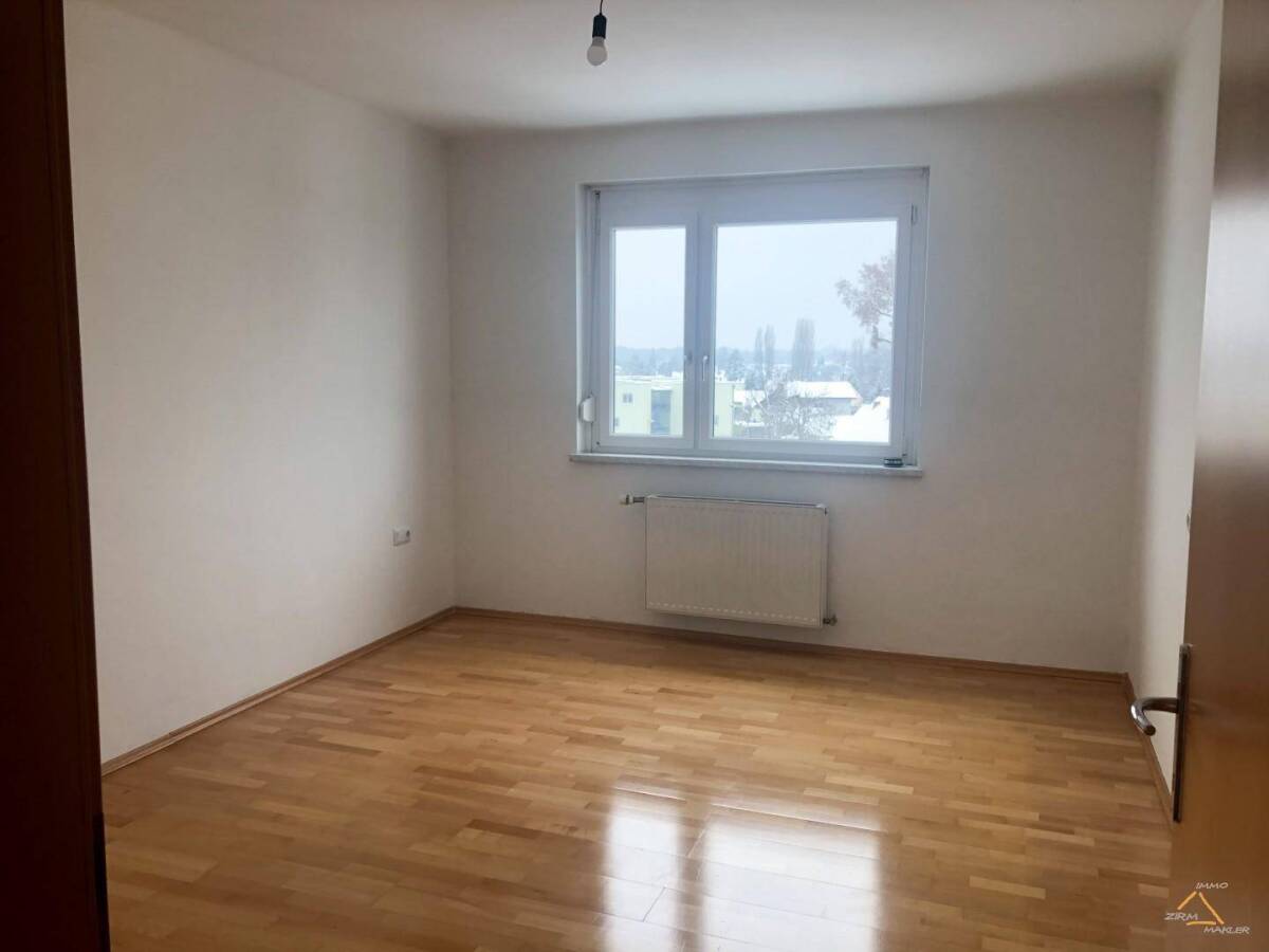Vermietet wird eine helle 3 Zimmer Wohnung mit sehr guter Raumaufteilung und schöner Ausstattung. Das Mietobjekt ist wenige Fuß-Minuten vom Magna-Werk entfernt.Im 3. Stock des Hauses (kein Lift!) gelangt man über einen Vorraum mit Garderobe in das Wohnzimmer, das Bad sowie in einen kleinen Abstellraum, in dem die Heizung aber auch der Waschmaschinen-Anschluss untergebracht ist. Direkt an das ca 20m2 große Wohnzimmer mit Zugang zum West-Balkon ist die Küche anschlossen. Diese verfügt über sehr viel Stauraum - nicht nur in den Schränken, sondern auch in der angrenzenden Speis. Neben Spülmaschine, Herd mit Backrohr u. Cerankochfeld ist ein großer Kühlschrank mit Tiefkühleinheit vorhanden. Angrenzend an das Wohnzimmer befindet sich das Schlafzimmer, sowie ein weiteres (Büro-/Kinder-)Zimmer.Das Bad (mit Fenster!) verfügt über ein Waschbecken mit Ober-/Unterschrank, WC sowie eine kleine Badewanne mit Duschwand.Zur Wohnung gehört ein geräumiges Kellerabteil sowie ein Abstellplatz vor dem Haus.Heizung: die Wohnung ist mit einer Elektro-Etagen-Heizung ausgestattet, die über eine Steuerung im Wohnzimmer programmiert werden kann. Je nach Wärmebedürfnis bzw. Verbrauch ist mit 40-45 EUR pm an Heizkosten zu rechnen Warmwasseraufbereitung über Boiler im AbstellraumSonstiges:Kunststofffenster mit Mehrfachverglasung u. AußenjalousieVerkabelung für Surround Anlage im WohnzimmerSat AnlageInfrastruktur / EntfernungenGesundheit Arzt <275m Apotheke <300m Klinik <5.400m Krankenhaus <4.300m Kinder & Schulen Schule <375m Kindergarten <500m Universität <4.025m Höhere Schule <4.950m Nahversorgung Supermarkt <775m Bäckerei <350m Einkaufszentrum <1.750m Sonstige Bank <150m Geldautomat <150m Post <2.000m Polizei <2.025m Verkehr Bus <100m Straßenbahn <2.100m Autobahnanschluss <1.075m Bahnhof <2.050m Flughafen <4.500m Angaben Entfernung Luftlinie / Quelle: OpenStreetMap