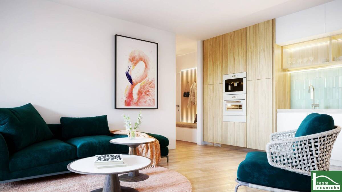 Diese helle 2-Zimmer Dachgeschosswohnung mit einer Wohnfläche von ca. 49 m² und einer 12m² Terrasse/Loggia befindet sich im 3.Liftstock eines Neubau-Hauses in der Breitenfurterstraße, nahe dem Schloss Hetzendorf/Bahnhof Meidling. Wunderschöner Erstbezug ab 01.05.2021 bezugsfertig und wartet auf seine neuen Mieter.Küche:Die moderne Küche wurde ebenso in hellen Farben gehalten und verfügt über sämtliche Geräte der Marke Siemens, die ein ambitionierter Hobbykoch zur Realisierung seiner Kochkünste benötigt, von einem Kühlschrank mit Gefrierfach, über einen Herd, einen Backofen sowie einer Spüle bis hin zu einem Geschirrspüler und Dunstabzug, ist alles vorhandenWohnung Top 18:Die 2-Zimmer-Wohnung mit knapp 49 m2 Wohnfläche + 12m2 Terrasse/Loggia und gliedert sich in folgende tolle Raumaufteilung:Vorraumbereich (8,86qm)separate Toilette mit Handwaschbecken (1,66qm)Badezimmer mit Badewanne, Handwaschbecken und Waschmaschinenanschluss (5,14qm)geräumige Wohnküche inkl. vollmöblierter Küche(21,35qm)Schlafzimmer (11,66qm)Terrasse (12,51qm)Ausstattungsstandard:Bei der Realisierung des Neubaus wird großer Wert auf eine hochwertige Ausstattung sowie langlebige Materialien gelegt:Vollwärmeschutzfassade (geringer Heizwärmebedarf = geringe Heizkosten)LiftKühlung über Luft-Wärme-PumpeFussbodenheizung über Luft-Wärme-Pumpe3-fach isolierverglaste Holz-/Alu-FensterSonnenschutz mit Außenraffstores (nur wo bauphysikalisch erforderlich)Parkettboden Weitzergroßformatige Fliesen (in den Nassbereichen)Innentüren weiß Sicherheits-Wohnungseingangstüren hochwertige Sanitäreinrichtung - Fabrikat „Laufen“ , „Grohe" bzw.gleichwertiges)Kellerabteile mit SteckdoseFahrradabstell- und KinderwagenraumKostenDer Mietpreis für die Wohnung beläuft sich auf 750,-- Euro (inkl. BK und USt.).Die Wohnung kann ab 01.06.2021 bezogen werden und wird vorerst auf die befristete Dauer von 4 Jahren vermietet.Kaution: 3 MonatsmietenProvision: 2 Monatsmieten zzgl. 20% USt.MV Errichtung: 250 Euro zzgl. 20% USt. Bei dem angeführten Mietpreis handelt es sich um eine Kaltmiete, somit sind sämtliche Energiekosten wie Warmwasser-, Heiz- und Stromkosten nicht inkludiert.Infrastruktur:Die Lage zeichnet sich durch den perfekten Mix zwischen Stadt und Grünflächen aus. In kurzer Distanz erreicht man den Schlosspark Hetzendorf als auch den Schlosspark Schönbrunn, welche zu entspannten Spaziergängen einladen – ebenso steht einem der Liesingbach zum Entspannen zur Verfügung. Andererseits ist man durch die tolle Busanbindung zur Meidlinger Hauptstraße ideal an die Stadt angebunden.Durch die tolle öffentliche Verkehrsanbindung mit der Buslinie 62A erreicht man in kurzer Distanz folgende weitere Verkehrsmittel:Straßenbahnlinie 62Buslinie 16A, 64ABahnhof Hetzendorf (S1, S2, S3, S4)Bahnhof Meidling (U6, etliche Zugverbindungen)Somit ist man in weiterer Folge auch gut an das Wiener Stadtzentrum angebunden.EnergieausweisDer Heizwärmebedarf beträgt 38,58 kWh/m²a, welcher der Klasse B entspricht.Für Fragen bzw. Besichtigungen steht Ihnen Frau Solmaz Rabbani sehr gerne unter 0676 420 38 44 zur Verfügung."Leben braucht Raum" teamneunzehn.at Immobilienmanagement GmbH & Co KG www.teamneunzehn.atWir weisen ausdrücklich auf unser wirtschaftliches Naheverhältnis mit dem Abgeber/der Abgeberin hin! Irrtum und Änderungen vorbehalten! Die angeführten Bilder sind Visualisierungen. Abänderungen zur tatsächlichen Ausführung können resultieren. Die auf den Bildern ersichtlichen Einrichtungsgegenstände und Accessoires werden nicht mitverkauft.SuchkundenbetreuungWir wissen, dass die Suche nach der perfekten Immobilie manchmal eine etwas Längere sein kann. Durch unsere professionelle und persönliche Suchkundebetreuung gelangen Sie schneller und bequemer ans Ziel.Sorgenfrei vermieten – Rundum-Servicepakete für AnlegerSie möchten nach Erwerb der Immobilie mit der Vermietung sowie den Mietabrechnungen und eventuellen Fragen während des Mietverhältnisses nicht beschäftigt sein? Wir bieten verschiedene und maßgeschneiderte Konzepte rund um unser Dienstleistungsprogramm »sorgenfrei vermieten«.Finanzierungsservice – Ihre Wunschimmobilie optimal finanziertUm Ihnen bei der Finanzierung Ihrer neuen Wohnung Zeit und Geld zu sparen, stehen Ihnen unsere Finanzierungsprofis mit Rat und Tat zur Seite. Wir führen für Sie unverbindlich und kostenlos einen unabhängigen Vergleich der unterschiedlichen Kreditkonditionen durch und verhelfen Ihnen zum optimalen Angebot.Maßgefertigte Tischlerküchen zum fairen PreisVollkommen transparent mit Fingerspitzengefühl und individuell sorgen wir für die Verwirklichung der auf Ihre Immobilie und Wünsche zugeschnittenen Maßküchen- und Möbel, welche insbesondere durch attraktive Preise bei höchster Qualität punkten können.ERSTBEZUG - SCHÖNE 2 ZIMMER NEUBAUWOHNUNG MIT TERRASSE IN UBAHNNÄHEInfrastruktur / EntfernungenGesundheit Arzt <1.000m Apotheke <1.000m Krankenhaus <2.000m Klinik <3.000m Kinder & Schulen Schule <500m Kindergarten <1.000m Universität <3.500m Höhere Schule <3.500m Nahversorgung Supermarkt <1.000m Bäckerei <1.000m Einkaufszentrum <1.000m Sonstige Bank <1.000m Geldautomat <1.000m Post <1.000m Polizei <1.500m Verkehr Bus <500m Straßenbahn <1.000m U-Bahn <1.000m Bahnhof <1.500m Autobahnanschluss <1.000m Angaben Entfernung Luftlinie / Quelle: OpenStreetMap
