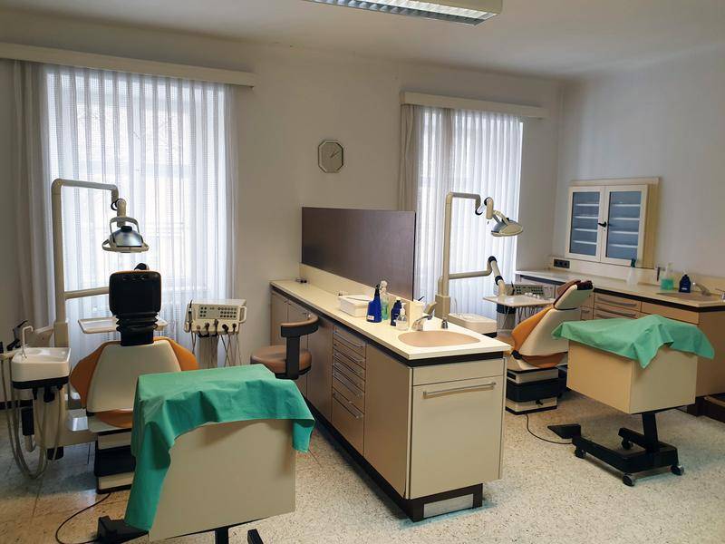 Sehr gut etablierte, klimatisierte, voll ausgestattete 192m² Zahnarztordination, Planstelle für Privat und alle Kassen in Zentrumslage. Im OG: Empfangs- Warteraum, 3 Behandlungs- Räume mit 4 Behandlungsstühlen, Röntgenraum, Techniklabor, Aufenthaltsraum, Lager, 2 Toiletten, 50m² Privatwohnung mit Bad/WC. Im TK: Lager, Kompressorraum, Nahwärme-ZH. 170m² Dachgeschoss ausbaubar. Großer Kundenstock, Privatparkplätze im Innenhof, ausreichend Kundenparkplätze. 360° Rundgang verfügbar unter https://www.neuimmo.com/objekt/15097.html