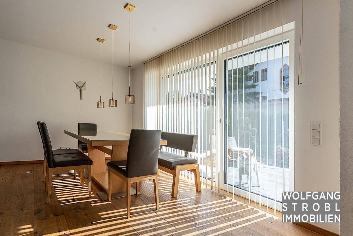 Eingebettet in einer kleinen Siedlung wurde im Jahr 2015 dieses luxuriös ausgestattete Designerhouse errichtet. Besonderes Augenmerk wurde bei der Gestaltung auf große Glasflächen gelegt, um dadurch einen fließenden Übergang zwischen Wohnen und dem Außenbereich zu ermöglichen. Dieser Gedanke des lichtdurchfluteten Wohnens zieht sich über alle Ebenen. Ein gelungenes Raumgefühl wurde durch die optische Trennung mit einem Kamin zwischen Wohnraum und Koch- Essbereich geschaffen. Die bestens ausgestattete Designerküche bietet viel Platz für kreative Köche die auch gerne Freunde dazu einlädt, dem Meister über die Schulter zu schauen und danach am großzügigen Esstisch Platz zu nehmen. Ein separates Zimmer mit kleinem Bad steht als Gästezimmer zur Verfügung. Die Naturstein Terrasse in Verbindung mit dem Garten wurde in einer Größe angelegt, um die Sonnenstunden genießen zu können jedoch nicht sehr viel Aufwand für die Pflege der Pflanzen zu betreiben.Über eine großzügige, tagesbelichtete Treppe betritt man das Obergeschoß. Die beiden Kinderzimmer sind freundlich und hell gestaltet und haben jeweils einen Balkonzugang. Das Hauptschlafzimmer mit integrierter Ankleide und dem wiederum modern und hell gestalteten Hauptbad rundet das Raumprogramm für Familien ab. Das gesamte Geschoß ist nach oben hin offen und über zusätzliche Dachflächenfenster belichtet.Über das Untergeschoß betritt man den hellen Vorraum mit ausreichendem Platz für Garderobe und diverse Staumöglichkeiten. Auf dieser Ebene befindet sich auch die Doppelgarage, der Hauswirtschaftraum, die Haustechnik und eine kleine Besuchereinheit mit Duschbad. Vor dem Haus finden ca. 4-5 PKW Platz.Infrastruktur / EntfernungenGesundheit Arzt <2.500m Apotheke <2.500m Krankenhaus <9.500m Klinik <6.000m Kinder & Schulen Schule <500m Kindergarten <500m Universität <9.000m Nahversorgung Supermarkt <2.000m Bäckerei <3.000m Einkaufszentrum <5.500m Sonstige Bank <500m Geldautomat <3.000m Post <2.500m Polizei <3.000m Verkehr Bus <500m Autobahnanschluss <4.500m Bahnhof <7.000m Angaben Entfernung Luftlinie / Quelle: OpenStreetMap