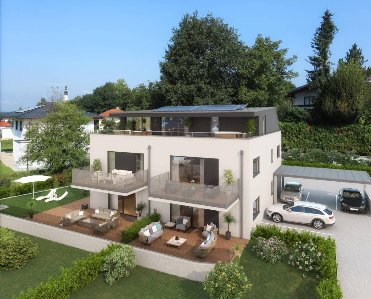 Die Architektur der Anlage steht für moderne Lebensqualität mit hohem ästhetischen Anspruch. Klare Linien, große Glasfronten, die schlichte Farbgebung und eine elegante Fassadengestaltung ergänzen sich zu einem zeitlos-modernen Erscheinungsbild. Exklusive 108 m2 Wohnfläche und zusätzliche 42 m2 Dachterrasse umfasst dieses 4-Zimmer-Penthouse, das keine Wünsche offen lässt. Der originelle Grundriss und das durchdachte Raumkonzept zeigen sich schon im großzügigen Wohn-Essbereich, der mit lichtdurchfluteten 44 m2 das absolute Herzstück der Immobilie ist und viele Gestaltungsmöglichkeiten zulässt. Von hier aus gelangen Sie auf die traumhafte Dachterrasse, die nach Süden ausgerichtet wurde und eine fantastische Aussicht in die Salzburger Bergwelt ermöglicht. Die Terrasse ist mit 42 m2 vielseitig nutzbar – egal ob die gemütliche Lounge für laue Sommerabende, ein Hochbeet, um eigenes Gemüse anzubauen, die Yoga-Matte mit einzigartigem Ausblick auszurollen oder der Whirlpool für entspannte Stunden – hier findet jede Aktivität ausreichend Platz. Der offene Küchenbereich eignet sich perfekt für eine attraktive und trendige Insellösung und fügt sich so harmonisch in den Essbereich ein, sodass einem gemütlichen Abend mit Familie & Freunden nichts im Wege steht. Der Master-Bedroom ist mit einer modernen Glasfront und einem praktischen Ankleideraum en suite ausgestattet. Zwei weitere Zimmer können als Kinder-/Gästezimmer oder auch als Office genützt werden. Das Badezimmer verfügt über eine barrierefreie Dusche und eine Badewanne, aus der Sie einen herrlichen Blick in die Berge genießen können. Zusätzliche Staufläche, sowie Platz für Ihre Fahrräder finden Sie im Untergeschoß. 2 Stellplätze sind dem Penthouse zugeordnet und nicht im Preis inbegriffen. Das Objekt wird provisionsfrei direkt von den Bauherren angeboten.