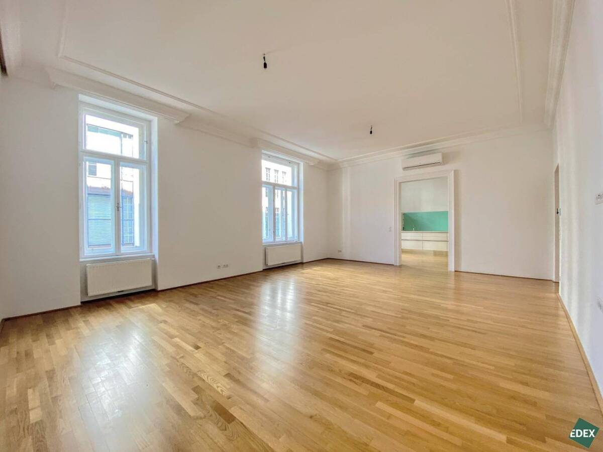 HighlightsDirekt in der InnenstadtAusgezeichnete InfrastrukturOptimale RaumaufteilungIdeale AnbindungKlimatisiertObjektbeschreibungDie ca. 177,14 m² große, wunderschöne und helle Liegenschaft befindet sich direkt in der Wiener Innenstadt, ist nur wenige Minuten vom Stephansplatz entfernt und bietet ein perfektes Wohnerlebnis. Die Wohnung liegt im 2. Liftstock und verfügt über 4 Zimmer, eine mit Markengeräten ausgestattete Wohnküche, einen großzügigen Vorraum, ein Badezimmer mit Badewanne und Doppelwaschbecken, ein Badezimmer mit Dusche und WC sowie ein separates WC. Die Wohnräume sind mit Parkettboden und die Nassräume mit Fliesen ausgestattet. Die Wohneinheit ist optimal an die öffentlichen Verkehrsmittel angebunden, ist umgeben von einer Vielzahl an Einkaufsmöglichkeiten und Restaurants und lässt auch sonst keinerlei Wünsche offen.Die Fläche ist ab sofort verfügbar. Es wird ein auf sieben Jahre befristeter Mietvertrag abgeschlossen.AusstattungOffene KücheHochwertiger Parkettboden und FliesenbodenDusche und BadewanneKlimaanlagePersonenaufzug KellerabteilVerkehrsanbindung & InfrastrukturDie Umgebung bietet eine optimale Infrastruktur. In wenigen Gehminuten erreicht man die U1 und U3-Station Stephansplatz, die U4-Stationen Schwedenplatz und Stadtpark , die Straßenbahnlinien 1, 2, 62, 71, D und O sowie die Buslinien 2A und 74A. Außerdem fahren am nahe gelegenen Bahnhof Wien Mitte die S-Bahnen S1, S2, S3, S4, S7, S80 und verschiedene Regionalzüge.In unmittelbarer Umgebung der Liegenschaft befinden sich die Kärntnerstraße, der Stephansplatz sowie der Karlsplatz, wodurch die Wohnung über eine hervorragende Anbindung verfügt. Supermärkte, zahlreiche gute Restaurants und Cafés können bequem zu Fuß erreicht werden. Die Wiener Innenstadt lädt mit zahlreichen Geschäften zum entspannten Einkaufsbummel ein.Der nahe gelegene Stadtpark, der Resselpark sowie der Burggarten laden zu ausgedehnten Spaziergängen ein und sind fußläufig zu erreichen.Infrastruktur / EntfernungenGesundheit Arzt <500m Apotheke <250m Krankenhaus <1.250m Klinik <1.000m Kinder & Schulen Schule <250m Kindergarten <1.000m Universität <500m Höhere Schule <1.500m Nahversorgung Supermarkt <250m Bäckerei <250m Einkaufszentrum <500m Sonstige Bank <250m Geldautomat <500m Post <500m Polizei <500m Verkehr Bus <250m Straßenbahn <500m U-Bahn <250m Bahnhof <250m Autobahnanschluss <3.500m Angaben Entfernung Luftlinie / Quelle: OpenStreetMap