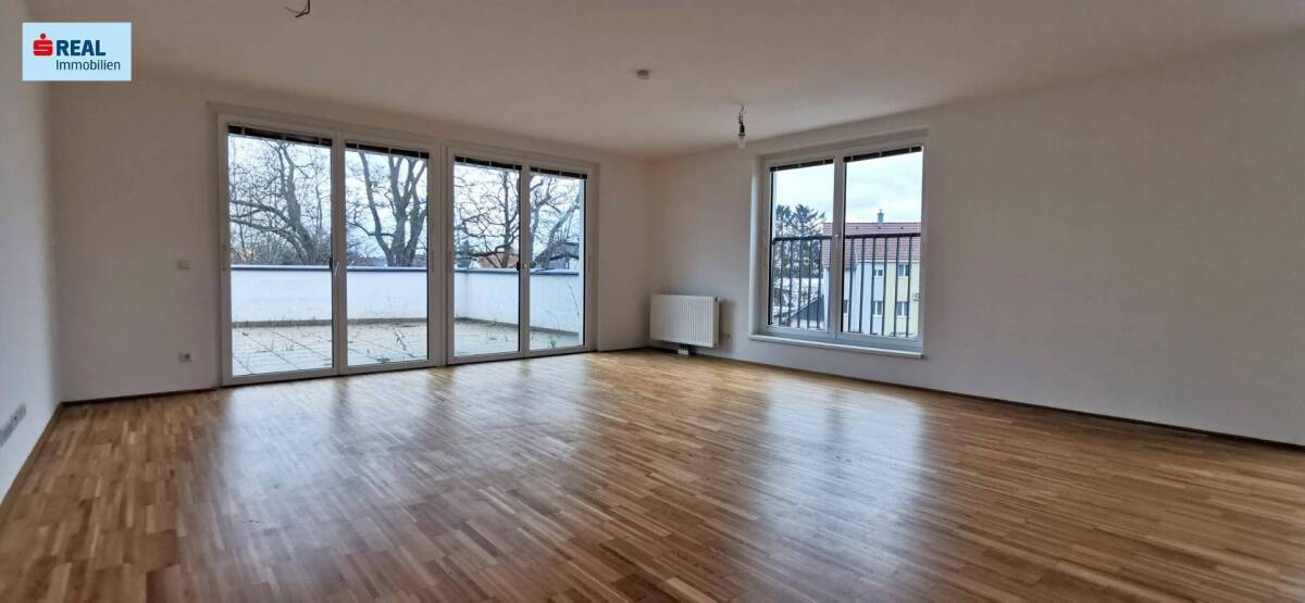 optimaler Grundriss - "fast" Erstbezug - Riesenterrasse - Weitblick - neue Küche - Lift - Parkett - hochwertige Ausstattung - Marchfeldkanal NäheZur Vermietung gelangt eine ca. 90 m² große Mietwohnung (zzgl. Freifläche) in der Gerasdorfer Straße.Das Apartment befindet sich im 1.Liftstock eines in 2017 erbauten Wohnhauses. Die Wohnfläche gliedert sich wie folgt auf:eine zentrale Dieleein großes Wohnzimmer mit offener Küchezwei getrennte Schlafzimmerein Wannenbad ein getrenntes WCDer Wohnung ist auch ein Kellerabteil zugeordnet.Lage: Optimale Lage für Naturliebhaber, die nicht auf die Vorteile der Großstadt verzichten wollen. Die Grünoase beim Marchfeldkanal befindet sich nur wenige Schritte entfernt und bietet Entspannung in der Homeoffice - Mittagspause oder nach einem anstrengenden Arbeitstag im Büro.Die Nahversorgung ist hervorragend: das Haus selbst verfügt über einen Supermarkt, ein weiterer liegt gleich daneben. Eine Apotheke, Pizzeria, ein Eissalon sowie ein Kindergarten, eine Volksschule oder ein Gymnasium sind auch fußläufig schnell erreichbar. Für Sportbegeisterte ist die Lage aufgrund der Nähe zum Sportklub (Fitness, Tennis, Golf) sowie der Naturnähe ausgezeichnet.Öffentliche Anbindung erfolgt über die Linie 32A. Mit dem Bus ist die U- und S-Bahn Station Leopoldau in ca. 10 Minuten erreichbar.Ausstattung: Das Gebäude stammt aus dem Jahr 2017 und erfüllt alle Ansprüche für ein modernes Leben.Hochwertiger Parkettboden, Küchen mit sämtlichen Geräten, Jalousien, Kunststofffenster mit doppelter Verglasung, uvm.Beheizt wird das Gebäude mittels einer Gaszentralheizung sowie Solarpaneele.Zusätzlich sorgt der eingebaute Lift für einen bequemen Zugang und ergänzt den hohen Wohnkomfort.Garagenplätze können separat angemietet werden.Resümee: Die große Freifläche und der schöne Blick werden Sie begeistern.Ideal für Singles, Paare oder Familien.Hier geht's zum 360° Rundgang: https://app.immoviewer.com/portal/tour/1146481?accessKey=590f Viele weitere Rundgänge, so wie alle neuen s REAL Immobilienangebote finden Sie auf www.sreal.at.Vereinbaren Sie jetzt einen Besichtigungstermin und überzeugen Sie sich über die Qualität dieser Immobilie!Provisionshinweis: 2 BMMKaution: 3 BMMWir weisen auf ein wirtschaftliches Naheverhältnis hin.Infrastruktur / EntfernungenGesundheit Arzt <1.200m Apotheke <1.150m Krankenhaus <1.100m Klinik <4.375m Kinder & Schulen Schule <325m Kindergarten <275m Universität <250m Höhere Schule <4.175m Nahversorgung Supermarkt <25m Bäckerei <1.175m Einkaufszentrum <2.475m Sonstige Bank <1.475m Geldautomat <1.475m Post <1.950m Polizei <1.225m Verkehr Bus <50m U-Bahn <1.800m Straßenbahn <1.075m Bahnhof <1.700m Autobahnanschluss <2.950m Angaben Entfernung Luftlinie / Quelle: OpenStreetMap