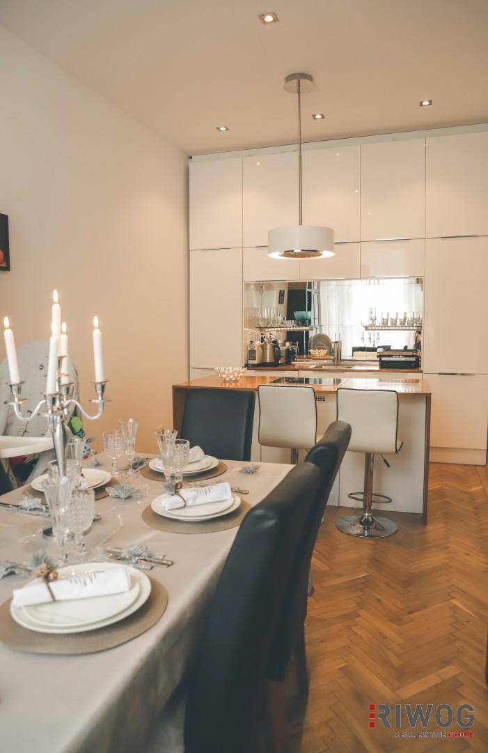 Die helle, sehr schön gestaltete Altbauwohnung befindet sich in bester Lage im 19. Bezirk.Die familientaugliche Wohnung besteht aus 4 Zimmer, Wohn-Essküche mit Erker, Bad, WC, Abstellraum, Vorraum. 2015 wurde die Wohnung generalüberholt und die Außenfenster saniert. Die Wohnung befindet sich im 2. Stockwerk ohne Lift.Bei der Renovierung (2015) wurden sämtlich Installationen wie Gas, Wasser, Strom und Abfluss vollständig erneuert. Bad und separates WC sind mit hochwertigen Mosaikfliesen (Trend- Bisazza) ausgestattet. Im Badezimmer befindet sich eine eingebaute Spiegelwand mit großem Waschbecken, Fußbodenheizung, Badewanne und extra Dusche mit Glasabtrennung.Die Räume können über den Vorraum begangen werden und sind teilweise über eine Runderschliessung miteinander verbunden. Im zentralen Wohnraum wurde ein gemütlicher eingebauter Heizkamin errichtet.Die Küche ist bereits mit einer raumhohen Küchenzeile und einer Kochinsel ausgestattet. Alle notwendigen Einbaugeräte sind vorhanden (große Kühl-Gefrierkombination, Ceranfeld, Backofen, Geschirrspüler).In der Wohnung sind alle originalen Stilelemente wie Flügeltüren und Fischgrätparkettboden vorhanden.Im Wohnungseigentum befindet sich zusätzlich ein ca. 9 m2 großes Kellerabteil (könnte als Weinkeller gestaltet).INFOS ZUR WOHNUNG:VorraumKüche mit einer Einbauküche und allen notwendigen Geräten4 ZimmerAbstellraumbegehbarer SchrankraumBad mit Fußbodenheizung, Badewanne, Dusche und DoppelwaschbeckenWC mit Fenster und WaschbeckenLAGE:Sowohl Einkaufsmöglichkeiten (Zielpunkt und Spar um die Ecke), als auch öffentliche Verkehrsmittel (unter anderem U6) sind in wenigen Gehminuten zu erreichen. Für Erholung und Spaziergänge steht der nahe Währinger Park und das schöne Villenviertel Döblings zur Verfügung. Rasch gelangt man in die beliebten Weinorte Grinzing und Neustift am Walde, oder zum Türkenschanzpark, in die Wiener Innenstadt kommt man in maximal 15 Minuten.KAUFPREIS:€ 659.000.--Wohnung: Betriebskosten und Rücklage: ca. € 370,00 inkl. USt.NEBENKOSTEN:Provision: (3% des Kaufpreises inkl. 20% USt.)Ich freue mich auf Ihre Anfrage und stehe Ihnen gerne jederzeit für einen Besichtigungstermin zur Verfügung.Besuchen Sie auch unsere Homepage WWW.RIWOG.AT mit zahlreichen aktuellen TOP-Objekten!Auf Grund gesetzlicher Bestimmungen im Fern-und Auswärtsgeschäfte-Gesetz (FAGG) sowie Verbraucherrechte-Richtlinie-Umsetzungsgesetz (VRUG) ist es uns leider nur mehr möglich schriftliche Anfrage mit vollständigen Kontaktangaben (Vor - und Nachname, Telefonnummer, Mailadresse ) zu bearbeiten.In Entsprechung des FAGG (Fern- und Auswärtsgeschäfte-Gesetz) und des VRUG (Verbraucherrechte-Richtlinien- Umsetzungsgesetz) ist es uns leider nur mehr möglich Termine nach Erhalt einer schriftlichen Anfrage mit vollständigen Kontaktangaben (Kontaktformular) zu vereinbaren. Dies gilt ebenso für die Herausgabe relevanter Informationen wie z.B. Lage. Sehr gerne sind wir auf diesem Weg bereit, uns um sämtliche Anliegen rasch und kompetent zu kümmern.Infrastruktur / EntfernungenGesundheit Arzt <500m Apotheke <500m Krankenhaus <1.500m Klinik <1.000m Kinder & Schulen Schule <500m Kindergarten <500m Universität <500m Höhere Schule <2.000m Nahversorgung Supermarkt <500m Bäckerei <500m Einkaufszentrum <2.500m Sonstige Bank <500m Geldautomat <500m Post <1.000m Polizei <500m Verkehr Bus <500m Straßenbahn <500m U-Bahn <500m Bahnhof <500m Autobahnanschluss <1.500m Angaben Entfernung Luftlinie / Quelle: OpenStreetMap