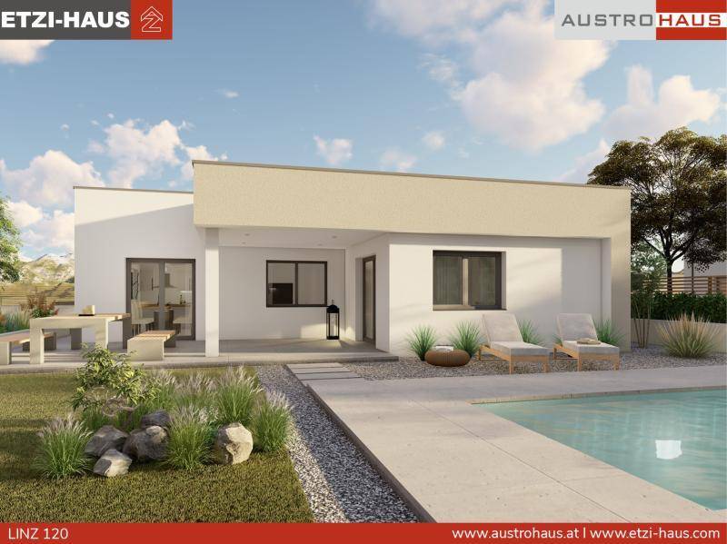Bungalow mit 120 m² IN HOF AM LEITHABERGE Hof ist eine wunderschöne, ländliche Gemeinde umgeben von Wiesen, Feldern und Wäldern. Die zentrale Lage von Hof zwischen Wien, Bruck an der Leitha und Eisenstadt macht den Wohnort auch für Pendler interessant. Die Nähe zum Neusiedlersee – bietet attraktive Freizeitmöglichkeiten. Der Fernblick bis nach Wien und über die Thermenregion bis hin zum Schneeberg lädt zum Entspannen ein. Die Grundstücke werden von uns voll aufgeschlossen übergeben und beinhalten die Wasserversorgung, Strom, Abwasserbeseitigung und Verkehrserschließung. Der Kauf eines Grundstückes ist an den Kauf eines AUSTROHAUSES oder ETZI-HAUSES gebunden, das Grundstück alleine kann nicht erworben werden! BEBAUUNGSVORSCHLAG - Linz 120 mit Flachdach Barrierefrei auf einer Ebene wohnen, und das zum leistbaren Preis? Diesen Traum erfüllt das Typenhaus Linz 120. Mit bodentiefen Fenstern im Wohnbereich und Elternschlafzimmer wird eine Wohlfühlatmosphäre zum Entspannen erzeugt. Drei Schlafzimmer sorgen für genügend Platz für die ganze Familie. PREISINFORMATION (AUSFÜHRUNG BELAGSFERTIG) TYPENHAUS Linz 120 INKLUSIVE GRUNDSTÜCK AB € 377.673,- - Wohnfläche 120 m² - Mit Flachdach - Grundstück 578 m² TOP AUSSTATTUNG - Wir bauen auf österreichische Produkte - Ziegelmassivbauweise - Außenwände mit 25 cm starken Planblockziegeln + 20cm VWS - Viessmann Heiztechnik (Luftwärmepumpe) inkl. Fußbodenheizung - INTERNORM Kunststoff-ALU-Fenster mit 3-fach Verglasung - Rollläden - 25 m² Rohbetonterrasse, 3 m² Eingangspodest - Betriebsfertige Elektroinstallation inkl. Hausverteiler - Hochwertige sanitäre Rohinstallation (Kalt-, Warm- und Abwasser) - Erdarbeiten und Kanalpaket enthalten - Optional erhältlich: Terrasse, Terrassenüberdachung, Pool, Gartenmauer, Carport und Garage - uvm. Nebenkostenübersicht - 3,5 % Grunderwerbsteuer (Haus mit Grund) - 1,1 % Eintragungsgebühr (Haus mit Grund) - 1,5 % Vertragserrichtungskosten - Anteilige Vermessungskosten idHv 880,00 Euro Anschlussgebühren - Kanalanschlussgebühr (Gemeinde Hof a.L.) - Wasseranschlussgebühr (Gemeinde Hof a.L.) - Verkehrsflächenbeitrag: 2.800,- (ÖBP) - Stromanschluss EVN AG: ca. € 3.500,- FAKTEN - 14 Grundstücke für Einfamilienhäuser - Grundstücksgrößen: 578 bis 750 m² - Traumhafte Naturlage - Vielfältige Freizeitangebote - Gute Infrastruktur PREISINFORMATION ZU DEN GRUNDSTÜCKEN Grundstück 1 - RESERVIERT 750 m² - € 116.250,- Grundstück 2 - VERKAUFT 671 m² - € 104.005,- Grundstück 3 671 m² - € 104.005,- Grundstück 4 671 m² - € 105.347,- Grundstück 5 671 m² - € 105.347,- Grundstück 6 671 m² - € 105.347,- Grundstück 7 671 m² - € 106.689,- Grundstück 8 671 m² - € 106.689,- Grundstück 13 735 m² - € 121.275,- Grundstück 16 618 m² - € 98.262,- Grundstück 17 605 m² - € 94.985,- Grundstück 18 599 m² - € 94.043,- Grundstück 20 585 m² - € 90.675,- Grundstück 21 578 m² - € 89.590,- IHRE ANSPRECHPARTNERIN: Petra Zlabinger Verkauf - Beratung Tel.: 0664 / 440 79 13 Email: p.zlabinger@etzi-haus.com Mit einer Anfrage sind Sie damit einverstanden, dass Ihre personenbezogenen Daten in der Etzenberger Holding GmbH (AUSTROHAUS, ETZI-HAUS) gespeichert, verarbeitet und benutzt werden um mit Ihnen in Kontakt zu treten. Die angegebenen Daten werden vertraulich behandelt. Alle Angaben ohne Gewähr. Druckfehler und Preisänderungen vorbehalten.