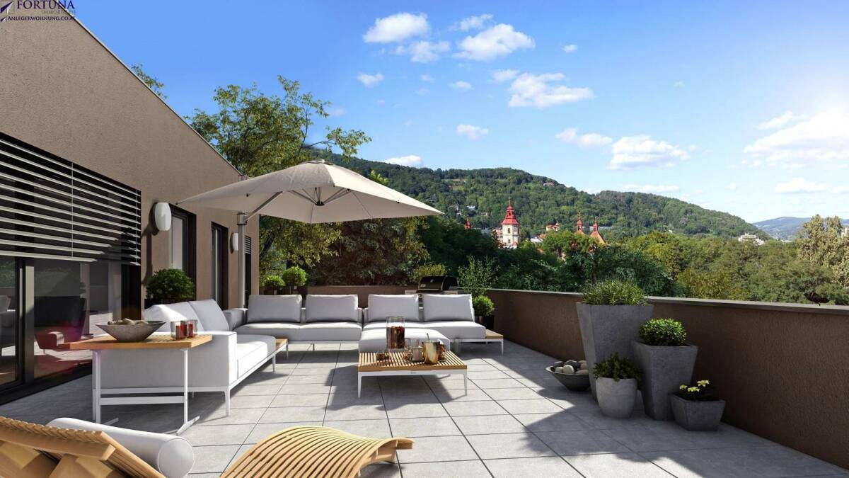 Genießen Sie den Panoramablick über Graz von der 84 m² großen Terrasse - modernste Ausstattung - höchste Lebensqualität!