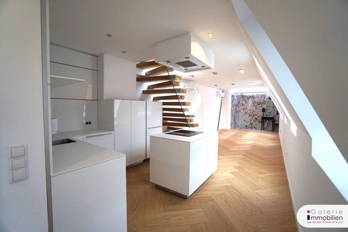 Dachterrassen-Apartment in revitalisiertem Biedermeierhaus - Städtisches Wohnen auf höchstem Niveau Detailbeschreibung Top 13 im 2019 fertig renovierten und liebevoll revitalisierten Fernolendt-Haus auf der Landstraßer Hauptstraße 74 verfügt über 47 m2 Wohnfläche und eine Terrasse mit 20 m2.Das luxuriöse City-Apartment erreicht man vom linken vorderen Teil des 1. Innenhofes aus sowohl über einen neu errichteten Lift als auch über ein separates Stiegenhaus. Der Lift bietet einen eigenen privaten Ausstieg innerhalb der Wohnung gleich links neben der Eingangstür. Die Designertür aus Sichtbeton und Edelstahl führt zunächst in einen hellen Gang über den man linker Hand das WC und danach einen Abstellraum betreten kann. Rechter Hand beginnt hier die durch das gesamte Apartment verlaufende Fensterfront mit sieben zum ruhigen Innenhof des Hauses ausgerichteten Fenstern. Licht und Ruhe sind also garantiert. Nach dem Eingangsbereich öffnet sich dem Betrachter das City-Apartment loftartig in seiner ganzen Länge und Schönheit.Linker Hand befindet sich die voll eingerichtete und überaus hochwertige Küche der Marke Bulthaup. Ausreichend Stauraum, modernste Geräte und Armaturen sowie ein separater Küchenblock mit Abluft inklusive edler Beleuchtung lassen bei der Bereitung kleinster und größter kulinarischen Köstlichkeiten keine Wünsche offen.Optisch vom eigentlichen Wohnraum leicht abgetrennt wird der Küchenbereich durch eine extravagante Treppenkonstruktion aus Holz, Metall und Glas, die zur Terrasse auf das 2. Dachgeschoss führt. Daran anschließend steht ausreichend Platz für die Einrichtung mit Wohn- und Schlafmobiliar zur Verfügung. Die freundliche Helligkeit des Raumes kann jederzeit durch die Außenbeschattung und Außenrollos an den hochwertigen Dachflächen-Fenstern der Marke VELUX in eine heimelige Atmosphäre verwandelt werden.Einen krönenden Abschluss findet das luxuriöse City-Apartment in dem nahezu über die gesamte Raumbreite reichenden Duschbereich. Beinahe unsichtbar verbergen sich hier Regenwalddusche und Armaturen in der marmorierten Wandverkleidung, die diesen Teil des Raumes wie ein Gemälde dominiert. Je nach Geschmack kann dieser Duschbereich als Blickfang offen gelassen oder durch einen Wandschrank zum privat separierten Badezimmer abgetrennt werden.Ausstattung Die Ausstattung des exklusiven Dach-Terrassen-Apartments kann durchwegs als luxuriös bezeichnet werden. Von der Designer-Eingangstür aus Sichtbeton und Edelstahl angefangen über den mit Produkten von Villeroy & Boch und HANSGROHE ausgestatteten Duschbereich und die Toilette (Dusch-WC von Geberit), die elektrisch beschattbaren Fenster der Marke VELUX bis hin zur Fußbodenheizung und dem Eichen-Parkettboden (Qualitätsparkett Bauwerk Formpark) strahlt hier jedes Detail komfortablen Luxus aus. Details dazu finden Sie in der separat verfügbaren Bau- & Ausstattungsbeschreibung zum Objekt.Infrastruktur Die Lage der Wohnung ist ausgezeichnet. Der Rochusmarkt, der Stadtpark, Geschäfte des täglichen Bedarfs, Cafés, Restaurants und öffentliche Verkehrsmittel (U3 Station Rochusgasse, Busse) befinden sich nahezu direkt vor der Haustür. Der Bahnhof Wien Mitte ist in 10 Gehminuten (800m) erreichbar. Hier stehen die Schnellverbindung CAT zum Flughafen ebenso leicht zugänglich zur Verfügung wie die U-Bahnlinien U4 und U3 sowie zahlreiche regionale Zug- und S-Bahnverbindungen.Das Fernolendt-Haus wurde einfühlsam revitalisiert; alle Details dazu finden Sie hier. Die Revitalisierung und der Dachgeschoßausbau wurden Ende 2019/Anfang 2020 fertiggestellt. Im Dachgeschoß steht auch eine wunderschöne Maisonette mit 213,54m² Wohnfläche und zwei Terrassen mit 41,34m² und 16,64m² zum Verkauf.Wir weisen darauf hin, dass die Firma Galerie Immobilien GmbH in einem wirtschaftlichen Naheverhältnis zum Abgeber steht. Unsere gesetzlichen Pflichten als Doppelmakler werden dadurch jedoch nicht beeinträchtigt.Die Errichtung des Kaufvertrages samt Treuhandschaft und die grundbücherliche Durchführung sind an RA Mag. Michael Gruner, 1070 Wien, Kirchengasse 19 gebunden.Für Fragen und Besichtigungswünsche steht Ihnen Frau Dr. Nilgün de Colle unter 0664 88 62 05 73 oder n.de_colle@galerie-immobilien.at gerne zur Verfügung.Bei Abschluss eines Kaufvertrages über die hier angebotene Immobilie zwischen Ihnen und dem Verkäufer ist von Ihnen als Käufer die gesetzliche Vermittlungsprovision gemäß Maklerverordnung zzgl. 20% Umsatzsteuer an uns zu entrichten. Alle Angaben wurden uns vom Verkäufer mitgeteilt, wir übernehmen für diese keinerlei Gewähr oder Haftung. Der Verkäufer wurde über die Pflichten gemäß Energieausweis-Vorlage-Gesetz 2012 aufgeklärt. Wir übernehmen keinerlei Gewähr oder Haftung für die tatsächliche Energieeffizienz des Gebäudes bzw. der Wohnung. Es gelten unsere Allgemeinen Geschäftsbedingungen. Gerichtsstand und Erfüllungsort ist Wien. Wir verweisen auf die Nebenkostenübersicht – welche die Belehrung über das Widerrufsrecht beinhalten – auf unserer Homepage.Datenschutzhinweis: Galerie Immobilien GmbH verarbeitet personenbezogene Daten nach den datenschutzrechtlichen Bestimmungen. Weitergehende Informationen finden Sie auf unserer Homepage unter www.galerie-immobilien.atInfrastruktur / EntfernungenGesundheit Arzt <500m Apotheke <500m Krankenhaus <1.000m Klinik <500m Kinder & Schulen Schule <500m Kindergarten <500m Universität <500m Höhere Schule <2.000m Nahversorgung Supermarkt <500m Bäckerei <500m Einkaufszentrum <500m Sonstige Bank <500m Geldautomat <500m Post <500m Polizei <1.000m Verkehr Bus <500m Straßenbahn <500m U-Bahn <500m Bahnhof <500m Autobahnanschluss <2.000m Angaben Entfernung Luftlinie / Quelle: OpenStreetMap