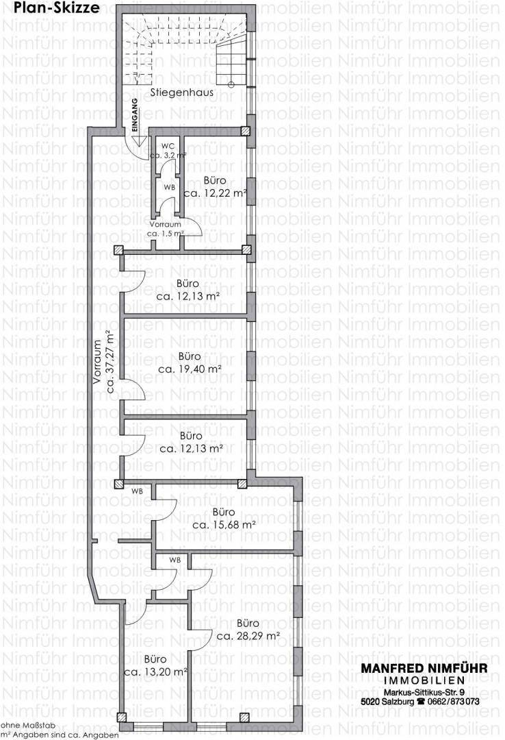 Büro in ParschDas Büro befindet sich in einer zentralen Lage in Parsch.Die Linzer Bundesstraße, der Autobahnanschluss Salzburg Nord, sowie die Salzburger Innenstadt sind schnell erreichbar.Infrastruktur:sehr gut;Das Einkaufszentrum ZIB (Zentrum im Berg), Supermärkte, Banken, Fitnessstudio, Apotheke, Trafik, Restaurants und Cafés sind fußläufig entfernt.Bushaltestellen sind in unmittelbarer Nähe.Das Büro befindet sich im 1.Stock.Es besteht aus einem zentralen Vorraum, 7 Räumen, WC und mehreren Waschbecken.Die Raumeinteilung kann auf die Bedürfnisse des Mieters angepasst werden. Bei Bedarf wird vom Vermieter auch eine weitere WC-Anlage eingebaut.11 Autoabstellplätze gehören zum Büro.Es handelt sich um eine sehr gute und ruhige Lage. Die Erreichbarkeit für Kunden als auch für Mitarbeiter ist ausgezeichnet.