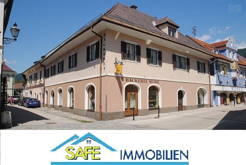 Friesach/St. Veit: wunderschönes Stadteckhaus mit drei Wohnungen und drei Geschäften im Zentrum