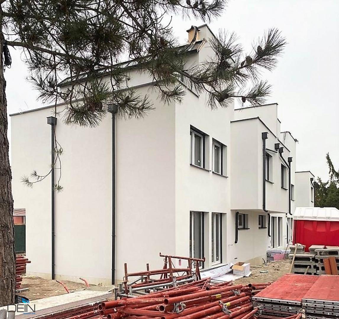 ++NEU++Zum Verkauf gelangen drei derzeit in Bau befindliche 5 Zimmer Reihenhäuser auf einer Bodenplatte mit ca. 117 m² Wohnnutzfläche zzgl. Freiflächen in einer ruhigen Seitengasse zur Esslinger Hauptstraße nahe dem Marchfeld Center.Raumaufteilung Haus 1:EG: Vorgarten, Vorraum, Technikraum, Bad mit Dusche und Toilette, Wohnküche, Terrasse/Eigengarten OG: Flur, drei Schlafzimmer, Bad mit Dusche und Toilette DG: Flur mit Zugang zur Dachterrasse, Masterbedroom (Bad mit Wanne und Toilette).Austattung:In den Wohn- und Schlafräumen werden hochwertige Eichenparkettböden verlegt. Die Nassräume werden mit qualitativen Keramikbelägen verfliest. Die Fußbodenheizung erfolgt mittels einer Luft-Wärmepumpe. Die Kunststofffenster werden mit integriertem Sonnenschutz ausgestattet. Jedem Haus wird ein PKW Stellplatz zugeordnet. Die Terrassen werden mit Pflastersteinen belegt.Im Garten wird ein Rollrasen verlegt sowie ein Wasseranschluss installiert.Infrastruktur:Die gegenständliche Wohnanlage befindet sich im 22. Wiener Gemeindebezirk nahe der Esslinger Hauptstraße. Geschäfte des täglichen Bedarfs stehen Ihnen im ca. 3 Autominuten entfernten Marchfeld Center zur Verfügung. Eine Volksschule sowie das BRG Simonsgasse sind ebenfalls rasch erreichbar.Die Haltestelle von den Autobuslinien 26A und 88A ist 2 Gehminuten vom Grundstück entfernt.verfügbare Häuser:Top 1: 5 Zimmer, ca. 117,51 m² WNFL, ca. 34,99 m² Eigengarten zzgl. 16,1 m² Vorgarten, zwei Terrassen (EG und DG), ein PKW-Stellplatz, Euro 485.000,- Top 2: VERKAUFT! Top 3: 5 Zimmer, ca. 117,60 m² WNFL, ca. 93,55 m² Eigengarten zzgl. 9,25 m² Vorgarten, zwei Terrassen (EG und DG), ein PKW-Stellplatz, Euro 495.000,-Fertigstellung: Frühling 2021 Energieausweis: HWB 36,6 Provision: 3 % vom Kaufpreis zzgl. 20 % USt Vertragserrichtung: Mag. Alexander Eppelein, 1,5 % vom Kaufpreis zzgl. 20 % USt + BarauslagenFür weitere Fragen steht Ihnen Herr Stjepan Babic unter 0664 610 98 15 oder per Mail an s.babic@deinimmobilien.at zur Verfügung.Bilder sind Symbolbilder!Der Ordnung halber möchten wir festhalten, dass bei Erwerb oder Anmietung eines von uns namhaft gemachten Objektes, eine Vermittlungshonorar in der jeweils ausgewiesenen Höhe in Rechnung gestellt wird. Die Provisionspflicht besteht auch dann, wenn Sie die Ihnen überlassenen Informationen an Dritte weitergeben. Für dieses Angebot gelten die Bestimmungen des Maklergesetzes idgF. BGB Nr. 262 und 297/1996 einschließlich des § 15 Maklergesetz als vereinbart. Die Informationen und Angaben beruhen auf Unterlagen des Abgebers und sind ohne Gewähr. Wir weisen auf ein wirtschaftliches Naheverhältnis zum Eigentümer hin. Es gelten unsere allgemeinen Geschäftsbedingungen. Irrtum vorbehalten.Infrastruktur / EntfernungenGesundheit Arzt <1.000m Apotheke <1.000m Klinik <9.000m Krankenhaus <6.000m Kinder & Schulen Schule <1.000m Kindergarten <1.500m Universität <1.500m Höhere Schule <8.500m Nahversorgung Supermarkt <1.000m Bäckerei <1.000m Einkaufszentrum <1.000m Sonstige Bank <1.000m Geldautomat <1.500m Post <1.500m Polizei <1.500m Verkehr Bus <500m U-Bahn <3.000m Straßenbahn <4.500m Bahnhof <3.000m Autobahnanschluss <7.000m Angaben Entfernung Luftlinie / Quelle: OpenStreetMap