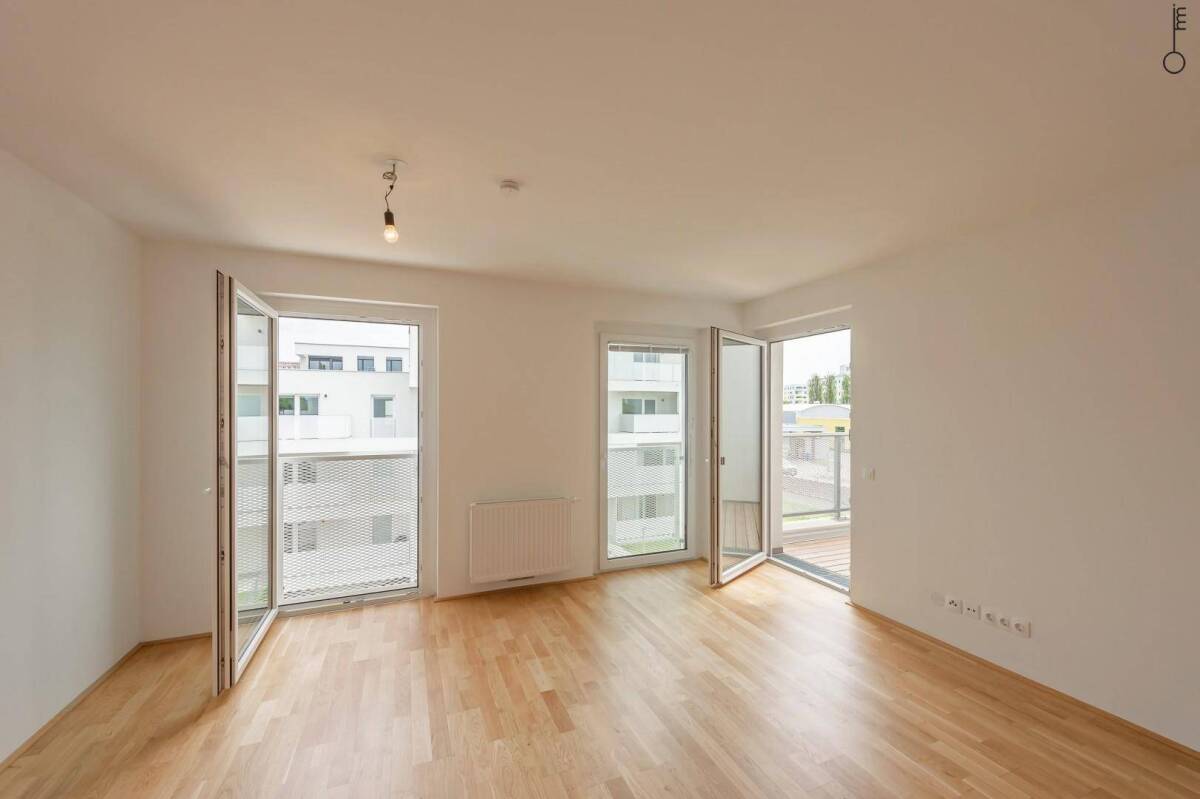 Die Mister Immo GmbH bietet Ihnen hier eine optimal aufgeteilte 2-Zimmerwohnung mit einem ca. 4 m² großen Ost-Balkon und einer guten Verkehrsanbindung in Wien-Floridsdorf zum Erwerb an. Räumlichkeiten: Über den Vorraum erreichen Sie sowohl den Abstellraum, das Badezimmer, welches über ein WC, eine Dusche, ein Handwaschbecken und einen Waschmaschinenanschluss verfügt, als auch den ca. 28 m² großen Wohn- und Essbereich, welcher Sie auf den ca. 4 m² großen Ost-Balkon führt. Des Weiteren gelangen Sie vom Wohn- und Essbereich in das ca. 12 m² große Schlafzimmer, über das Sie ebenfalls auf den sonnigen Balkon gelangen.Eckdaten:AufzugGrünblickKellerabteilAbstellraumParkettboden4 m² Ost-BalkonVollwärmeschutzNeubau-Erstbezug3-fach verglaste KunststofffensterWir bieten Ihnen einen corona-freundlichen Besichtigungstermin von Montag bis Sonntag flexibel nach Vereinbarung an.Der Verkaufspreis beträgt € 262.000,-. Es besteht die Möglichkeit, einen TG-Platz um € 24.500,- mitzuerwerben.Sie können mich täglich, gerne auch an Sonn- und Feiertagen, unter 0664 192 3885 erreichen. DIE NUMMER 1 IN ÖSTERREICH Der Geschäftsführer der Mister Immo GmbH, Sandro J. Stadelmann ist mit über 40.000 Abonnenten in den sozialen Medien die NUMMER 1 der Immobilienmakler in Österreich und zählt laut KRONEN ZEITUNG zu einem der erfolgreichsten in der Branche.Die Mister Immo GmbH wurde vom SACHWERT Magazin als Immobilienagentur mit einer TOP SERVICE QUALITÄT ausgezeichnet.Allgemein:In Entsprechung des FAGG (Fern- und Auswärtsgeschäfte-Gesetz) und des VRUG (Verbraucherrechte-Richtlinie-Umsetzungsgesetz) ist es uns leider nur mehr möglich Termine nach Erhalt einer schriftlichen Anfrage mit vollständigen Kontaktangaben (Kontaktformular) zu vereinbaren, dies gilt ebenso für die Herausgabe relevanter Informationen wie z.B. der Lage. Sehr gerne sind wir auf diesem Wege bereit, uns um sämtliche Anliegen rasch und kompetent zu kümmern.Infrastruktur / EntfernungenGesundheit Arzt <500m Apotheke <1.000m Klinik <3.000m Krankenhaus <1.500m Kinder & Schulen Schule <1.000m Kindergarten <500m Universität <3.000m Höhere Schule <2.000m Nahversorgung Supermarkt <1.000m Bäckerei <1.000m Einkaufszentrum <1.000m Sonstige Bank <1.000m Geldautomat <1.000m Post <1.000m Polizei <1.000m Verkehr Bus <500m Straßenbahn <1.000m U-Bahn <2.500m Bahnhof <500m Autobahnanschluss <1.000m Angaben Entfernung Luftlinie / Quelle: OpenStreetMap