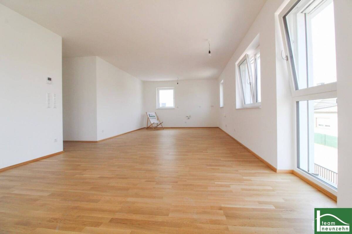 RUHELAGE! Hochwertige Ausstattung - ZIEGELMASSIV BAUWEISE! Bereits fertiggestelltIn grüner Lage des 22.Bezirks in Essling wird dieser hochwertige Neubau mit 22 Erstbezugs-Wohnungen, welche auf zwei Gebäudekörper aufgeteilt sind realisiert.Die Ubahnstation U2 Aspernstraße ist mit der Buslinie 26A in wenigen Stationen zu erreichen. Das Marchfeldcenter ist ebenso in unmittelbarer Nähe gelegen in welchem Sie zahlreiche Einkaufsmöglichkeiten vorfinden. Ein Spar Supermarkt ist sozusagen nur wenige Schritte von dem Projekt entfernt.Derzeit sind noch 2 von 22 Wohneinheiten zu erwerben.In Summe werden 22 Wohnungen von ca. 60m2 – 103m2 auf 2 Regelgeschosse sowie einem Dachgeschoss aufgeteilt und schlüsselfertig errichtet. Alle verfügbaren Einheiten verfügen über eine Freifläche (Balkon, Terrasse, Garten). Weiters werden PKW-Stellplätze in der hauseigenen Tiefgarage realisiert ( ein Stellplatz gibt es auch im freien).Die Fertigstellung ist bereits erfolgt.Das Projekt zeichnet sich vorallem durch folgende Attribute aus:• ) Erstbezugs-Neubau• ) hochwertige Ausstattung• ) tolle Lage zwischen der Seestadt und dem Nationalpark Lobau / U-Bahn „U2“ Aspernstraße• ) Freifläche (Balkon, Terrasse, Garten, )• ) PKW Abstellplätze in der hauseigenen Tiefgarage-) Leerverrohrungen für Elektrotankstelle-) Gärten werden hummusiert-) jede Wohneinheit verfügt über einen KellerabteilWohnung Top3:Die 4-Zimmer-Wohnung mit knapp 99,81m2 Wohnfläche sowie ca. 9m2 Balkon liegt im 1.Obergeschoss und gliedert sich in folgende tolle Raumaufteilung:Vorraum ca. 15m2separate Toilette ca. 2,30m2Badezimmer mit Badewanne, Handwaschbecken und Waschmaschinenanschluss ca. 7,45m2Wohnküche - ca. 38m2 - mit Balkonzugang1.Schlafzimmer ca. 10,50m22.Schlafzimmer ca. 14,70m23. Schlafzimmer ca. 12m2Balkon 8,93m2Zudem ist ein Stellplatz sowie ein Kellerabteil ebenfalls Teil der Wohnung.ALLE ZIMMER SIND SEPARAT BEGEHBAR!Ausstattungsstandard:Bei der Realisierung des Neubaus wurde großen Wert auf eine hochwertige Ausstattung sowie langlebige Materialien gelegt:Ziegelmassivbau mit Vollwärmeverbundsystem, (geringer Heizwärmebedarf = geringe Heizkosten)Lift ( KG bis DG ), barrierefreiFussbodenheizung (betrieben über eine Wasserwärmepumpe)Kunststofffenster mit Alu-Deckschale 3-fach IsolierverglastSonnenschutz mit außenliegenden Raffstores, elektrisch steuerbarGlasfaserkabel für Highspeed Internet & digitales FernsehenParkett Eiche Natur 2200x1920x14mm matt lackiertgroßformatige Fliesen (in den Nassbereichen), 6 Farbauswahl Innentüren Weißhochwertige SanitäreinrichtungKellerabteileFahrradabstell- und KinderwagenraumKaufpreis:Der Kaufpreis beläuft sich auf 419.000,00 Euro.Provision: 3% des Kaufpreises zzgl. 20% USt.Der Preis je Garagenstellplatz beträgt 18.000,00 Euro.Infrastruktur:Die bereits begehrte Lage in Essling, in unmittelbarer Nähe zu dem Nationalpark Lobau bietet Ihnen zahlreiche Möglicheiten gemütliche Spaziergänge sowie entspannte Bootsfahrten zu absolvieren.Tolle öffentliche VerkehrsanbindungU2 – “Aspernstraße” Buslinien: 26A88A, 88B98A sowie die Linie N26Die Nahversorgung ist durch die unmittelbare Nähe zum Marchfeld Center sowie den ums Ecke liegende Supermarkt Spar herrvorgend gegeben.Energieausweis:Der Heizwärmebedarf beträgt 29,30 kWh/m²a, welcher der Klasse B entspricht.Dienstleistung der teamneunzehn – Gruppe für Anleger:Sie möchten nach Erwerb der Immobilie mit der Vermietung sowie den Mietabrechnungen und eventuellen Fragen während des Mietverhältnisses nicht beschäftigt sein? So steht Ihnen unser Team mit einem tollen Dienstleistungskonzept für Anleger zur Verfügung. Gerne übermitteln wir Ihnen bei Bedarf die Unterlagen hierfür.Sie suchen nach einer passenden Finanzierung für dieses Objekt?Um Ihnen auch hier Zeit und Geld zu sparen, stehen wir Ihnen mit unserem hausinternen Finanzierungsservice zur Seite! Nehmen Sie Kontakt mit unseren Finanzierungsprofis auf, um sich einen Termin für ein unverbindliches und kostenloses Beratungsgespräch zu vereinbaren. Unsere Berater werden sich Ihrem Anliegen verlässlich und professionell annehmen und den Markt für Sie sondieren, sodass Sie direkt zum optimalen Kreditangebot gelangen ohne kostbare Zeit und Mühen für unzählige Banktermine aufwenden zu müssen.Gerne steht Ihnen Herr Rene Felix für weitere Fragen bzw. Besichtigungen unter 0699 110 93 900 zur Verfügung. „Leben braucht Raum“ – teamneunzehn.at Immobilienmanagement GmbH & Co. KGwww.teamneunzehn.atWir weisen ausdrücklich auf unser wirtschaftliches Naheverhältnis mit dem Abgeber/der Abgeberin hin! Irrtümer und Änderungen vorbehalten! Die angeführten Bilder sind Visualisierungen. Abänderungen zur tatsächlichen Ausführung können resultieren. Die auf den Bildern ersichtlichen Einrichtungsgegenstände und Accessoires werden nicht mitverkauft.WOHNTRAUM!! Fertiggestellt - Moderne 4 Zimmer Wohnung mit Balkon - NEUBAU! Tolle Raumaufteilung - ZIEGELMASSIV BAUWEISE!!WOHNTRAUM!! Fertiggestellt - Moderne 4 Zimmer Wohnung mit Balkon - NEUBAU! Tolle Raumaufteilung - ZIEGELMASSIV BAUWEISE!!WOHNTRAUM!! Fertiggestellt - Moderne 4 Zimmer Wohnung mit Balkon - NEUBAU! Tolle Raumaufteilung - ZIEGELMASSIV BAUWEISE!!Infrastruktur / EntfernungenGesundheit Arzt <1.000m Apotheke <500m Krankenhaus <4.000m Klinik <9.000m Kinder & Schulen Schule <1.000m Kindergarten <1.000m Universität <1.000m Höhere Schule <7.000m Nahversorgung Supermarkt <500m Bäckerei <1.500m Einkaufszentrum <3.000m Sonstige Bank <1.000m Geldautomat <2.000m Post <1.000m Polizei <1.500m Verkehr Bus <500m U-Bahn <1.500m Straßenbahn <3.000m Bahnhof <1.500m Autobahnanschluss <5.000m Angaben Entfernung Luftlinie / Quelle: OpenStreetMap