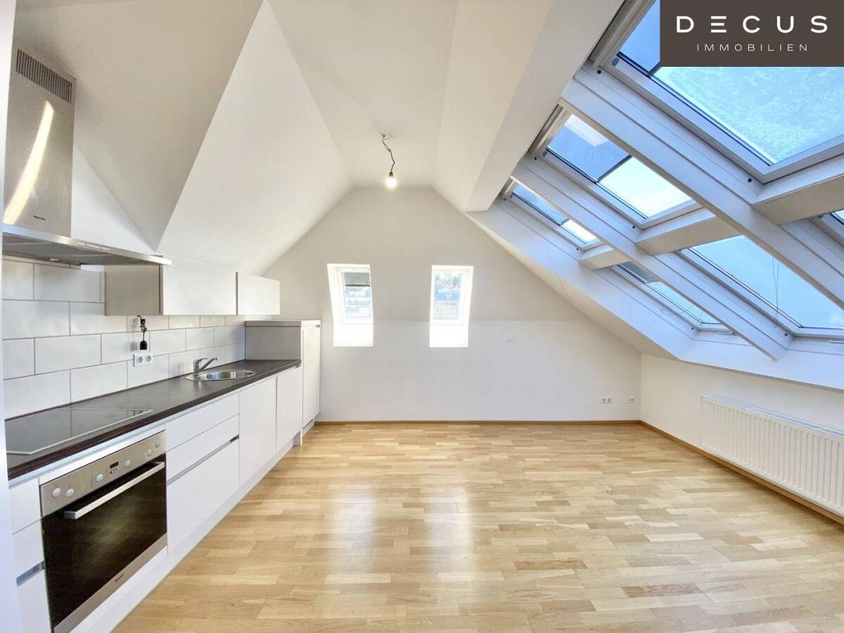 Mit dem Aufzug ins Dachgeschoss mit abgeschrägten Wänden - Gepflegte Wohnung unter dem Dach ohne Nachbarn.In einem netten Altbauhaus wurde nachträglich eine ca. 71,73 m² große Wohnung im Dachgeschoß errichtet. Diese helle und lichtdurchflutete Wohnung besteht aus 3 Zimmern, einer ca. 5 m² Loggia, einem großzügigen Abstellraum mit Anschluss für die Waschmaschine, schönem Fliesenbad mit Wanne und Dusche und separatem WC.Das Wohnzimmer, die komplett eingerichtete Küche mit Essplatz und ein weiteres Zimmer sind nach Süden und zur Straße ausgerichtet. Über eine 4-stufige Treppe erreicht man ein nordwestseitiges Schlafzimmer mit Blick ins Grüne, sowie ein angrenzendes Bad und separates WC. Vom zentralem Vorzimmer sind alle Räume begehbar.LAGE UND UMFELDDas Objekt befindet sich in Dornbach, Die Linie 43 mit Anschluss zur S45, U6 bringt Sie in den 1. Bezirk zum Schottentor.Für die Freizeit bietet sich der nahe gelegene Wienerwald zum Joggen oder für gemütliche Wanderungen in der Schwarzenberg-Allee an.INFORMATIONEN UND BESICHTIGUNGFür nähere Informationen und einen Besichtigungstermin steht Ihnen gerne Frau Susanne Lauterbach telefonisch unter +43 664 9140320 sowie per Mail lauterbach@decus.at zur Verfügung.Wichtige InformationBitte beachten Sie, dass per 13.06.2014 eine neue Richtlinie für Fernabsatz- und Auswärtsgeschäfte in Kraft getreten ist.Da es immer wieder zu Missverständnissen kommt, möchten wir Sie darüber informieren, dass ein Provisionsanspruch erst nach Unterzeichnung eines Miet- oder Kaufanbotes besteht. Eine Besichtigung ist nach wie vor unverbindlich und kostenlos!Dieses Objekt wird Ihnen unverbindlich und freibleibend zur Miete angeboten. Oben angeführte Angaben basieren auf Informationen und Unterlagen des Eigentümers und sind unserseits ohne Gewähr. Im Falle eines Abschlusses mit Ihnen oder einem von Ihnen namhaft gemachten Dritten bzw. bei beidseitiger Willensübereinstimmung beträgt unser Honorar (lt. Honorarverordnung für Immobilienmakler) 2 Bruttomonatsmieten BMM zuzüglich der gesetzlichen Umsatzsteuer.Nähere Informationen sowie unsere AGBs und Nebenkostenübersichtsblatt finden Sie auf unserer Homepage www.decus.at unter "Immobilien" - "Rechtliches zum FAGG" sowie im Anhang der zugesendeten Objekt-Exposés.Infrastruktur / EntfernungenGesundheit Arzt <250m Apotheke <750m Krankenhaus <1.000m Klinik <4.000m Kinder & Schulen Schule <1.500m Kindergarten <250m Universität <1.500m Höhere Schule <3.000m Nahversorgung Supermarkt <500m Bäckerei <250m Einkaufszentrum <1.750m Sonstige Bank <1.750m Geldautomat <1.750m Post <750m Polizei <2.000m Verkehr Bus <250m Straßenbahn <250m U-Bahn <2.750m Bahnhof <2.000m Autobahnanschluss <5.500m Angaben Entfernung Luftlinie / Quelle: OpenStreetMap