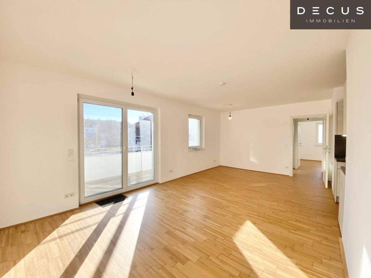 Diese gepflegte 3 Zimmer-Balkonwohnung in toller Lage nahe der Donau gelangt per sofort zur Vermietung.OBJEKT Die helle Neubauwohnung liegt in der 1. Etage eines Eckhauses und wird auf 5 Jahre befristet vermietet.Die Schlafzimmer sind zentral begehbar. Der offene Wohnbereich mit Einbauküche und Zugang auf den Süd-Ost-seitigen Balkon verbindet den Eingangsbereich mit dem privaten Schlafbereich und dem großen Badezimmer mit Wanne. Die voll ausgestattete Küche mit allen Geräten liegt in einer Nische angeschlossen an das großzügige Wohnzimmer und bietet zudem außergewöhnlich viel Stauraum und Arbeitsflächen. Weiters gibt es noch 2 Schlafzimmer, 1 Badezimmer mit Wanne und Doppelwaschbecken. Das WC mit Handwaschbecken ist separat im Eingangsbereich der Wohnung.Ausgestattet ist die sonnige und freundliche Wohnung mit hellen Parketten und hochwertigen Fliesenböden. Die Heizung und die Warmwasseraufbereitung erfolgt über eine Gaszentralheizung.Auf Wunsch kann auch 1 Parkplatz in der hauseigenen Tiefgarage angemietet werden. (Preis € 120,00 brutto)AUSSTATTUNG3 Zimmergroßer Süd-Ost seitiger BalkonBadezimmer mit Badewanne und Waschbecken für Sie und Ihn separates WC mit HandwaschbeckenFußbodenzentralheizung / GasEinbauküche (voll ausgestattet) elektrische Außenjalousien (in allen Räumen) Fliegengitter bei Fenster und TürenPersonenaufzugKinderspielplatz / GartennutzungFahrradraum Kellerabteil Tiefgarage (zusätzlich € 120,00 brutto) LAGE UND UMFELDDas Objekt befindet sich in der Wenhartgasse, unweit von der Donau. Busstationen der Linie 34A, 36A und 36B sind in weniger als 4 bis 6 Gehminuten erreichbar.Die Donau befindet sich direkt die Straße hinunter.INFORMATIONEN UND BESICHTIGUNGFür weitere Informationen steht Ihnen Herr Julian Mellawa unter +43 699 11 20 84 11 oder Email mellawa@decus.at gerne jederzeit zur Verfügung.DECUS Immobilien GmbH - Wir beleben RäumeWichtige InformationBitte beachten Sie, dass per 13.06.2014 eine neue Richtlinie für Fernabsatz- und Auswärtsgeschäfte in Kraft getreten ist.Da es immer wieder zu Missverständnissen kommt, möchten wir Sie darüber informieren, dass ein Provisionsanspruch erst nach Unterzeichnung eines Miet- oder Kaufanbotes besteht. Eine Besichtigung ist nach wie vor unverbindlich und kostenlos!Dieses Objekt wird Ihnen unverbindlich und freibleibend zur Miete angeboten. Oben angeführte Angaben basieren auf Informationen und Unterlagen des Eigentümers und sind unserseits ohne Gewähr. Im Falle eines Abschlusses mit Ihnen oder einem von Ihnen namhaft gemachten Dritten bzw. bei beidseitiger Willensübereinstimmung beträgt unser Honorar (lt. Honorarverordnung für Immobilienmakler) 2 Bruttomonatsmieten BMM zuzüglich der gesetzlichen Umsatzsteuer.Nähere Informationen sowie unsere AGBs und Nebenkostenübersichtsblatt finden Sie auf unserer Homepage www.decus.at unter "Immobilien" - "Rechtliches zum FAGG" sowie im Anhang der zugesendeten Objekt-Exposés.Infrastruktur / EntfernungenGesundheit Arzt <250m Apotheke <250m Krankenhaus <1.750m Klinik <2.000m Kinder & Schulen Schule <250m Kindergarten <750m Universität <2.000m Höhere Schule <1.000m Nahversorgung Supermarkt <500m Bäckerei <500m Einkaufszentrum <1.250m Sonstige Bank <1.250m Geldautomat <1.250m Post <500m Polizei <1.500m Verkehr Bus <250m Straßenbahn <750m U-Bahn <1.750m Bahnhof <1.250m Autobahnanschluss <500m Angaben Entfernung Luftlinie / Quelle: OpenStreetMap