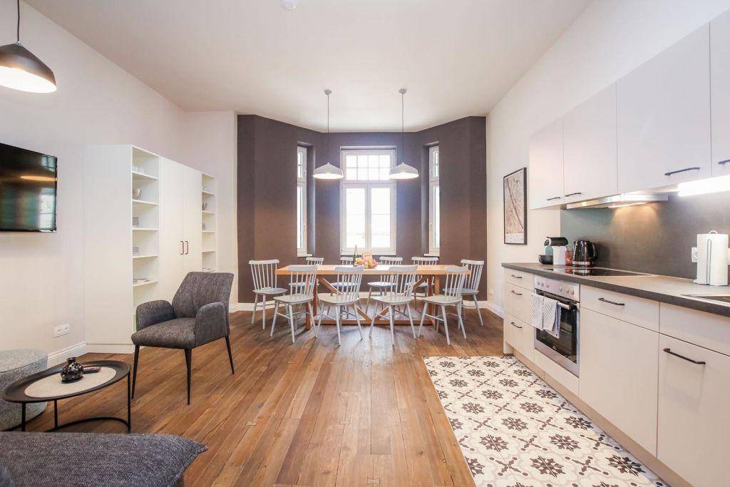 Das vollmöblierte Apartment befindet sich in einem südseitigen Gebäudetrakt mit Blick auf das Messezentrum. Die Wohnfläche erstreckt sich auf 100 m2 und bietet Platz für bis zu 9 Personen und zwei Babies/Kleinkinder.Sie haben einen großzügigen Wohnbereich mit Ess- & Arbeitsplatz und einer gut ausgestatteten Küche, Kabelfernsehen und WLAN. Die drei Schlafzimmer bieten genügend Privatsphäre, speziell für größere Gruppen.Um das Wohnen so komfortabel wie möglich zu gestalten, finden Sie eine Nespresso-Kaffeemaschine, einen Wasch-Trockner, ein Bügeleisen und Bügelbrett, einen Wäscheständer sowie einen Fön vor.Das Apartment besitzt insgesamt 3 separate Schlafzimmer mit jeweils 2 Einzelbetten, welche man zusammen schieben kann. In einem Schlafzimmer befindet sich ein ausziehbares Einzel-Sofa. Zwei weitere Gäste können im Wohnzimmer auf dem ausziehbaren Sofa übernachten.Die Temperatur regeln Sie bequem über die Fußbodenheizung und Klimaanlage. Energieausweis Dieses Gebäude unterliegt nicht den Anforderungen der EnEV.