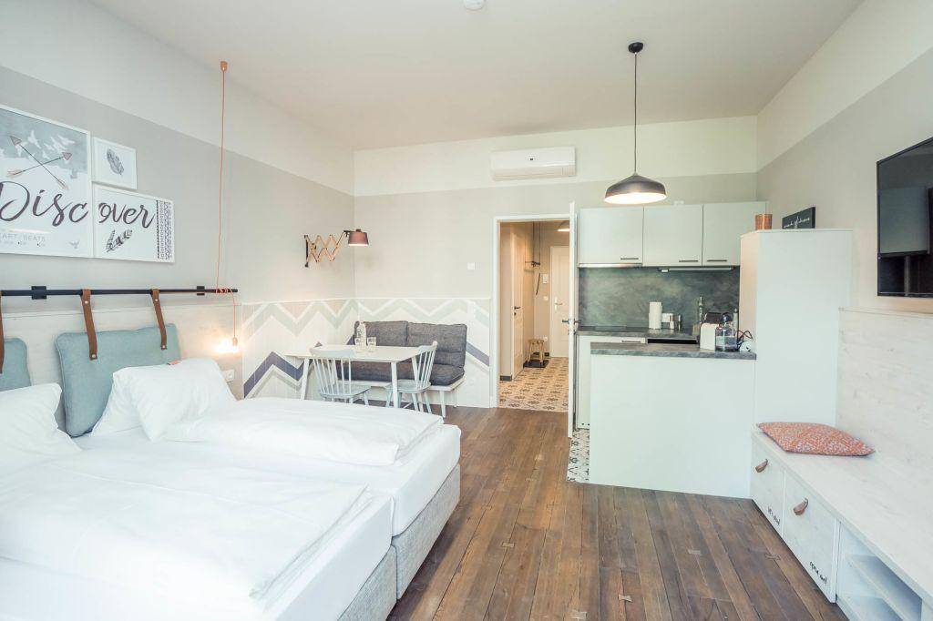 Das vollmöblierte Studio ist in einem ruhigen, zur Hofseite gelegenen Gebäudetrakt gelegen und lädt Sie auf einer Fläche von 35m² zum Wohlfühlen ein.Das Apartment bietet Platz für bis zu zwei Personen und ein Baby/ Kleinkind und ist vollständig ausgestattet.Sie haben einen kombinierten Wohn-/Schlafbereich mit Ess- & Arbeitsplatz sowie einer gut ausgestatteten Küche, Kabelfernsehen und WLAN. Um das Wohnen so komfortabel wie möglich zu gestalten, finden Sie eine Nespresso-Kaffeemaschine, einen Wasch-Trockner, ein Bügeleisen und Bügelbrett, einen Wäscheständer sowie einen Fön vor.Die Temperatur regeln Sie bequem über die Fußbodenheizung und Klimaanlage. Außerdem verfügt das Apartment über einen Balkon. Energieausweis Dieses Gebäude unterliegt nicht den Anforderungen der EnEV.