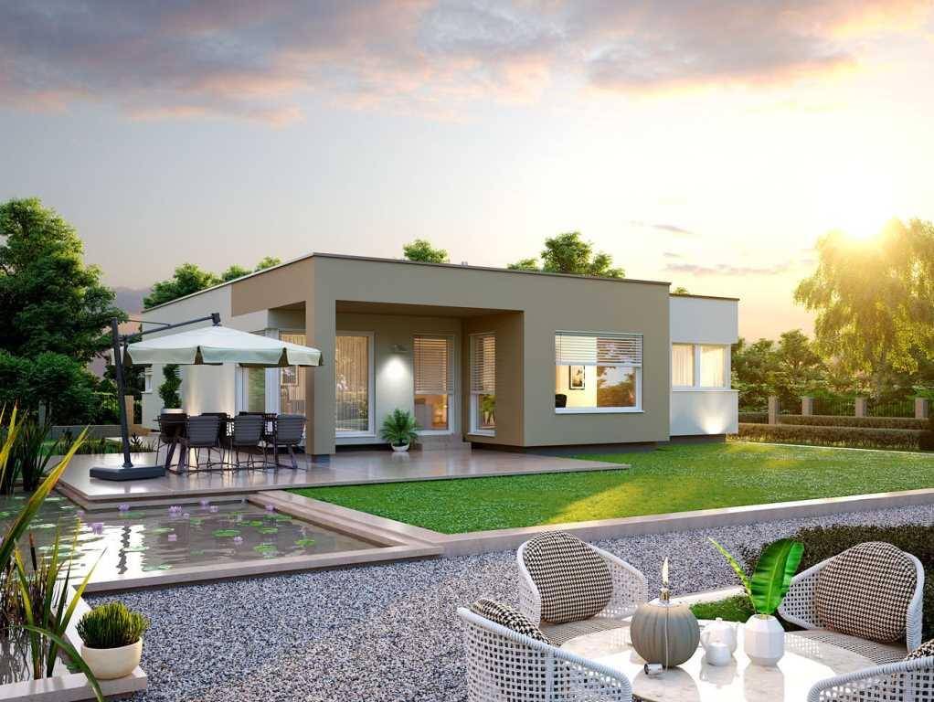 Hinweis: Bei diesem Angebot handelt es sich ausschließlich um das Haus mit den unten angeführten Leistungen. Ein passendes Grundstück müsste dafür erst gefunden werden. Gerne helfen wir Ihnen bei der Suche nach Ihrem perfekten Grundstück. Wir möchten darauf hinweisen, dass der Unterbau (Fundamentplatte oder Keller) nicht im ausgeschriebenen Verkaufspreis inkludiert ist. Zenker Bungalow 124 Das Zenker-Haus hat eine Wohnfläche von ca.125 m² und ist aufgeteilt in einen großen Wohn- /Essbereich mit offener Küche und Speis/Technikraum, 2 Schlafzimmer, ein Badezimmer, ein separates WC und einer Diele. Zenker Bungalow 124: ab EUR 231.920,- (Preis für eine belagsfertige Ausführung) Mögliche Ausbaustufen: Einstiegspreis - Belagsfertig und schlüsselfertige Ausführung. Wohnfläche EG: 125,11 m² Wohnfläche gesamt: 125,11 m² Bebaute Fläche: 152,42 m²Belagsfertig Leistungen: Ihr Zenker Haus ist außen komplett fertig mit fugenloser Putzfassade Ökologischer Dämmstoff HanfDie Haustüre und die Fenster werden in Holz-/Alu Designausführung hergestelltRaumseitige Zusatzbeplankung an den Wänden mit HolzwerkstoffplatteEbenfalls inkludiert ist die Sanitärinstallation vorgefertigt mit Kalt-/Warmwasser und AbflussleitungenHauswasseranschluss und Zusammenschließen Wasser- und AbflussleitungenLuft-Wasser-Wärmepumpe inkl. WarmwasserbereitungNassestrich mit Fußbodenheizung und EinzelraumregelungE-HauptverteilerIm Haus inklusive ist die komplette ElektroinstallationMultimedia VerkabelungPV Vorbereitung inklusive Verkabelung