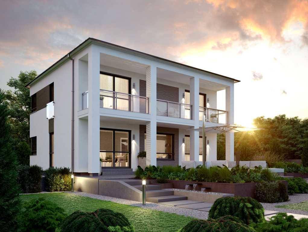 Hinweis: Bei diesem Angebot handelt es sich ausschließlich um das Haus mit den unten angeführten Leistungen. Ein passendes Grundstück müsste dafür erst gefunden werden. Gerne helfen wir Ihnen bei der Suche nach Ihrem perfekten Grundstück.Wir möchten darauf hinweisen, dass der Unterbau (Fundamentplatte oder Keller) nicht im ausgeschriebenen Verkaufspreis inkludiert ist.Zenker Konzept 140Das Zenker-Haus hat eine Wohnfläche von ca.140 m². Das Erdgeschoss ist aufgeteilt in einen großen Wohn- /Essbereich mit offener Küche und Speis/Technikraum, ein WC, ein Gästezimmer/Büro und einer Diele. Das Obergeschoss ist aufgeteilt in ein Schlafzimmer mit Schrankraum, 2 Kinderzimmer, ein Badezimmer und ein Flur. Zenker Konzept 140: ab EUR 253.950,- (Preis für eine belagsfertige Ausführung)Mögliche Ausbaustufen: Einstiegspreis - Belagsfertig und schlüsselfertige Ausführung.Wohnfläche EG: 70,94 m²Wohnfläche OG: 69,60 m²Wohnfläche gesamt: 140,54 m²Bebaute Fläche: 90,11 m²Belagsfertig Leistungen: Ihr Zenker Haus ist außen komplett fertig mit fugenloser Putzfassade Ökologischer Dämmstoff HanfDie Haustüre und die Fenster werden in Holz-/Alu Designausführung hergestelltRaumseitige Zusatzbeplankung an den Wänden mit HolzwerkstoffplatteEbenfalls inkludiert ist die Sanitärinstallation vorgefertigt mit Kalt-/Warmwasser und AbflussleitungenHauswasseranschluss und Zusammenschließen Wasser- und AbflussleitungenLuft-Wasser-Wärmepumpe inkl. WarmwasserbereitungNassestrich mit Fußbodenheizung und EinzelraumregelungE-HauptverteilerIm Haus inklusive ist die komplette ElektroinstallationMultimedia VerkabelungPV Vorbereitung inklusive Verkabelung