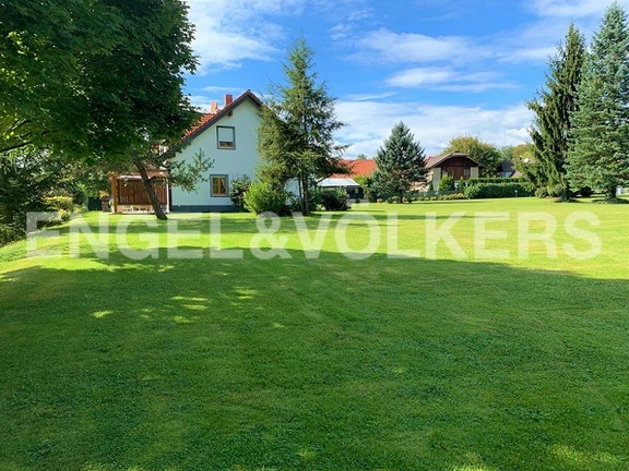 Das ca. 6.770m² große Grundstück bietet die Möglichkeit, 3 weitere Baugrundstücke abzutrennen. Die Baufläche dafür beträgt ca. 2.500m² und besitzt 3 separate Zufahrtsmöglichkeiten. Auf 1.370m² befindet sich ein gepflegtes Einfamilienhaus der Firma Haas mit danebenliegender Doppelgarage. Das Zentrum des Hauses bildet ein großzügiger Koch- Ess- und Wohnbereich. Ein idealer Ort für gemeinsame Essen und zum Relaxen. Von hier gelangt man auf eine uneinsichtige, zum Teil überdachte Terrasse, mit Blick über das gepflegte Grundstück. Weiters befinden sich in Parterre ein separates Arbeitszimmer, das ebenso zum Schlafzimmer umfunktioniert werden kann, oder als Büro einen optimalen Work-Place ergibt. Neben der Küche befindet sich praktischerweise ein kleiner Vorratsraum, ein idealer Helfer im Alltag, der dem Kochvergnügen den nötigen Komfort ermöglicht. Vom Flur im Eingangsbereich, in dem noch ein Gäste-WC mit Dusche liegt, gelangt man über eine Vollholzstiege ins Obergeschoss. Hier erreichen Sie über eine Galerie 3 große Schlafzimmer und ein Bad mit WC, Dusche und Badewanne. Zwei der Zimmer haben einen Zugang zu dem nach Süden ausgerichteten Balkon, von dem man eine wunderbare Aussicht über das weitläufige Grundstück hat. Der von innen und außen zugängliche beheizte Keller mit Fenster bietet ausreichend Platz für weitere Gestaltungsmöglichkeiten.