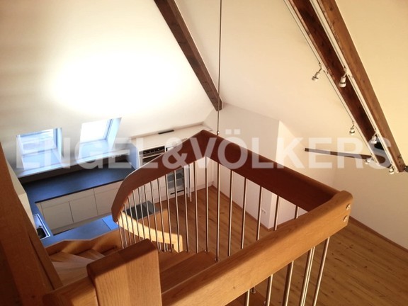 Die neue und hochwertig renovierte Dachgeschosswohnung erstreckt sich über 2 Etagen und verfügt über eine schöne Terrasse. Der untere Teil der Wohnung teilt sich in einen Vorraum, ein WC, einen Abstellraum und Wohnbereich mit integrierter Küche. Von hier aus gelangt man auf die Dachterrasse mit Ausblick über Teile der Stadt Spittal sowie die umliegende Bergwelt. Über eine geschwungene, offene Holzstiege gelangt man in den oberen Stock, wo man über eine Galerie den unteren Wohnraum und die darin integrierte Küche überblicken kann. Das obere Stockwerk, welches zur Gänze zu einem Raum konstruiert wurde, befindet sich ein Mansardenbereich und verfügt über 6 Dachflächenfenster. Des Weiteren lässt sich hier ein Bad mit einer geräumigen Dusche und einer freistehenden Badewanne wiederfinden.