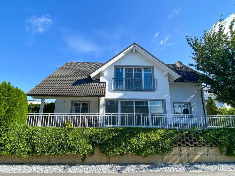 Dieses zeitlose Familiendomizil wurde im Jahre 2000 auf höchstem Niveau geplant und errichtet. Auf insgesamt 2 Ebenen stehen Ihnen alle Möglichkeiten des modernen Wohnens offen. Das Erdgeschoß ist wunderbar großzügig aufgeteilt und beeindruckt mit seinem perfekt nach Süden ausgerichteten Wohnbereich. Hier stehen rd. 44 licht-durchflutete m² für Kochen, Wohnen und Essen zur Verfügung. Diese Funktionsbereiche gehen zwar offen ineinander über, bieten aber aufgrund der Grundriss-Struktur ein optimales Raumgefühl. EWE-Küche mit Küppersbusch Geräten lässt keine Wünsche offen. Die großzügige Verglasung führt zur perfekt nach Süden ausgerichteten Terrasse; der nach Westen ausgerichtete Teil ist überdacht. Im einladenden Foyer gibt es einen eigenen Garderobenraum, sowie ein Gäste-WC & eine Waschküche; letztere könnte man relativ einfach zur einem zweiten Badezimmer umbauen - alle Vorrichtungen hierzu sind gegeben. Das Obergeschoß bietet drei großzügige Kinder- / Gästeschlafzimmer, einen Masterbereich sowie ein wirklich großzügiges Bad! Der Masterbereich mit Schrankraum ensiute, ist mit insgesamt 36 m² nicht nur sehr großzügig geplant, sondern durch die großen Glasflächen & den französischen Balkon auch sehr hell und freundlich. Rollläden und Fliegenschutzgitter sind selbstverständlich. Das Bad begeistert mit XL-Dusche, Badewanne und einer perfekt integrierten Sauna & Saunarium! Letzteres ist ebenso wie das separate WC hochwertig und zeitlos gestaltet. Im Untergeschoß wartet außerdem noch ein Technikraum sowie ein großer Hobby-Raum! Als Add-on wurde über der Garage der Dachraum zu einem wunderbaren, ca. 35 m²-Raum mit offenem Giebel „aufgehübscht“. Highlight im schönen Garten ist der Pool mit Gegenstromanlage, optimal nach Süd-Westen ausgerichtet … ein Traum für die heißen Sommertage! Gut zu wissen: + Perfekte Verkehrsanbindung + 4 Schlafzimmer & großzügiges Büro + Master-Bedroom mit Schrankraum ensuite + Sauna mit Saunarium im Badezimmer! + EWE-Küche mit Küppersbusch-Geräten + Hochwertige Ausführung bei Böden &Ausstattung + Rollläden und Fliegengitter bei nahezu allen Fenstern + Fußbodenheizung mit Radiatoren im Keller + Großzügiger Hauswirtschaftsraum + Teilunterkellert mit Technikraum im Keller + Pool 3 x 6 m mit Gegenstromanlage + Doppelgarage & 2 Stellplätze vor dem Haus Ein Familientraum, welcher keine Wünsche offen lässt! LAGE UND UMFELD DIESER IMMOBILIE Dieses exklusive Einfamilienhaus ist südwestlich von Linz, im Zentrum von Pasching, inmitten des oberösterreichischen Zentralraumes gelegen. Diese hervorragende Lage bietet nicht nur die Möglichkeit, in wenigen Schritten die Natur und eine Vielzahl an Sportmöglichkeiten zu genießen, von Lauf- bis Fahrradstrecken, auch Einkaufsmöglichkeiten für das tägliche Leben, Bäckerei, Krabbelstube oder Volksschule sind fußläufig in kurzer Distanz erreichbar! Die Haltestelle der Westbahn ist ca. 15 Gehminuten, die Bushaltestelle Linie 601 (Hauptbahnhof - Flughafen Hörsching) ist ca. 7 Gehminuten entfernt. Die Verkehrsanbindung lässt ebenfalls keine Wünsche offen: Wels: ca. 20 km / 24 Min Linz: ca. 11 km / 18 Min A1 - Auffahrt Ansfelden ca. 11 km / 15 Min. Wien: ca. 187 km / 2 Std. 10 Min. Salzburg: ca. 127 km / 1 Std. 20 MinAufgrund der Nachweispflicht gegenüber dem Eigentümer ersuchen wir um Verständnis, dass nur Anfragen mit vollständigen Kontaktdaten (Vor- u. Zuname, Wohnadresse, Tel., Email) bearbeitet werden können!