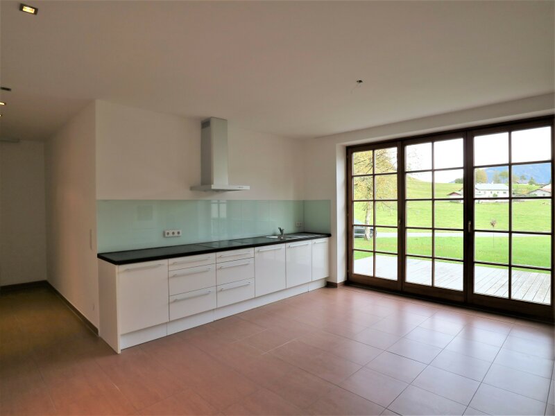 Zur Vermietung steht ein vor einigen Jahren von Grund auf neu errichtetes Bauernhaus, mit einer schönen Symbiose aus Moderne und Tradition. Das Haus besteht aus zwei Einheiten und Garagen. Die größere Einheit erstreckt sich über zwei Etagen und verfügt im Erdgeschoß über eine schöne Sonnenterrasse mit Garten. Moderne Bauweise, schöne Raumhöhen Viel Glas und Luftigkeit Eingangsbereich mit Gästetoilette, Abstellraum sowie Stauraum unter der Stiege Glaselement zur Küche hin Offene Wohnküche mit Ausgang auf die Terrasse - besonders hell und freundlich Gartenbereich um die Terrasse herum Wohnzimmer - mit Ziegelwand von der Küche abgetrennt Erster Stock mit 3 Schlafzimmern Kinderbad mit Dusche Elternbad mit Wanne, Dusche und Waschbecken gehobene Ausstattung Fussbodenheizung im ganzen Haus Einzelgarage Die Miete versteht sich inkl. Betriebs- und Heizkosten (Erdwärme).Infrastruktur / EntfernungenGesundheitArzt