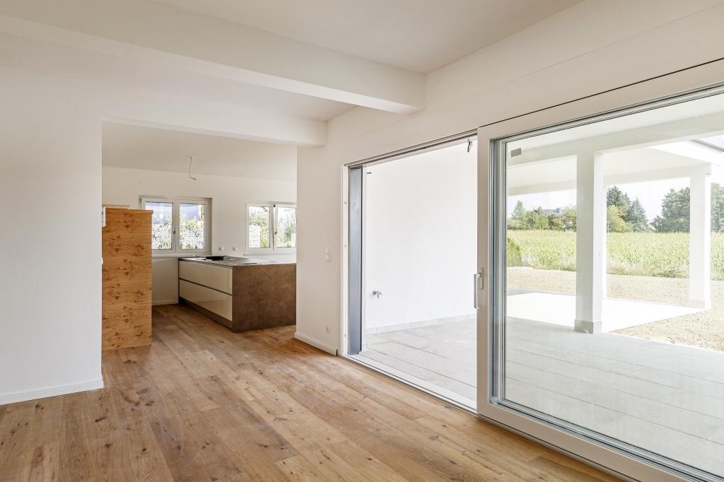 In Steindorf - Gemeinde Seewalchen am Attersee befindet sich das Gebäude mit insgesamt 2 Wohneinheiten welche ab sofort bezogen werden können. Die insgesamt ca. 132 m² Wohnfläche befinden sich vollständig im Erdgeschoss und sind somit barrierefrei begehbar. Die großzügige Wohnküche mit Ausgang auf die Terrasse und weiter in den Garten bildet das Herzstück dieser Wohneinheit. Es gibt insgesamt 3 Schlafzimmer - eines davon mit eigenem Bad und Schrankraum, ein zusätzliches Badezimmer und ein weiteres kleineres Zimmer (Büro). Darüber hinaus gibt es einen kleinen Technikraum. Highlights: - die schlüsselfertige Wohneinheit mit ca. 132 m² - großzügige, helle Räume - energiesparende und ökologische Holz-Riegel-Bauweise - Fußbodenheizung mit Luftwärmepumpe (Luftwärmepumpe von KNV) - Kunststoff-Alu-Fenster mit Raffstore und Insektenschutz - voll ausgestattete Küche mit Markengeräten - Doppelcarport + weitere Stellplätze - große Terrasse mit 72 m² - großer Garten mit 343 m² - Legrand Video-Türsprechanlage - befestigte Zufahrt und Gehwege Kaufvertragserstellung durch Notariat Mag. Lukas Binder - Vöcklabruck. In 3 Minuten erreicht man vom Haus mit dem Auto das Ortszentrum von Seewalchen mit allen wichtigen Nahversorgern. Die Autobahn-Auffahrt Seewalchen (A1) bzw. der Attersee ist in 4 Minuten erreichbar.Angaben gemäß gesetzlichem Erfordernis: Heizwärmebedarf:37.0 kWh/(m²a)Klasse Heizwärmebedarf:BFaktor Gesamtenergieeffizienz:0.72Klasse Faktor Gesamtenergieeffizienz:AUnser vollständiges Immobilienangebot mit allen Projekten und mehr als 3000 Objekten finden Sie unter raiffeisen-immobilien.at.